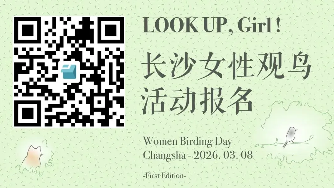 2025年春季,在北麂岛观鸟遇到一位女鸟友,聊起她刚参加过的浙江妇女节女性观鸟活动。我在想,长沙是不是也可以尝试办一个?于是,今年的3月8日,也想效仿浙里和大家一起在长沙展开一场轻松愉快的观鸟活动。无需集合,不设统一路线,也没有固定时段。你可以在小区的树下,在公园、湖边、山野,甚至家里的阳台,去辨认和观察一只鸟在做什么。活动不限年龄,没有门槛,我们鼓励所有喜欢观鸟,对观鸟感兴趣的女性参加。如果你从未观过鸟,那就从第一只开始;如果你已经习惯背着望远镜出门,那就把这一天当作又一次轻松的自然体验。它并不试图成为一个节日项目,也不承载额外的意义,只是一次同好间的温和交流与自然实践。我们知道,城市没有想象中单调。电线杆上、树梢间、湖面上,总有生命在活动。当我们开始观察它们,也会更在意它们。在意树木被修剪的季节,在意湖水的水位,在意一片草地和灌木是否被推平。如果这一天,我们能在各自的生活里,与其他女性、与自然发生一点点微小又真实的连接,那就最好不过啦。