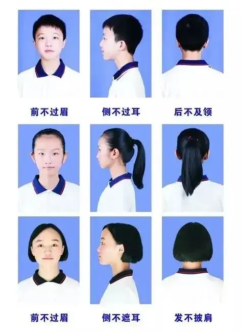 返校时教官将在校门口检查校服和头发,学生不能染发烫发,男生不留长发,女生不化妆不涂口红,男女生不戴耳环耳钉项链。校服和头发不合格的,学生整改后才能入校。