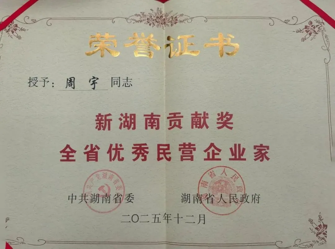 金井绿茶制作技艺市级代表性传承人周宇获“新湖南贡献奖全省优秀民营企业家”称号