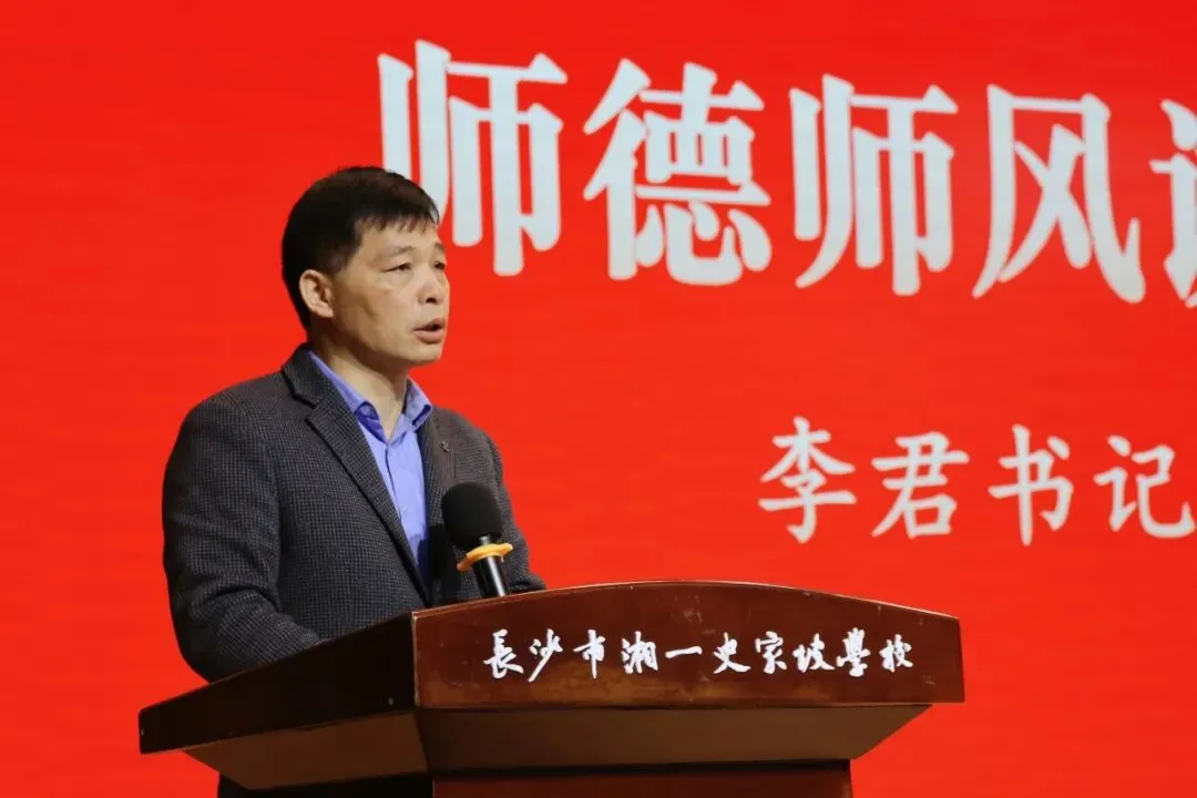 随后,党支部书记李君以师德师风建设为主题作专题讲座。他要求全体教师秉持有教无类、公平公正的原则,重点关爱留守儿童、困难家庭学生等特殊群体;精心筹备“开学第一课”,从知识传授到情绪疏导全方位准备,做到着装得体、言行规范;严守依法治教底线,杜绝有偿补课,严格保护学生隐私及家庭信息,以高尚师德护航学生成长。