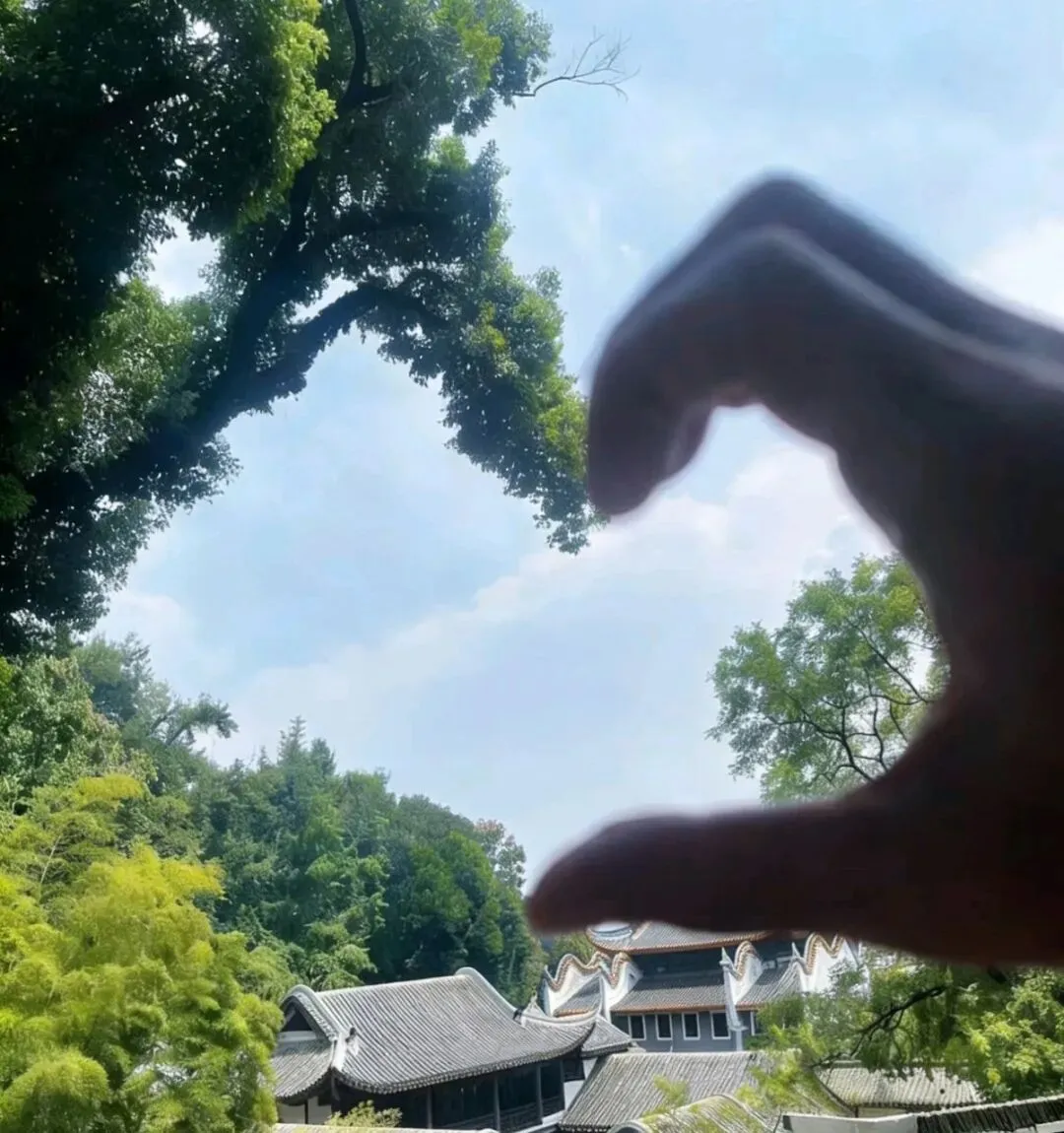 吃完饭去岳麓山,我们往爱晚亭走,路上遇见一棵很神奇的树——树干长成了半边爱心的形状。大家都举起手比划着另一半爱心拍照。我想,在有心人眼里,点点滴滴都是风景。