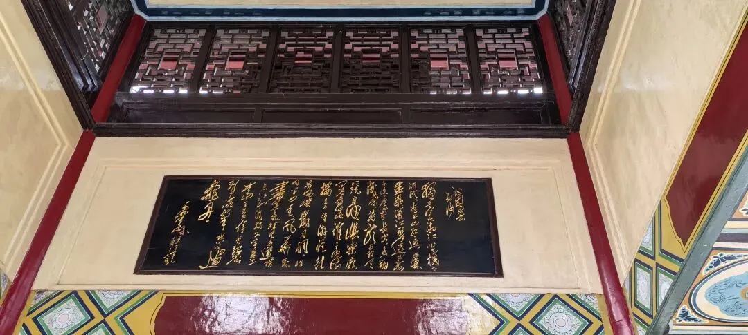 抬头看,亭子上方还题着毛泽东的《沁园春·长沙》。