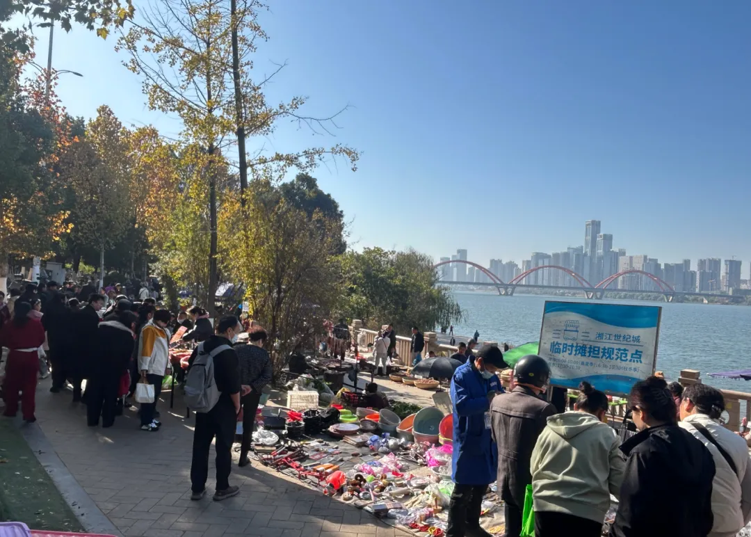 现在的湘江世纪城更是越来越人性化,也有趣了,在江边划分了临时摊位,有种农村乡镇赶集的感觉,烟火气也更足了。