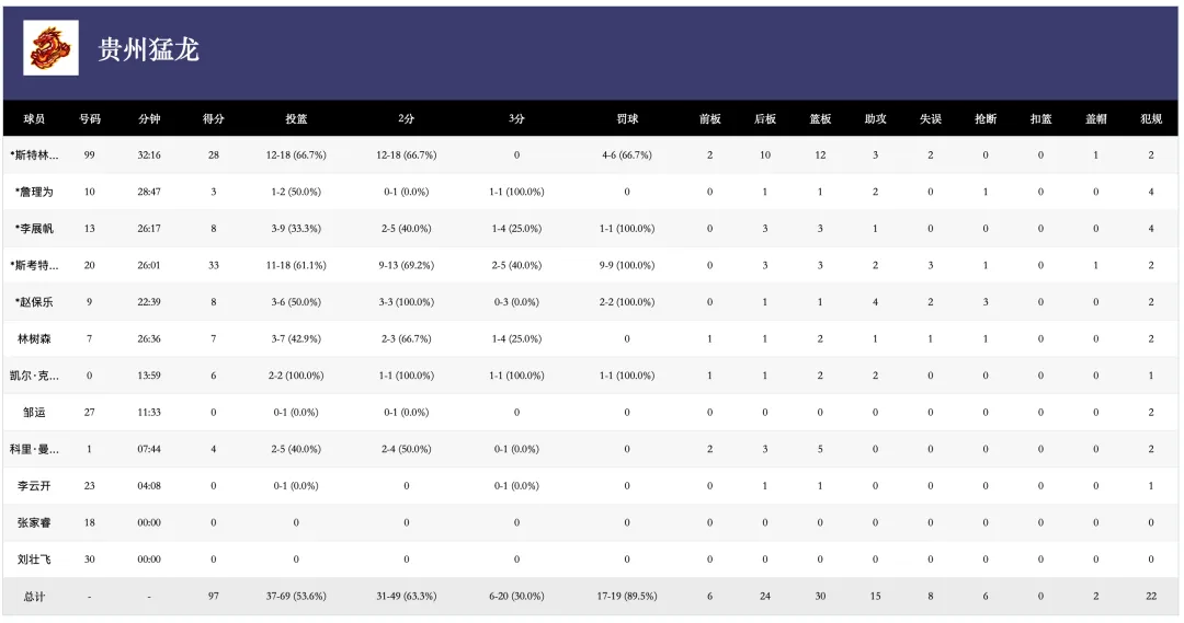 数据方面,林赛砍下全场最高的33分并抢到3个篮板,曼利收获28分、12个篮板的两双数据,赵保乐贡献8分和4次助攻,李展帆同样得到8分。