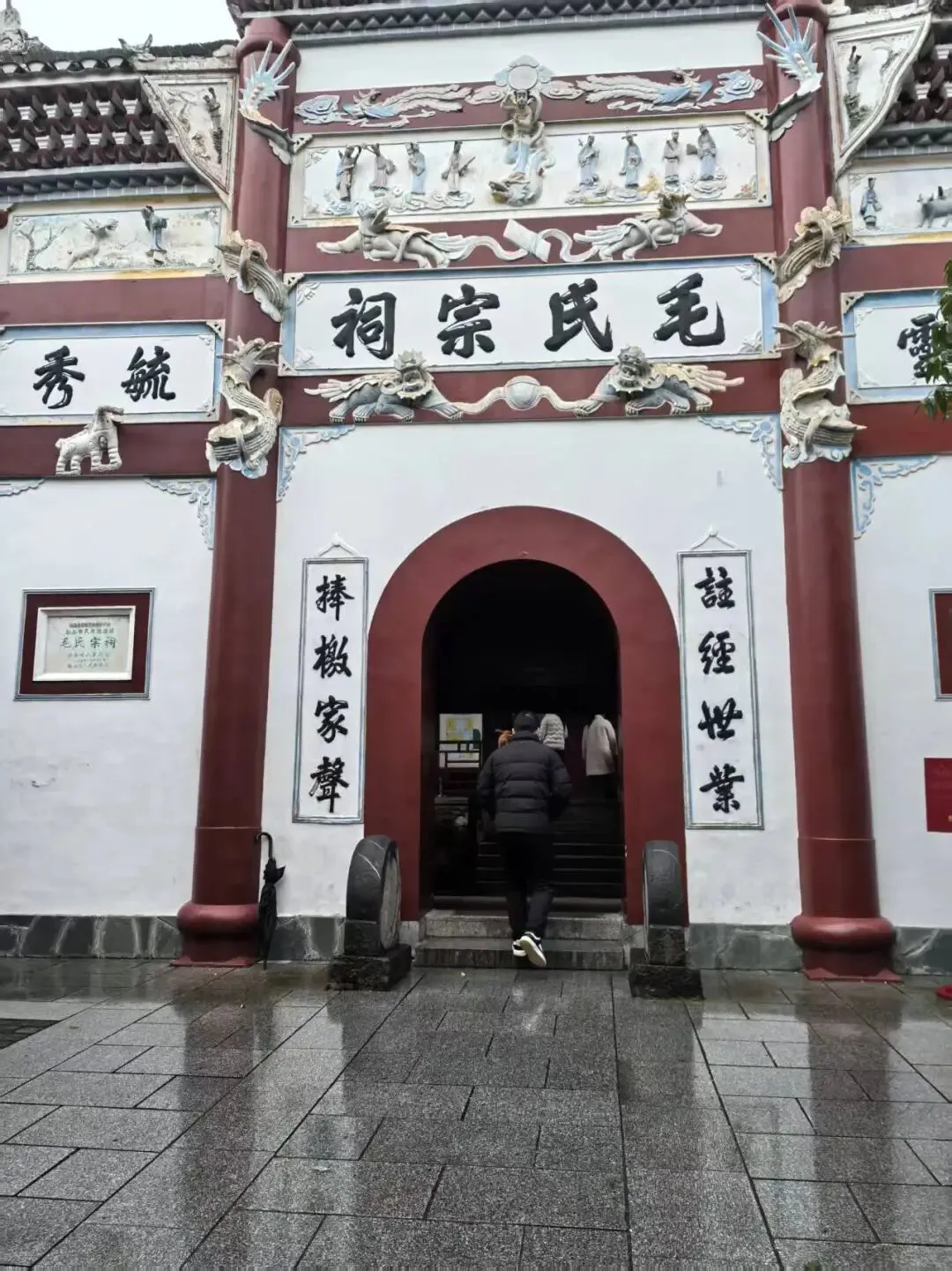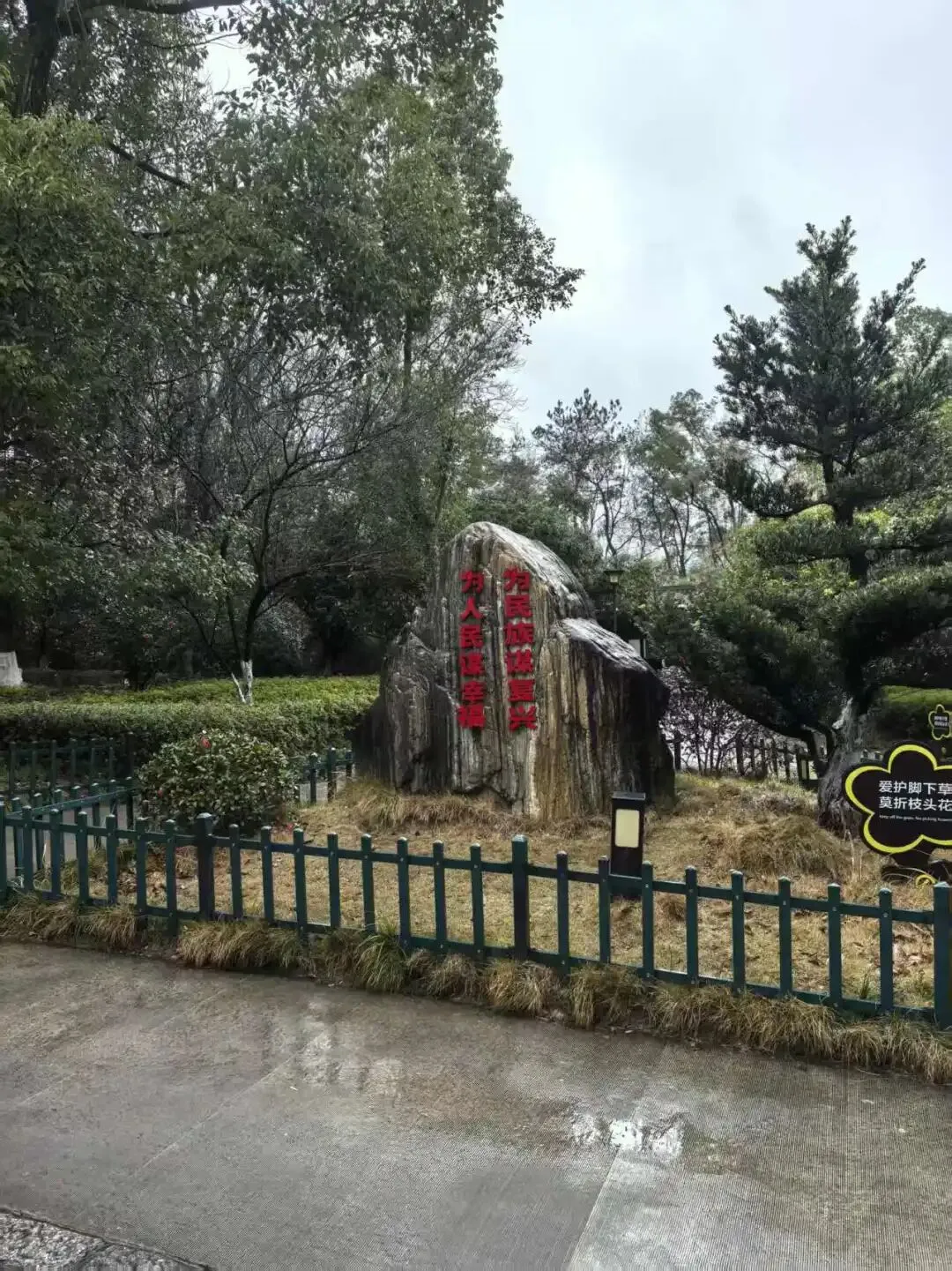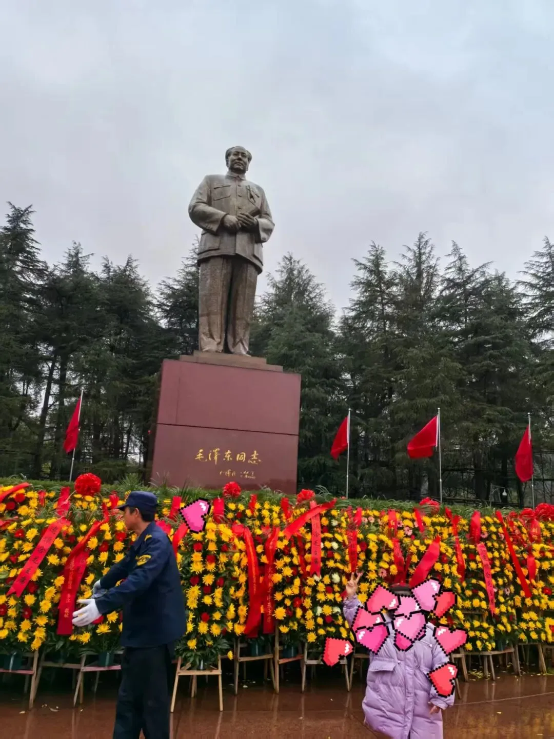 2026年02月26日,正月初十,长沙小雨,11°,阴雨寒冷天气,乘G6413,08:57长沙南到邵阳高铁,08:46检票上车,前往韶山南站,刚下车,韶山细雨蒙蒙,尚无需撑伞,我们乘坐伟人故里,文明韶山的红色专线公交车,从韶山南到毛主席故居,往返16元/人(优惠票),请导游解说34/人(优惠24/人),雨哗啦啦逐渐下大,怀着对伟人无限敬佩之情,没有人退却,人很多,大家纷纷撑起雨伞,穿上雨衣,沿着石板路从瞻仰大道缓缓前行,在导游的带领下,我们首先来到毛主席铜像广场。高大的铜像巍然矗立,导游解说道:铜像重达3.7吨,高6米,寓示着毛主席为革命失去了6位亲人,下方红色大理石基座高4.1米,寓示着毛主席执政41年,总高度10..1米,寓示着中华人民共和国成立的日子,主席身着中山装,手握书卷,目光炯炯有神,仿佛时刻关注着人民百姓。在工作人员安排下,人们依次给主席铜像敬献花篮,三鞠躬祭拜伟人,表达对伟人的深切缅怀,并拍照纪念。