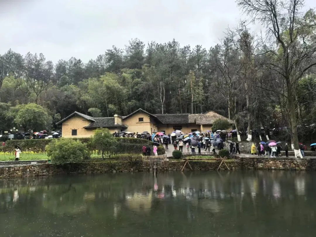 接下来参观了毛氏宗祠,了解毛主席的家族变迁史,参观南岸师塾,然后排队等候前往毛主席故居参观,排队等候到检票就等了近1个小时,检票后继续排队,又是一个小时,终于进入毛主席故居,1893年12月26日,一代伟人毛泽东出生在这栋普普通通的江南农舍,它坐南朝北,背依青山、绿水、苍松、翠竹以及房屋周边的金黄色的油菜花把这栋农舍映衬得生机盎然