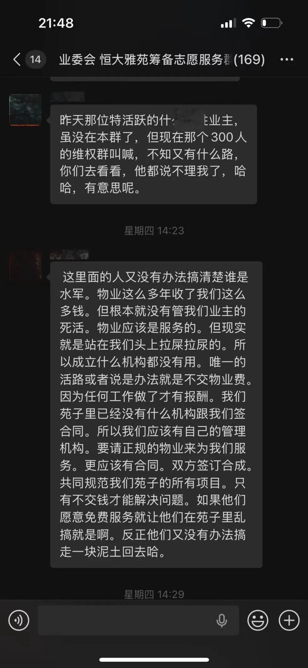 表现三,“志愿者”们在面对疑问和不同意见时,不是答疑解惑,而是习惯性污蔑他人是物业“水军”。