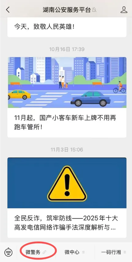 方式二 “湖南公安服务平台”微信公众号