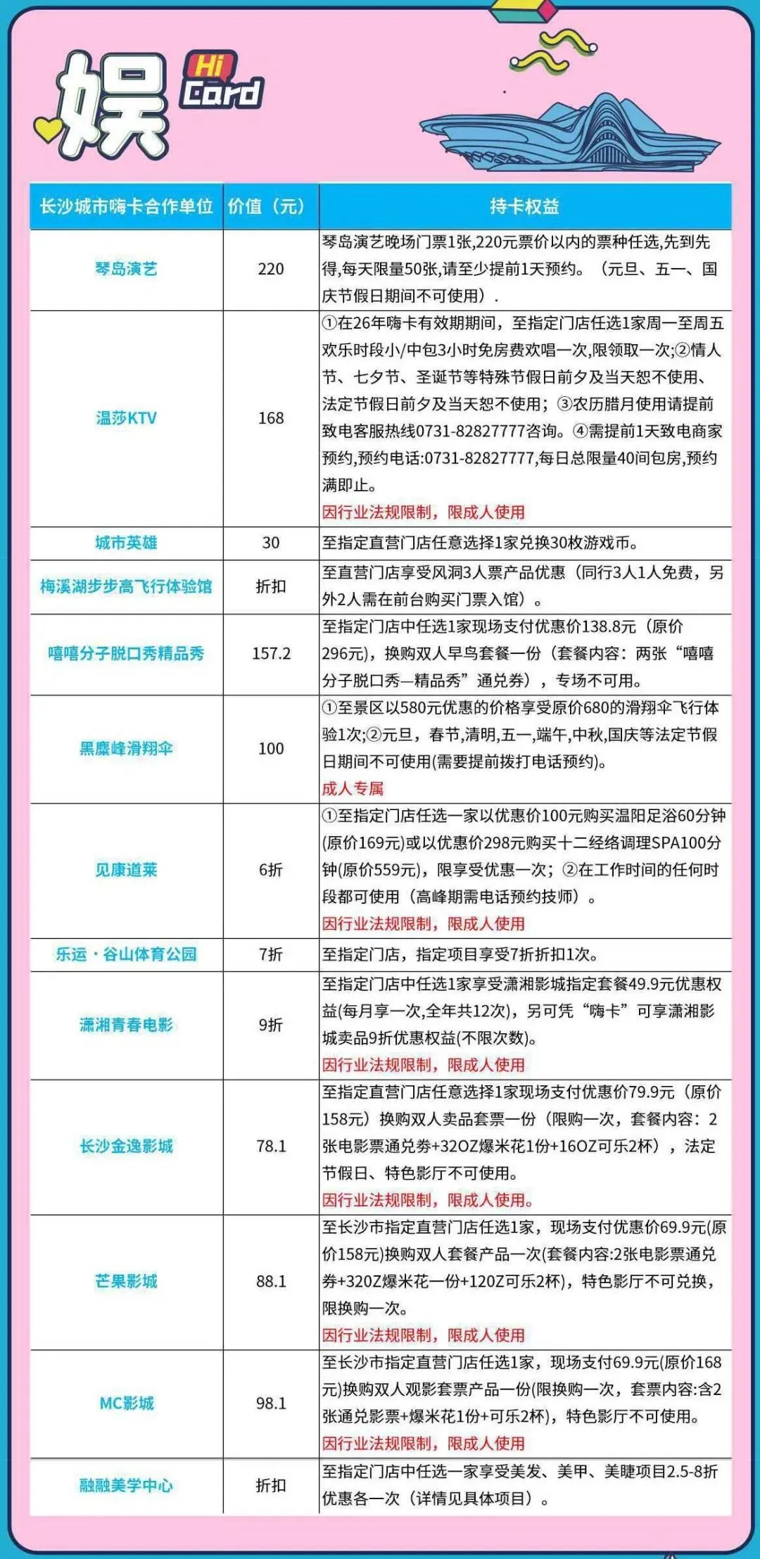 单卡总价值超6000元,覆盖长沙超100+明星商家专享优惠,一卡在手周周玩耍不重样!