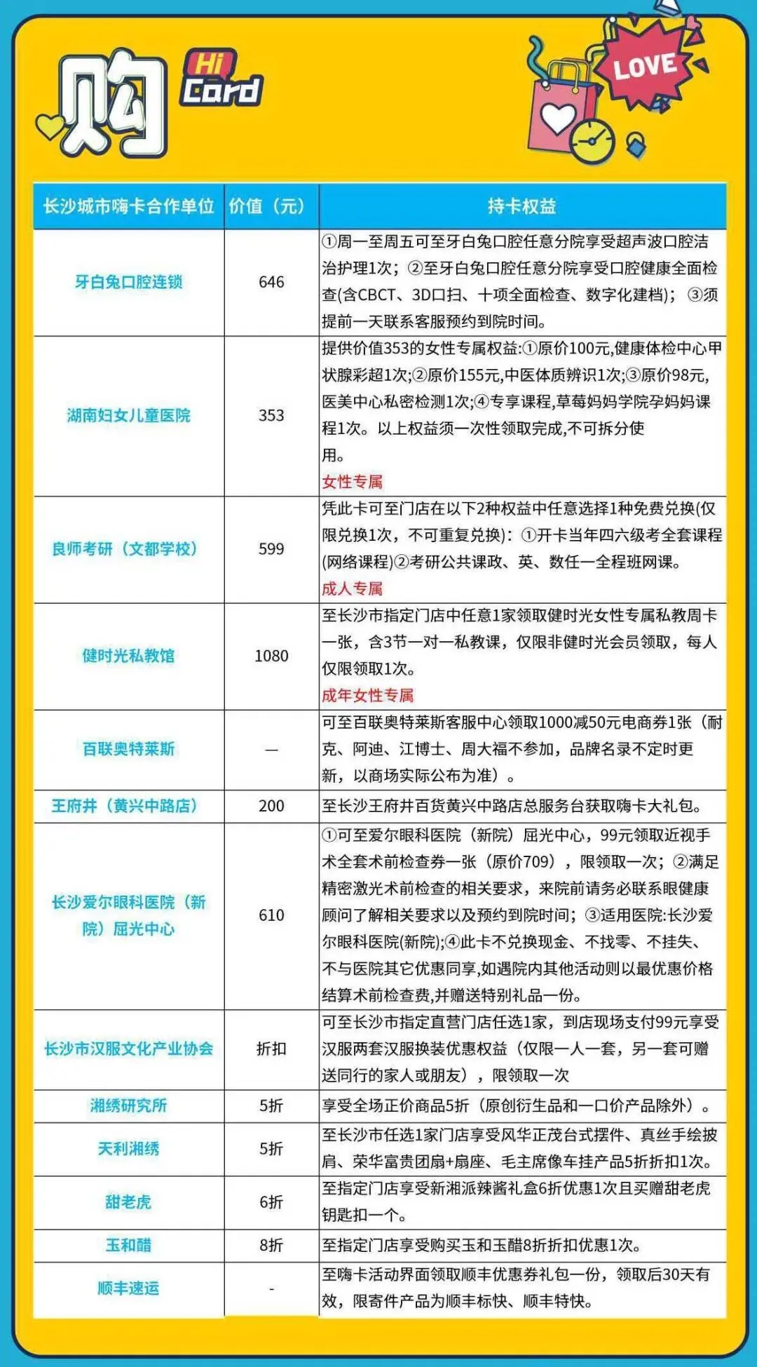 牙白兔口腔连锁、湖南妇女儿童医院、健时光私教馆、百联奥特莱斯、王府井……品质消费、文创潮品、服饰美妆低折购,遍布长沙各大商圈,实现一站式购物自由!