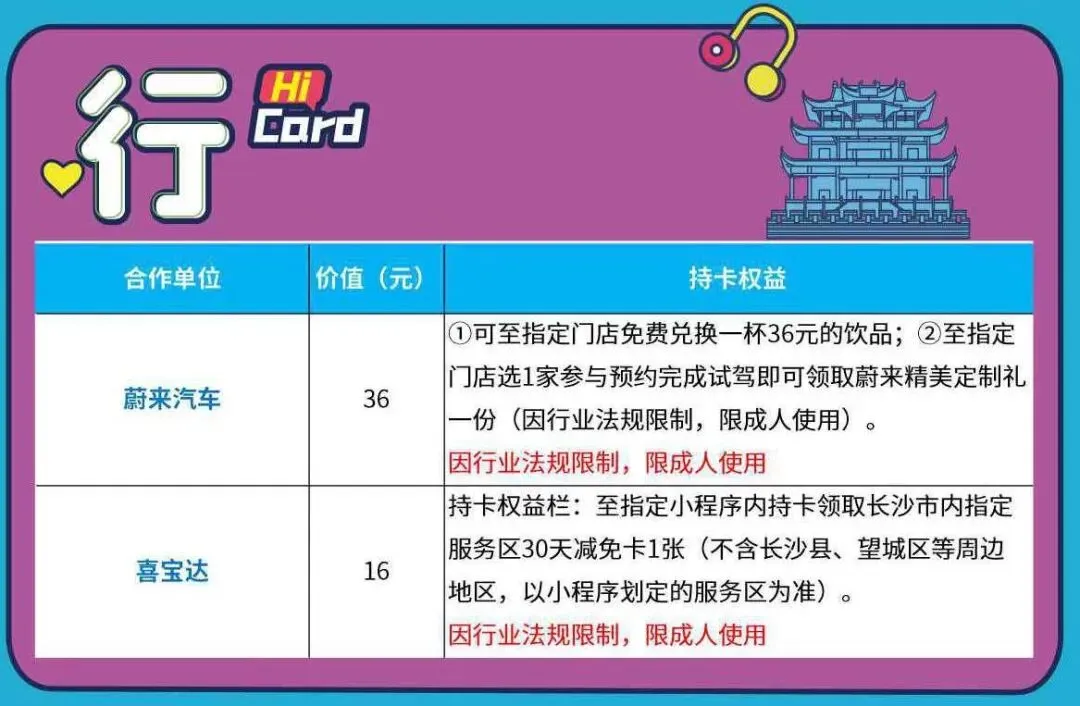 蔚来汽车、喜宝达等品牌商家出行礼遇、试驾福利超值享,覆盖多类出行场景,一卡解锁“去哪都方便”的快乐!