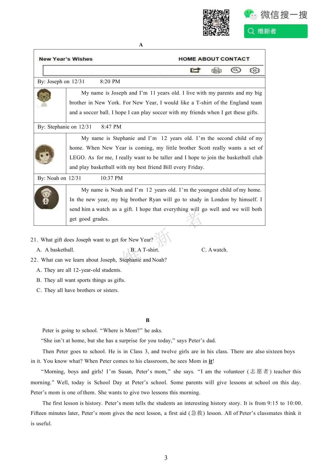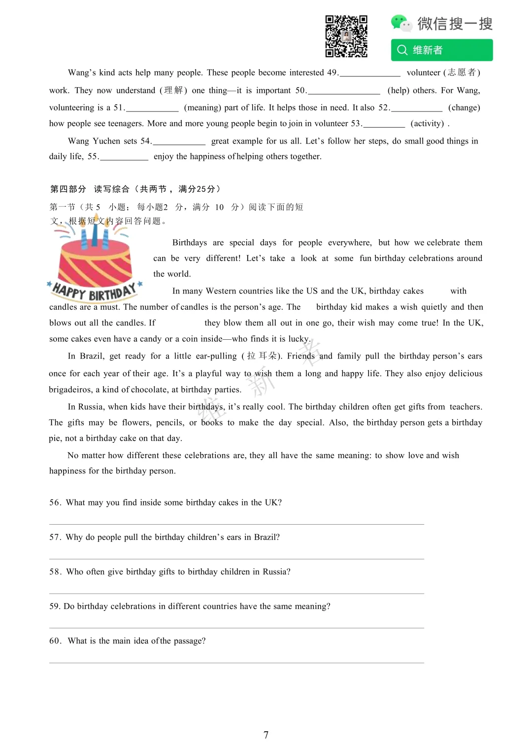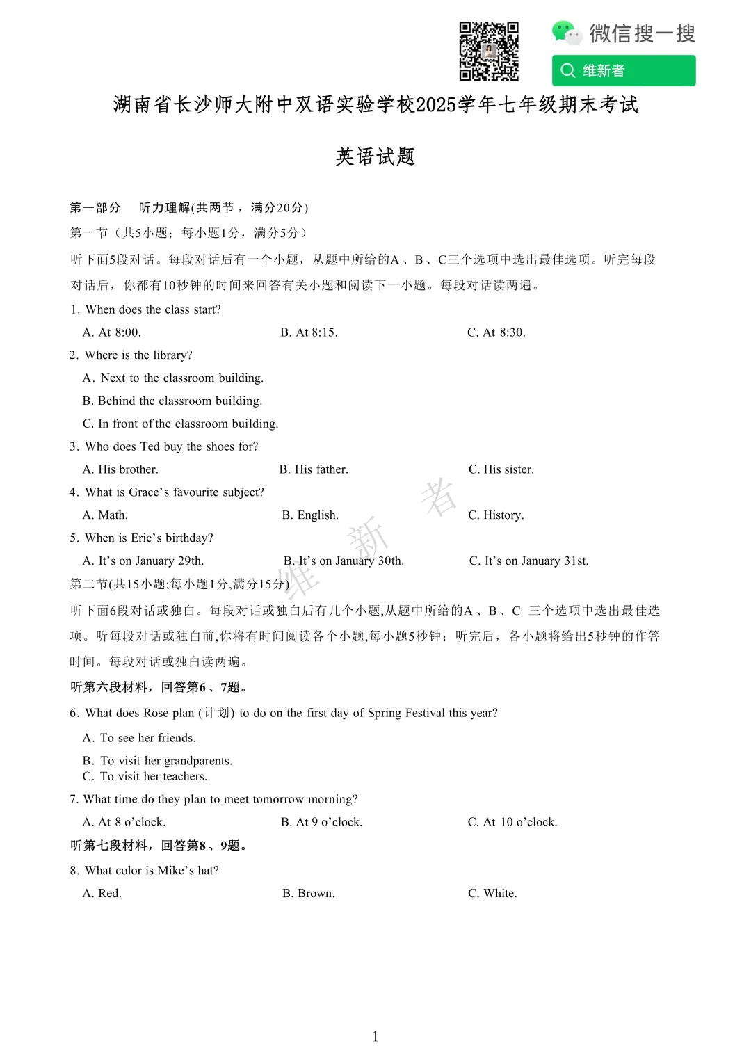 维新者致力于收集和整理各大名校试题,帮助您省心省力获取各类优质的试卷与教辅资源。我们这次带来的是湖南省长沙师大附中双语实验学校2025学年七年级期末考试英语试题及答案,希望能够有助于您孩子的学习。
