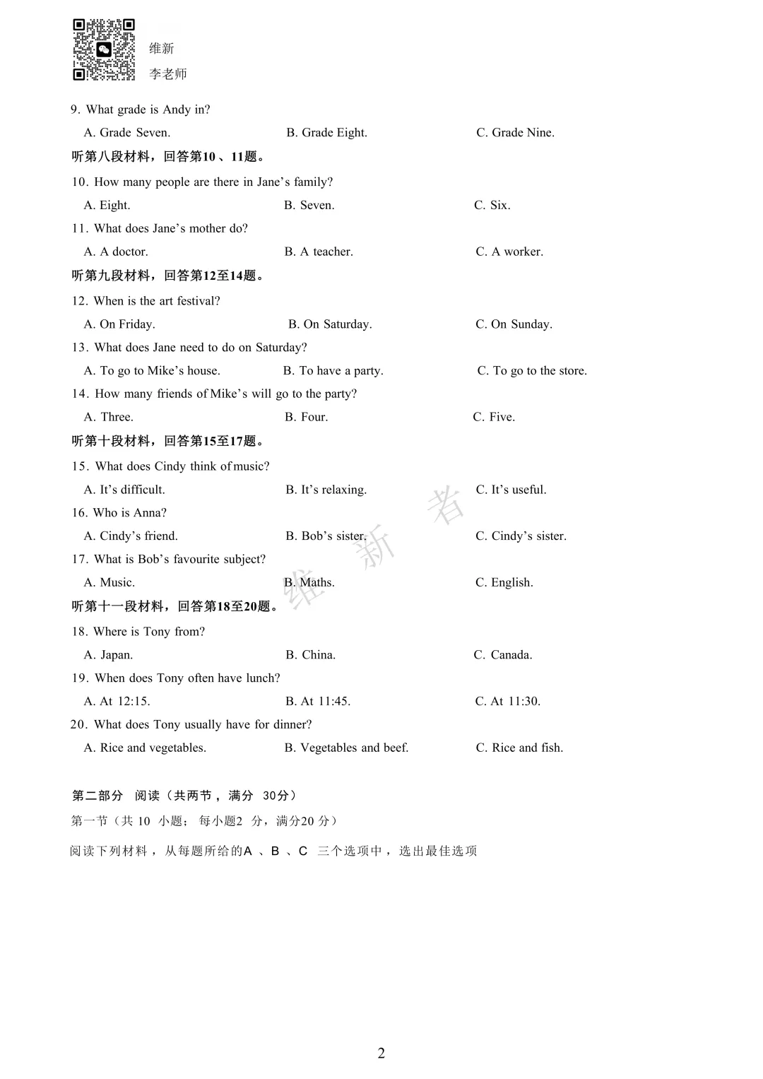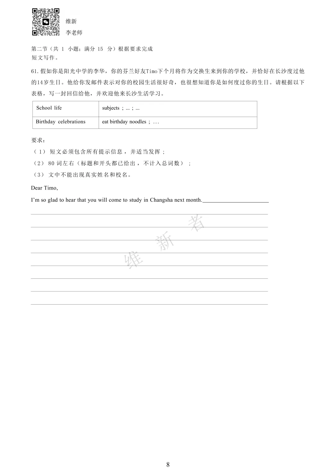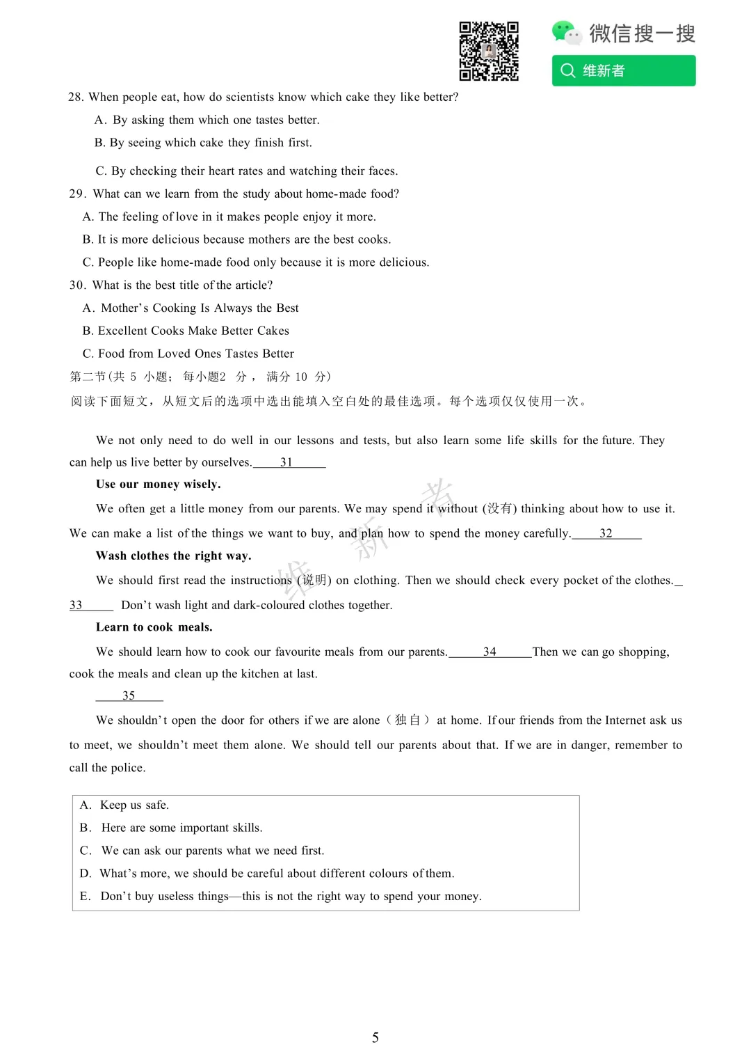 维新坚守教育初心 伴你成长第835份试卷