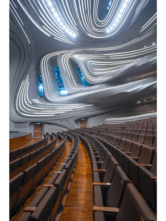 这座由世界级建筑大师扎哈·哈迪德设计的白色建筑群,本身就如同一件巨大的、流动的雕塑艺术品。它摒弃了直线和直角,用充满未来感的曲线,勾勒出芙蓉花瓣的意象。
