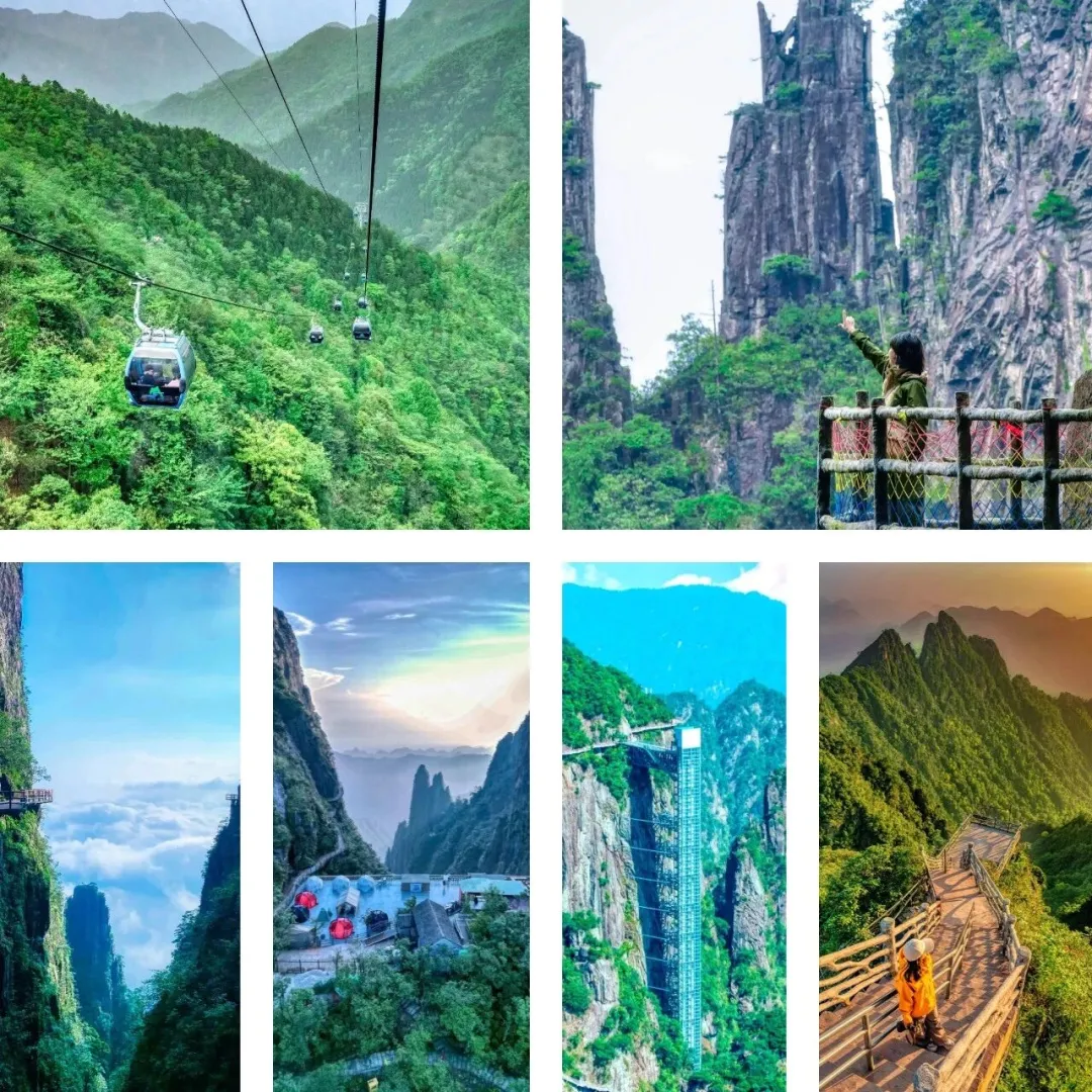 畅游中国南方最长360度环绕8千米悬空栈道,感受一步一美景:云栈漫步、金鞭揽胜、东门迎祥、七星斗日、天台探险观音礼佛、万寿祈福等)。游览结束后返回酒店。