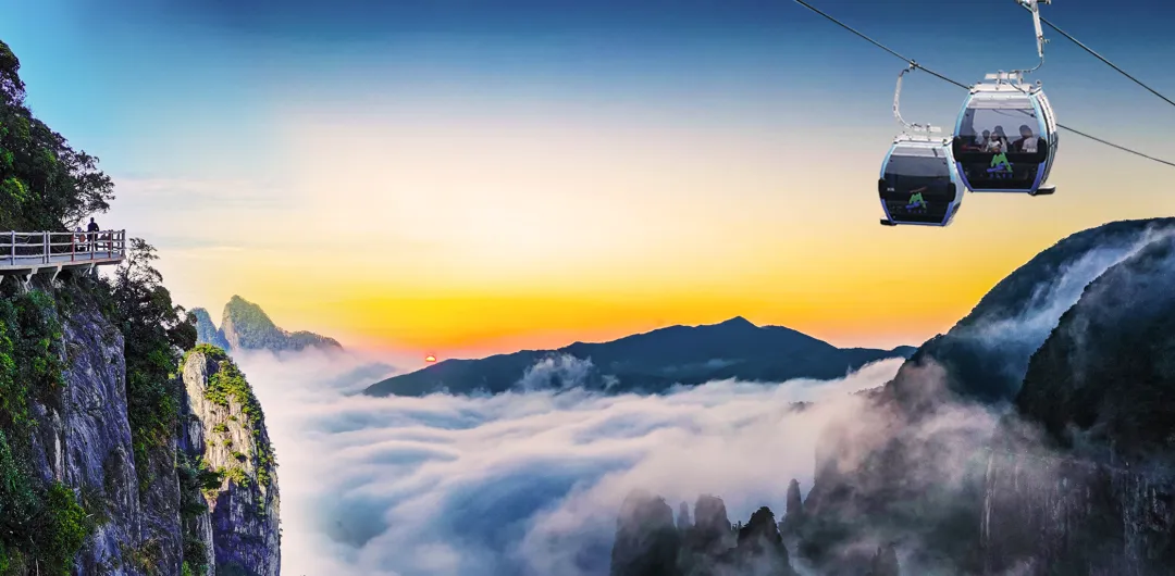 乘坐中国目前最长索道单线的观光缆车【五指峰索道】,索道全长3.7公里,全国单线最长;每小时客运量达2000人,全国功率最大;全球索道极限高差峰索道,上下穿梭,一索飞渡,腾云驾雾,仅需11分钟,就到五指峰核心景区,悬崖栈道,莽山新十景,一一亮相在你眼前。