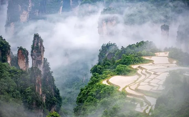 走进金鞭溪,节奏忽然放慢。水在脚边走,脚步被溪水拽着走,猴子在树杈上盯你,眼神像算账。老人提醒我:“包拉上拉链,零食藏深啰,猴儿精得很。”溪岸石板砸在脚底,温凉得像刚洗过的瓷碗。袁家界的迷魂台前,风打过来像有人从肩头轻轻一拍,云雾推着石柱往远处退——“悬浮山”的原型并不靠夸张,它靠的是地表的想象力。天子山则像一部石头排兵谱,当年土家军聚于此,山头像营盘,层层叠叠,风过去,像点名。