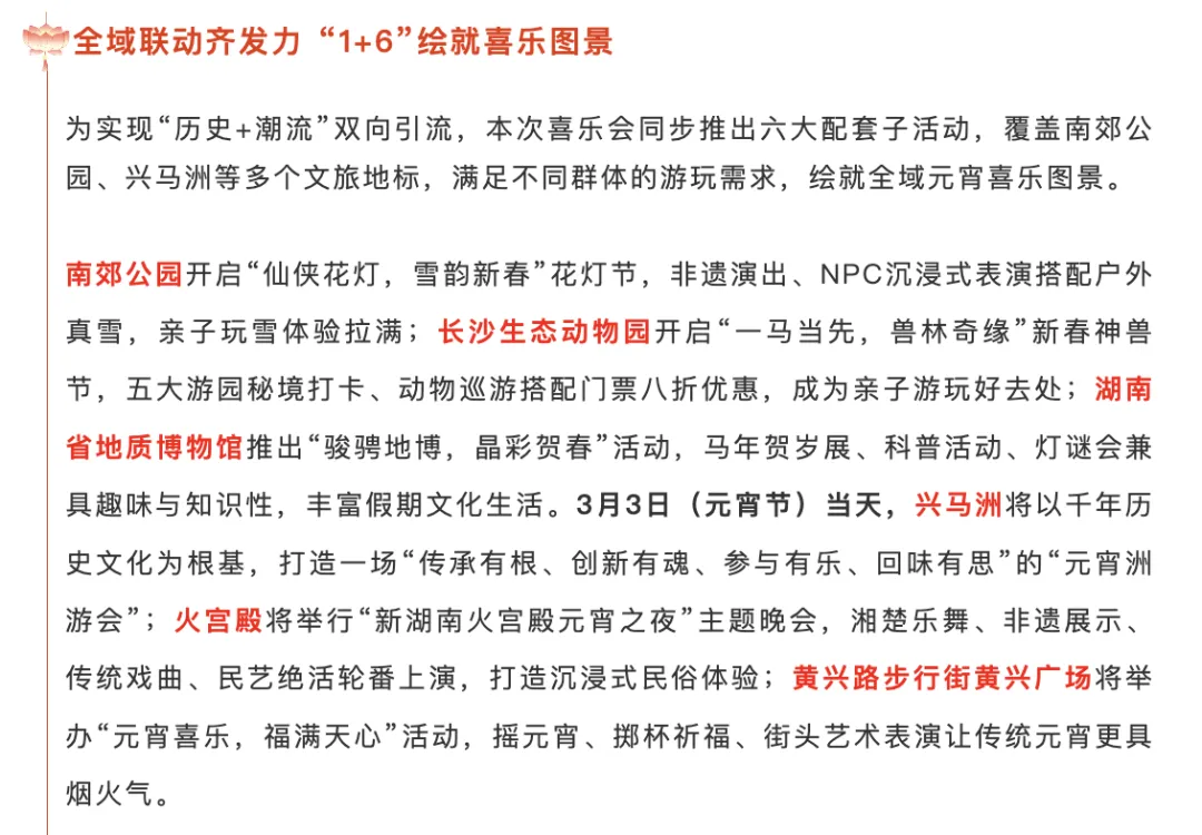 融合财神送福、舞龙舞狮迎新春、非遗手作、游园游戏、经典湘剧等多重体验。