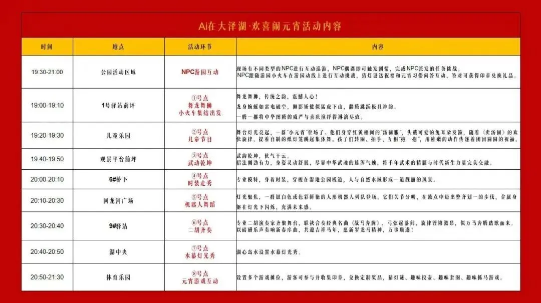 “Ai在大泽湖·欢喜闹元宵”沉浸式夜间游园, NPC游园互动、舞龙舞狮、武动乾坤、