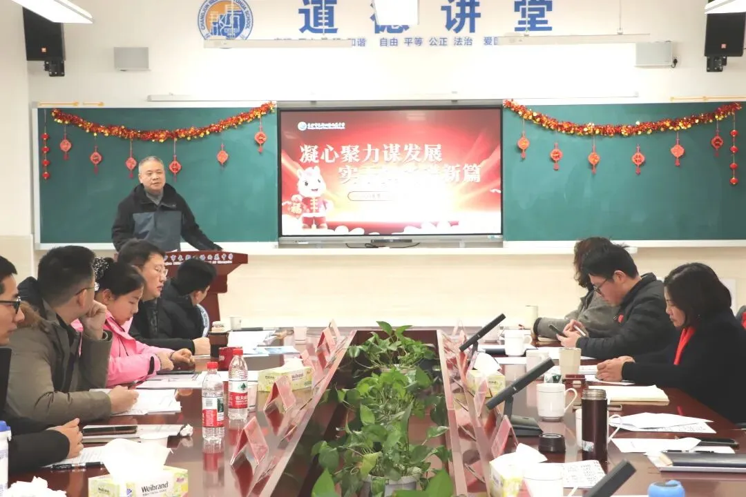 党政办主任欧洁从党建引领、行政中枢、宣传窗口、人事服务等多重职能出发,全面汇报了在保障学校高效运转、推动党建业务融合、提升宣传影响力、夯实人事管理基础等方面发挥的关键作用,并围绕强化统筹协调、完善制度建设、聚焦教师发展、繁荣校园文化等维度,阐述了2026年的工作重点与提升路径。