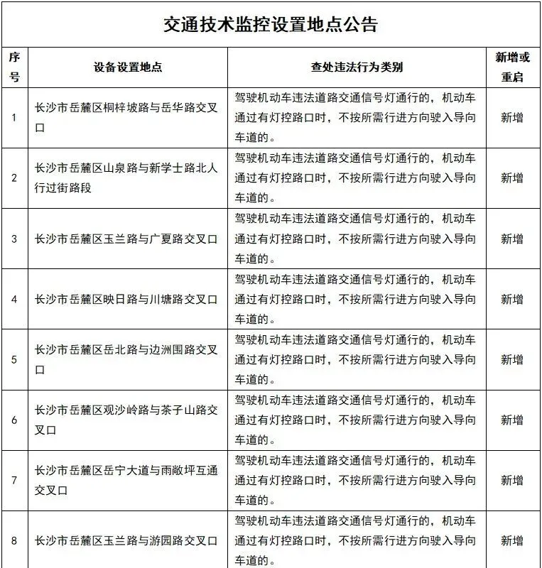 记者从长沙市公安局交通警察支队了解到,该支队在长沙市雨花区振华路与万家丽路交叉路口等多个路口路段,新增或重启固定式交通技术监控设备。