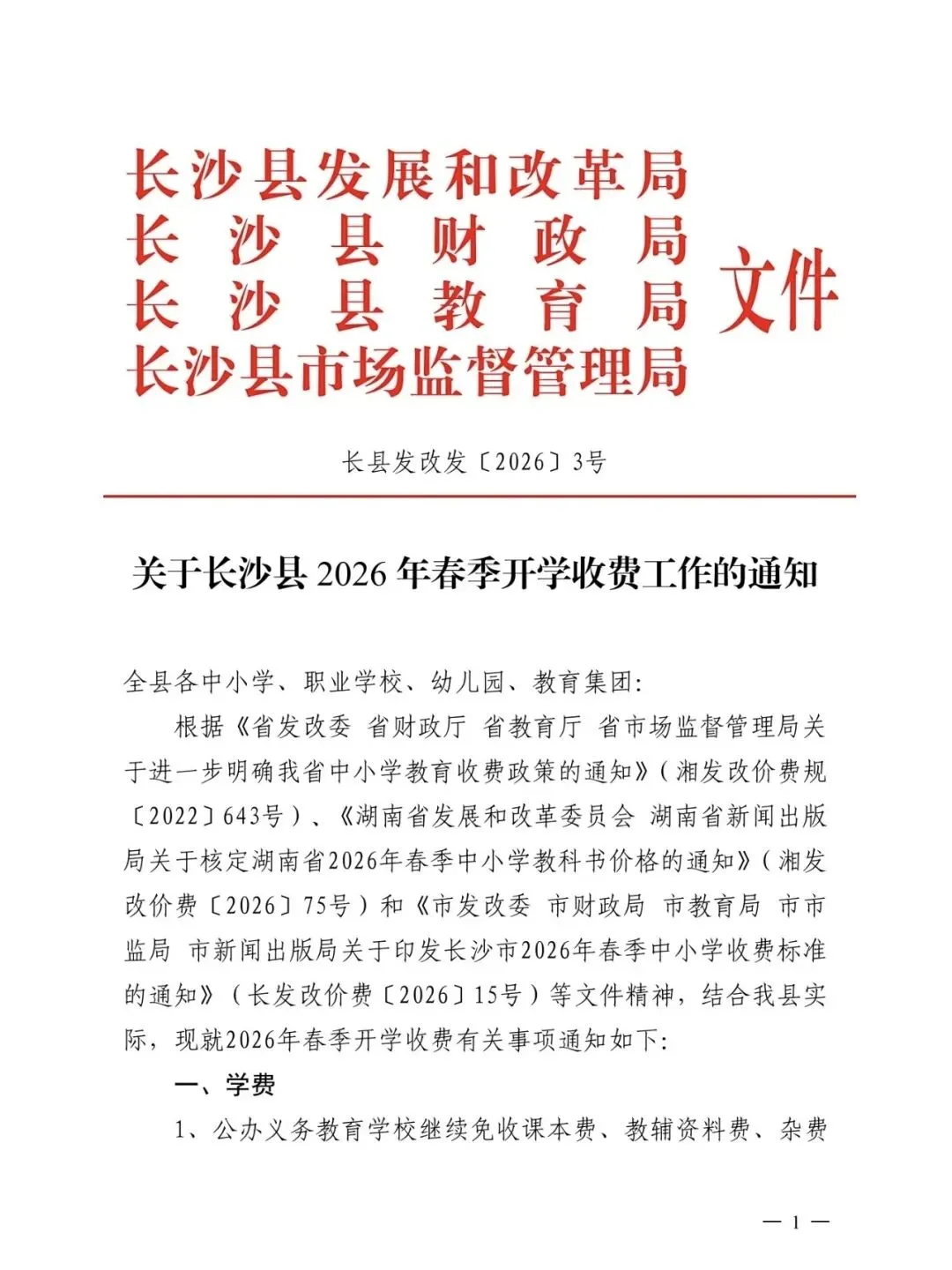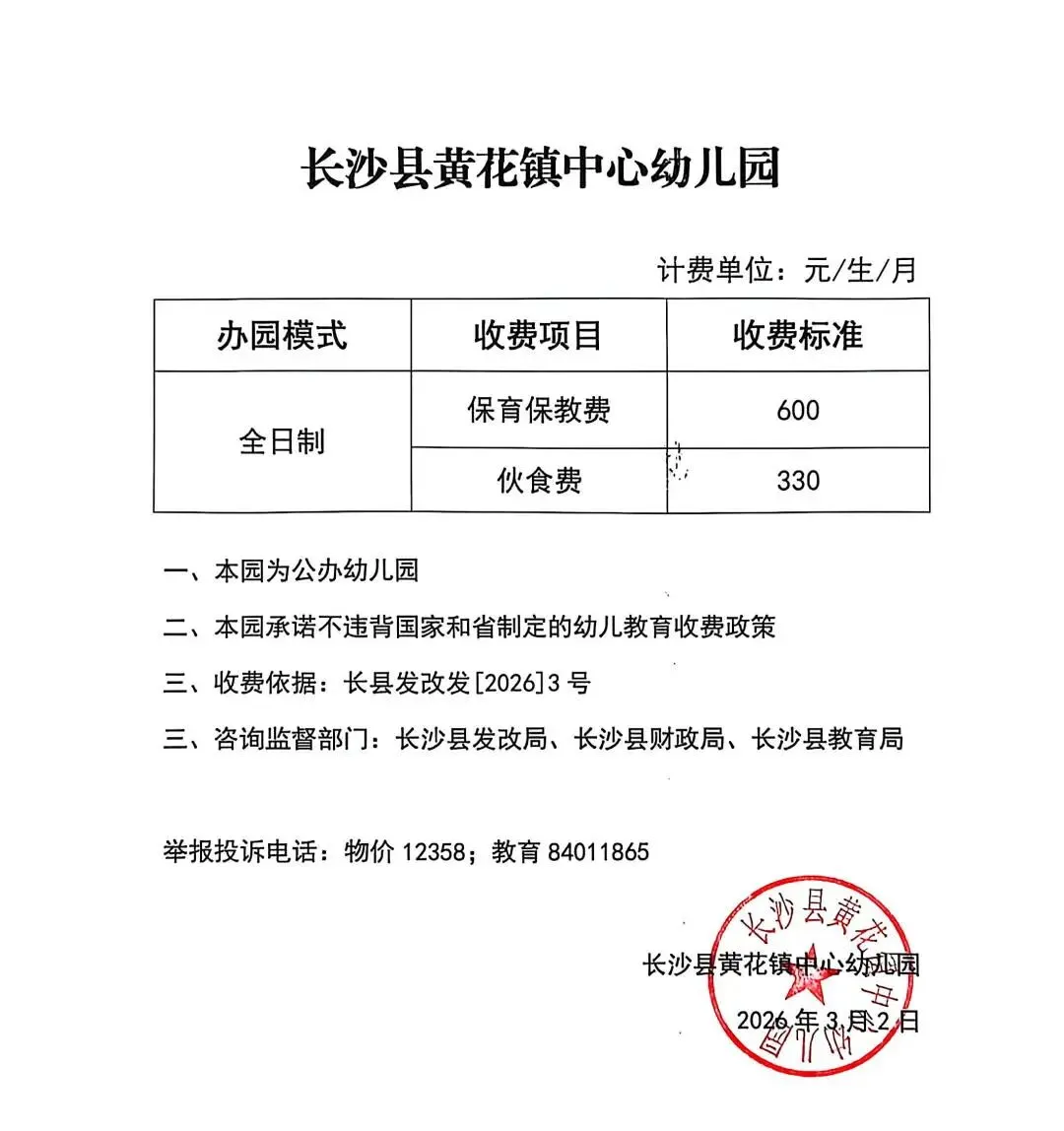 为了让家长了解我园收费标准,增加收费透明度。根据上级要求,现转发长沙县发展和改革局、长沙县财政局、长沙县教育局、长沙县市场监督管理局《关于长沙县2026年春季开学收费工作的通知》,欢迎广大家长和社会共同监督。