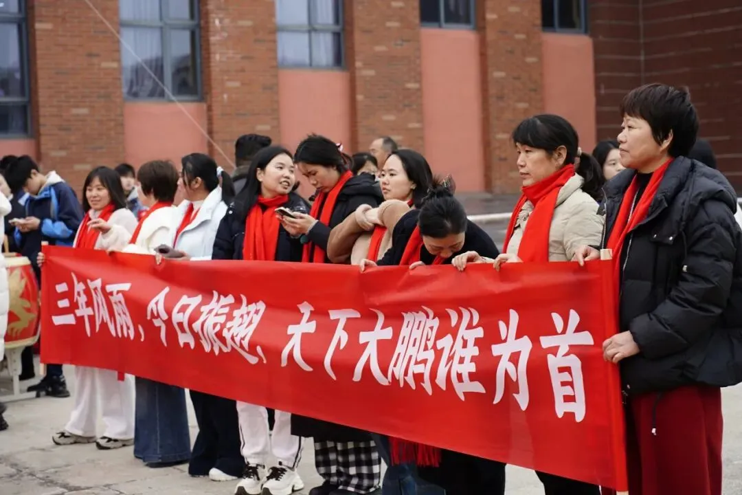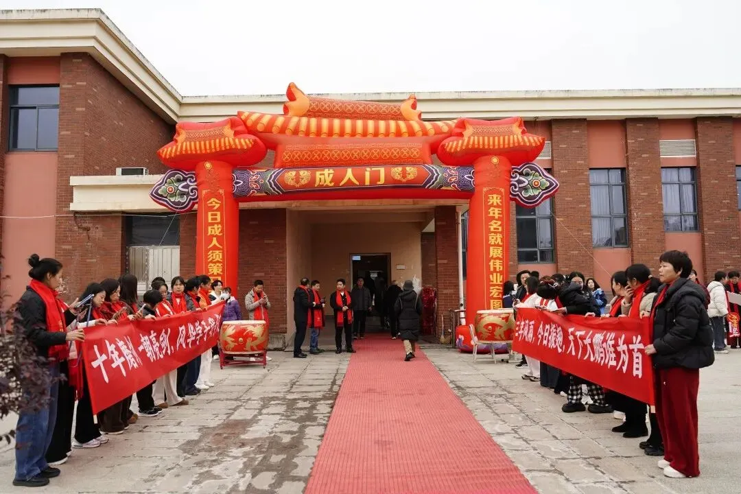 跨越“成人门”的瞬间,红围巾与横幅挥舞,鼓声振奋,全场高呼的口号,为这场成长盛典奏响序曲。