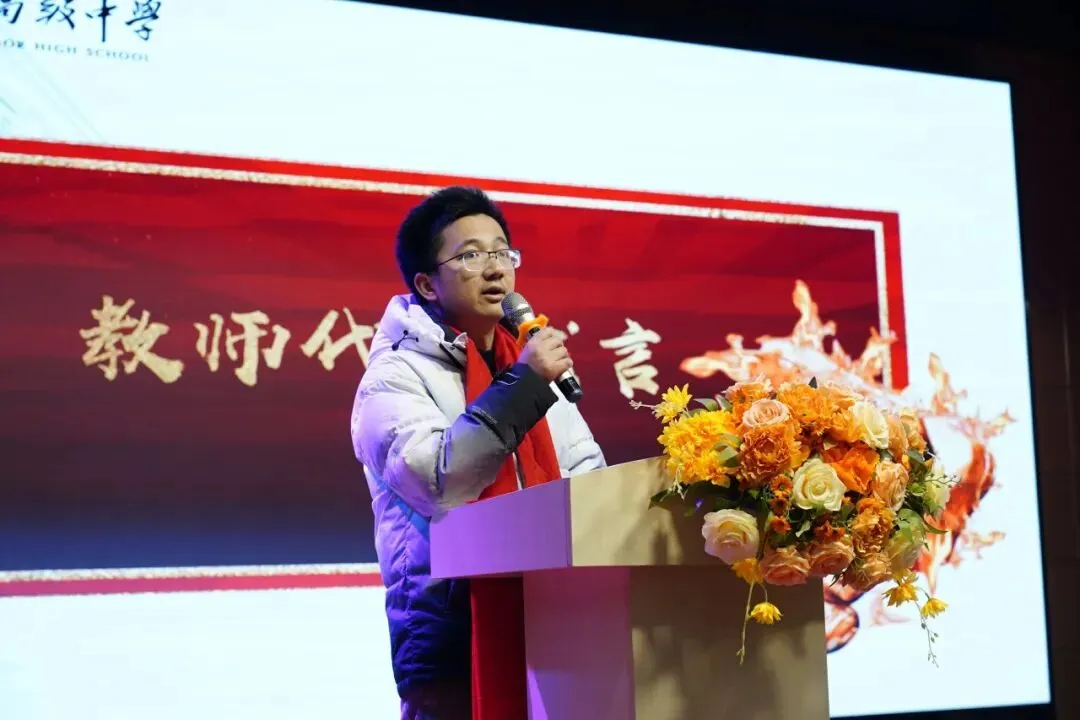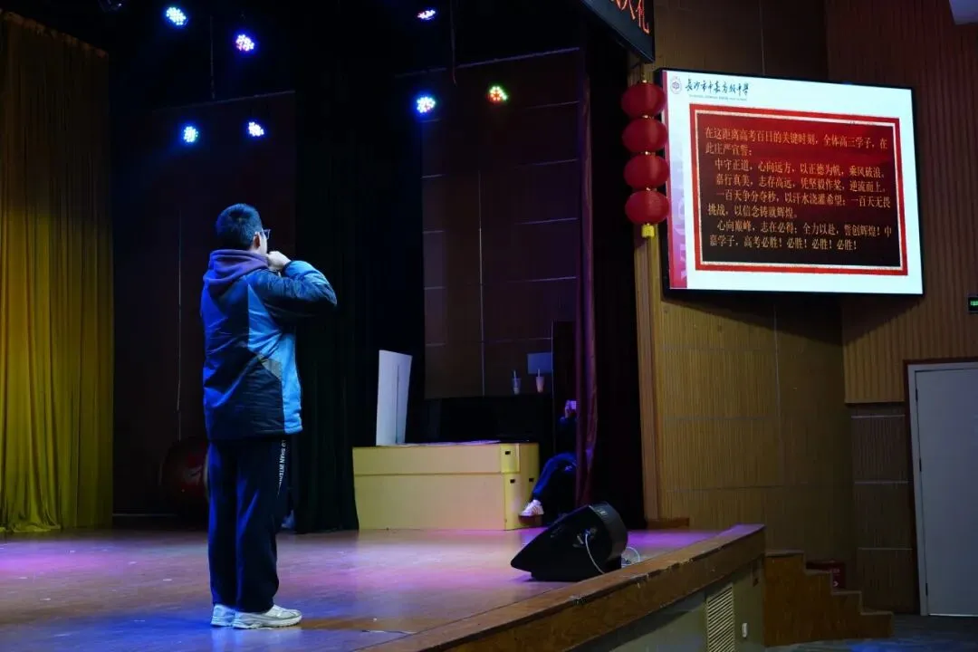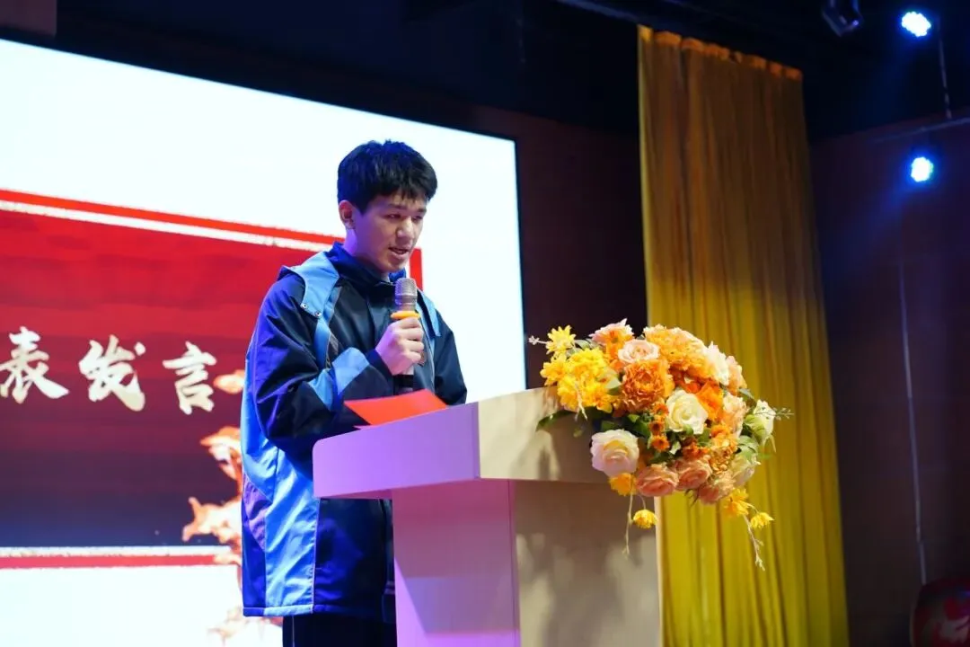 随后,高三学生代表上台发言,他以“十八而志,逐梦高考”为主题,分享了十八岁的心声与对高考的憧憬。他说道,十八岁是责任与梦想的交汇点,我们将以青春之名,为梦想而战,不负韶华,不负期望。