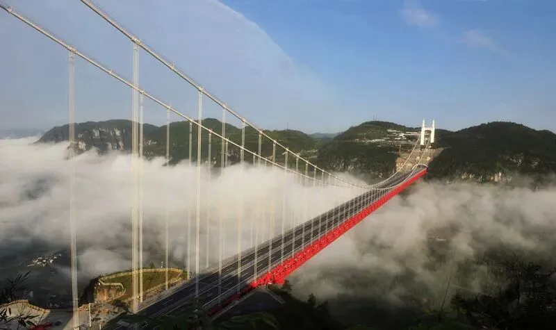早餐后前往参观【矮寨大桥】体验全景式观光电梯,惊险刺激的观光(玻璃)通道,该桥跨越了矮寨大峡谷,主跨居世界第三,亚洲第一。进距离感受大桥的雄壮及矮寨大峡谷的雄伟,俯视德夯大峡谷,谷底观看原始风貌的吉隆苗寨,再现宋祖英家乡的原始风光。【悬崖魔鬼玻璃栈道】(空中飘带):悬崖栈道连接牌坊停车场与矮寨大桥,由悬崖栈道与观景平台组成的高空游览线。