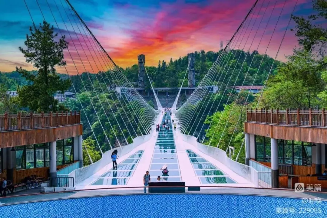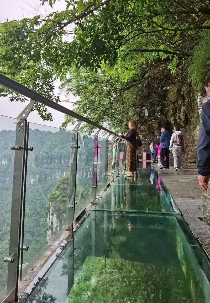 早餐后,前往大峡谷(车程时间约30分钟),游览国家4A级旅游景区【张家界大峡谷+玻璃桥景区】(包含大峡谷门票+玻璃桥上桥费用+观光电梯),体验项目7选5(蹦极除外):爱享飞VR+高空滑索+吴王坡滑道+一线天滑道+寻宝电梯+雕塑电梯、彩虹湖游船、步步高升攀爬体验、260米蹦极),地接社会根据预约成功的时间来调整张家界当地各景点的游览顺序,请客人配合导游工作,预约成功后临时不去者费用不退,敬请理解!),体验世界最高最长玻璃桥,感受刺激,挑战自我。桥长430米,宽6米,全部采用99块透明玻璃铺设而成。走在300米高空的玻璃桥上,仰望蓝天白云,俯瞰溪流潺潺,似漫步云端,超脱尘世,忘却凡间。走完玻璃桥,平复好心情,来到依绝壁而建的木质悬崖栈道,全长400米,在这里,你可欣赏到峡谷全景,若对着谷底喊上一嗓子,回音袅袅(玻璃桥如遇大风、爆雨等恶劣天气太滑为了安全有可能会关闭,请理解)。