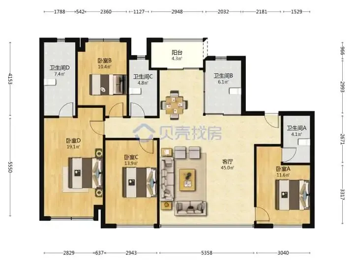 四开间朝南+南北通透,通风、采光无遮挡,舒适度极高。装修按3500元/㎡标准打造,自行添置软装后即可入住。