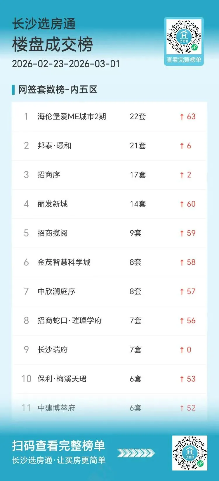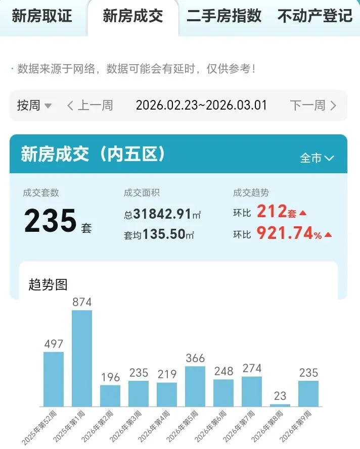 上周(2.23-3.1)长沙内五区网签成交数据出炉!