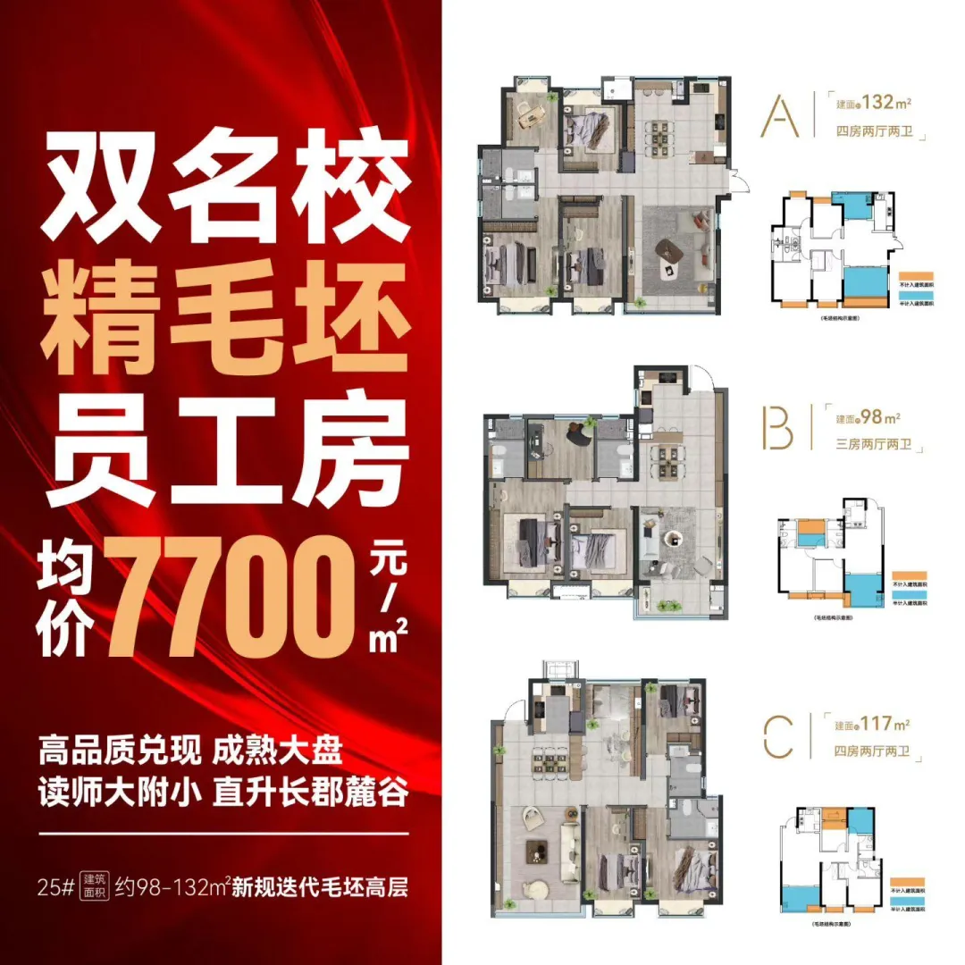 长沙溪山悦:项目位于岳麓区麓谷,2021年精装修卖到12300元/㎡,如今25#改为新规毛坯,均价只卖7700元/㎡。小区周边有地铁2、6号线,出行便利。楼盘自建约8000平人工内湖、约2500m湖景会所,还有约5万方商业(规划),配套3所幼儿园,整体配套较为完善;