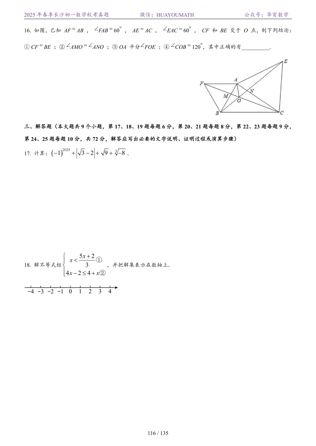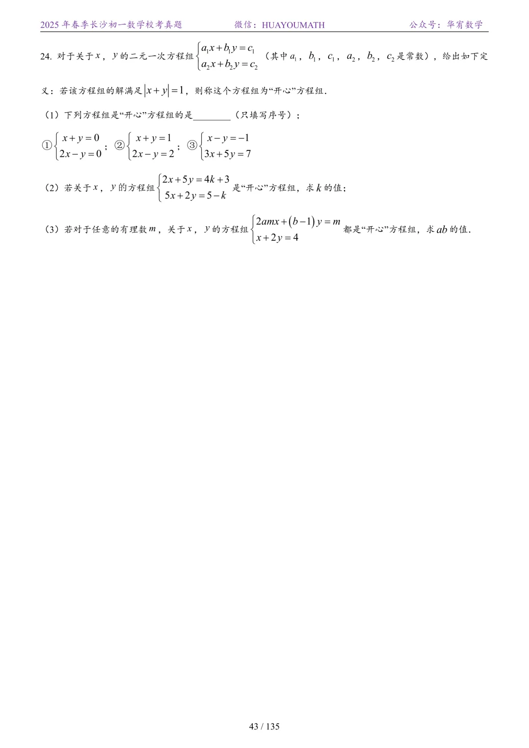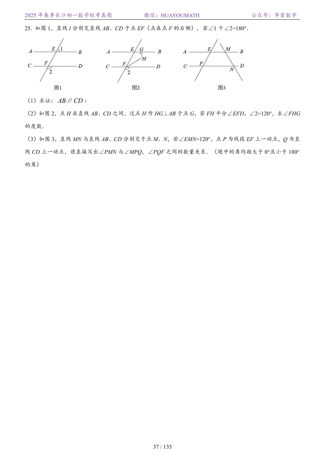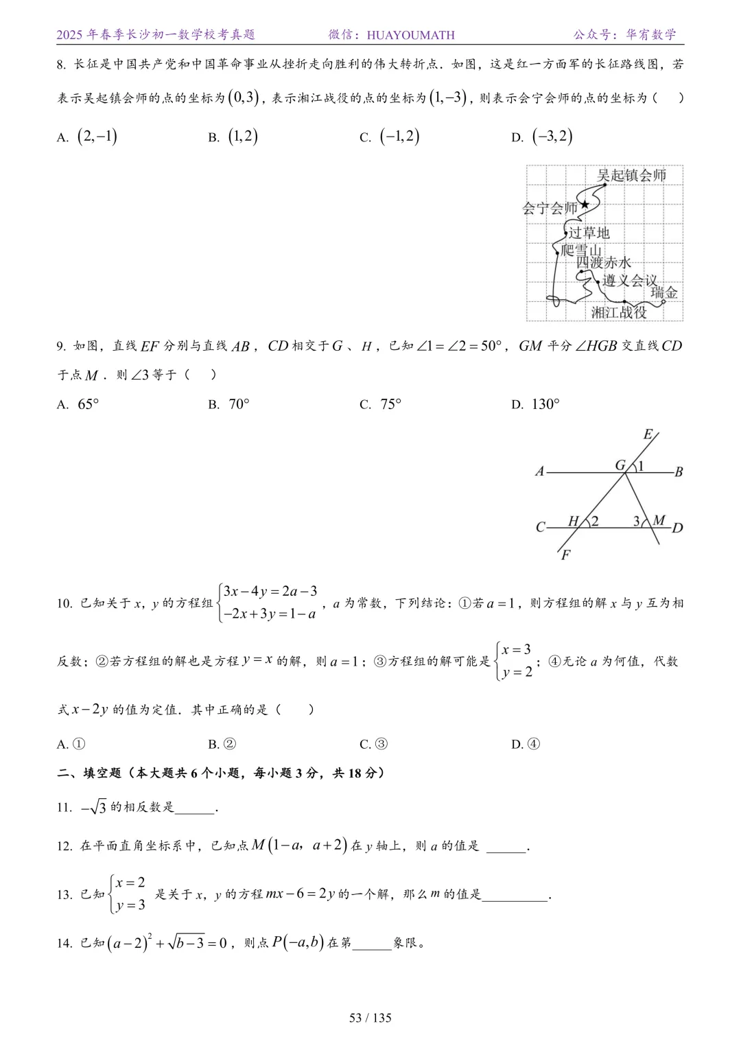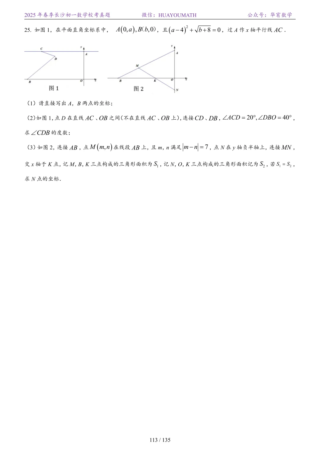 2025年春季长沙初一数学校考真题
