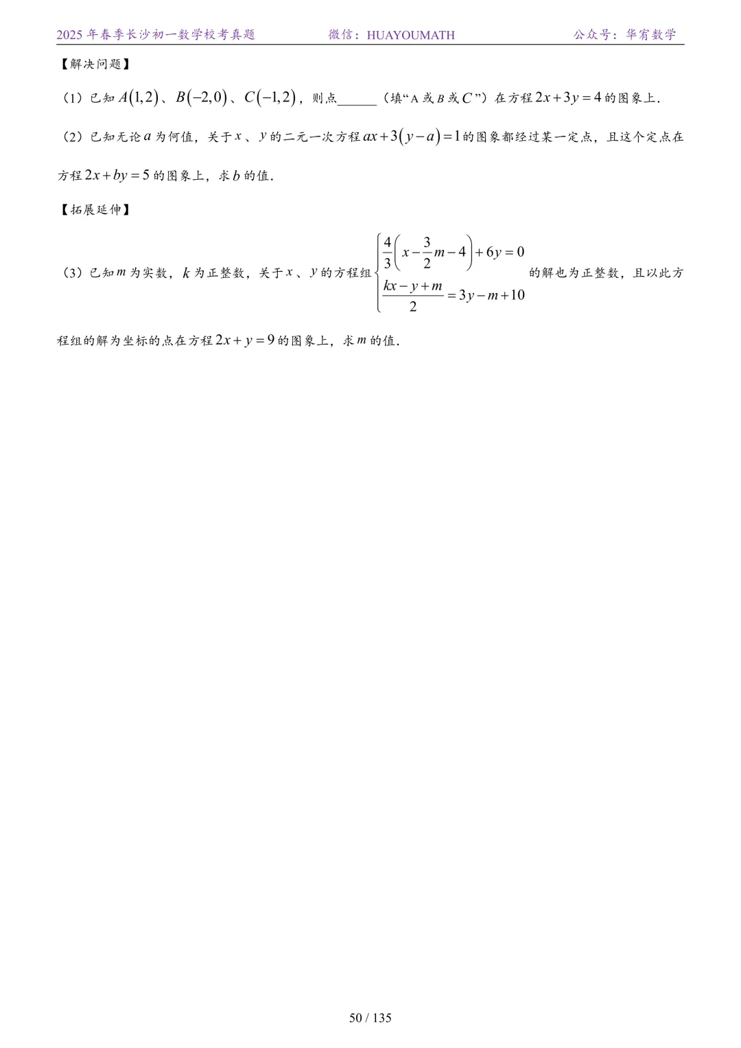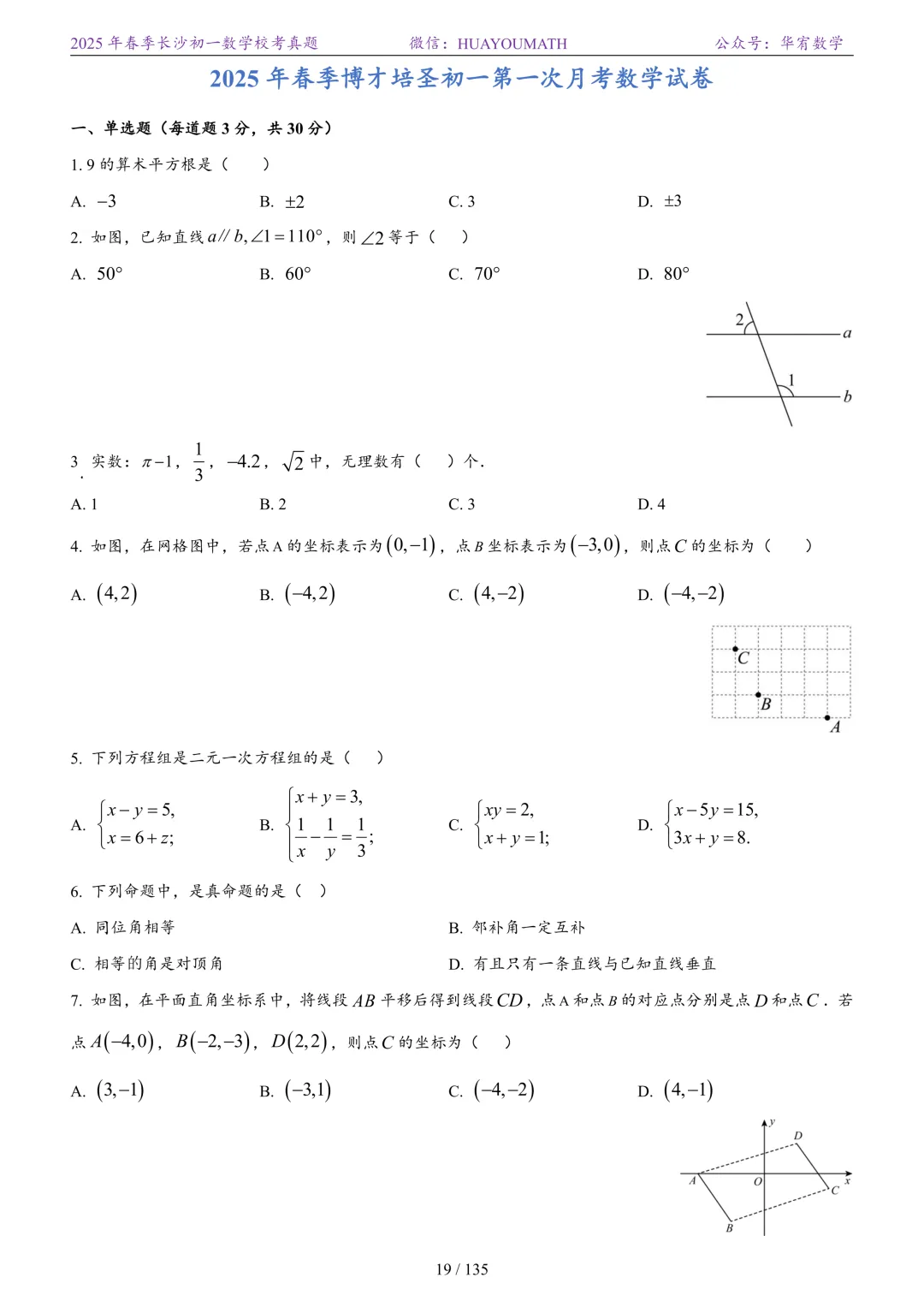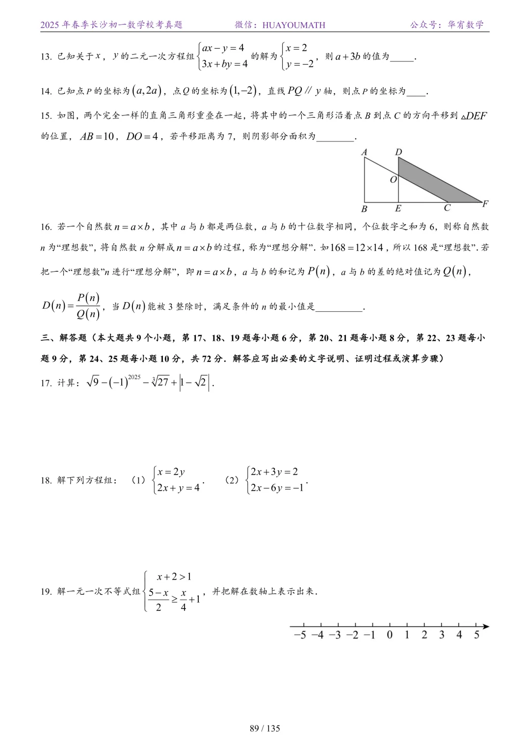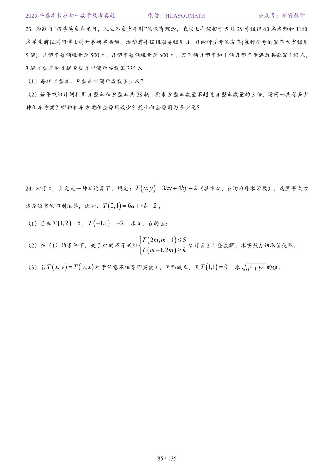 2025年春季长沙初一数学校考真题