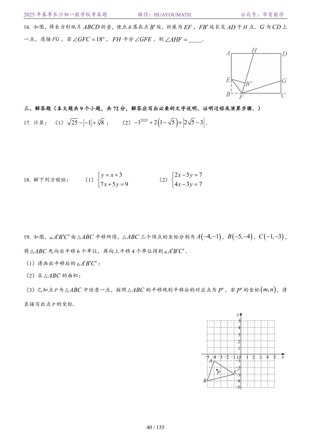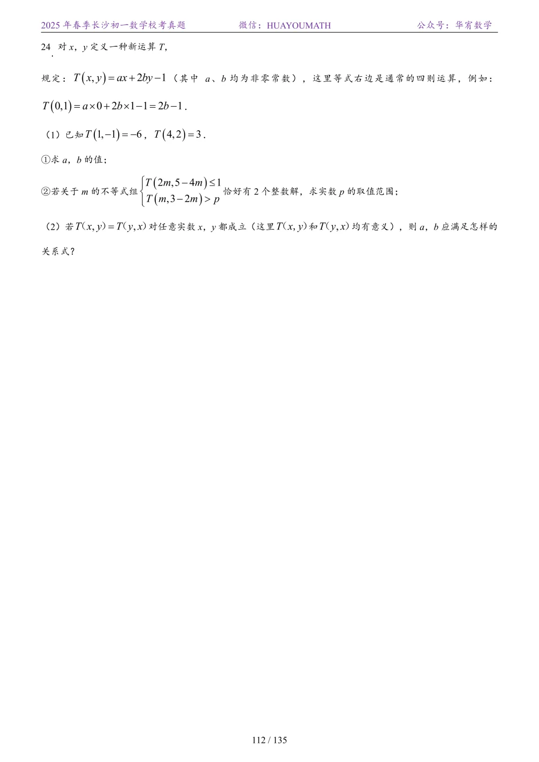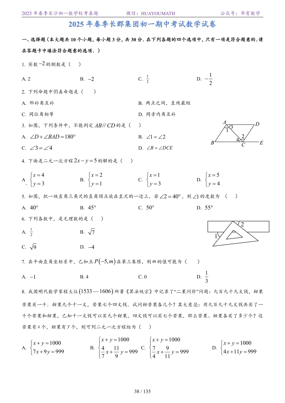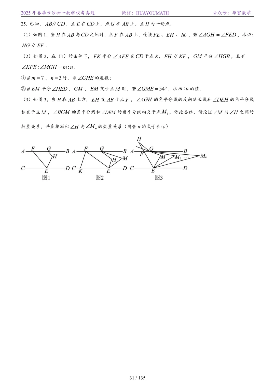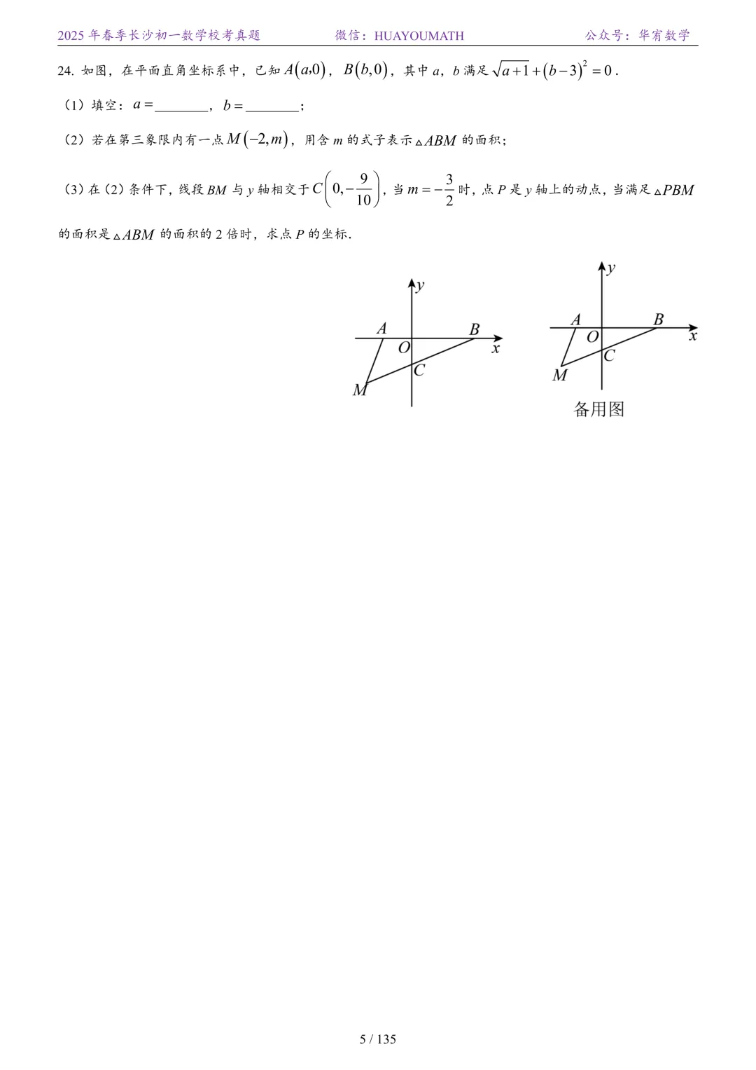 2025年春季长沙初一数学校考真题