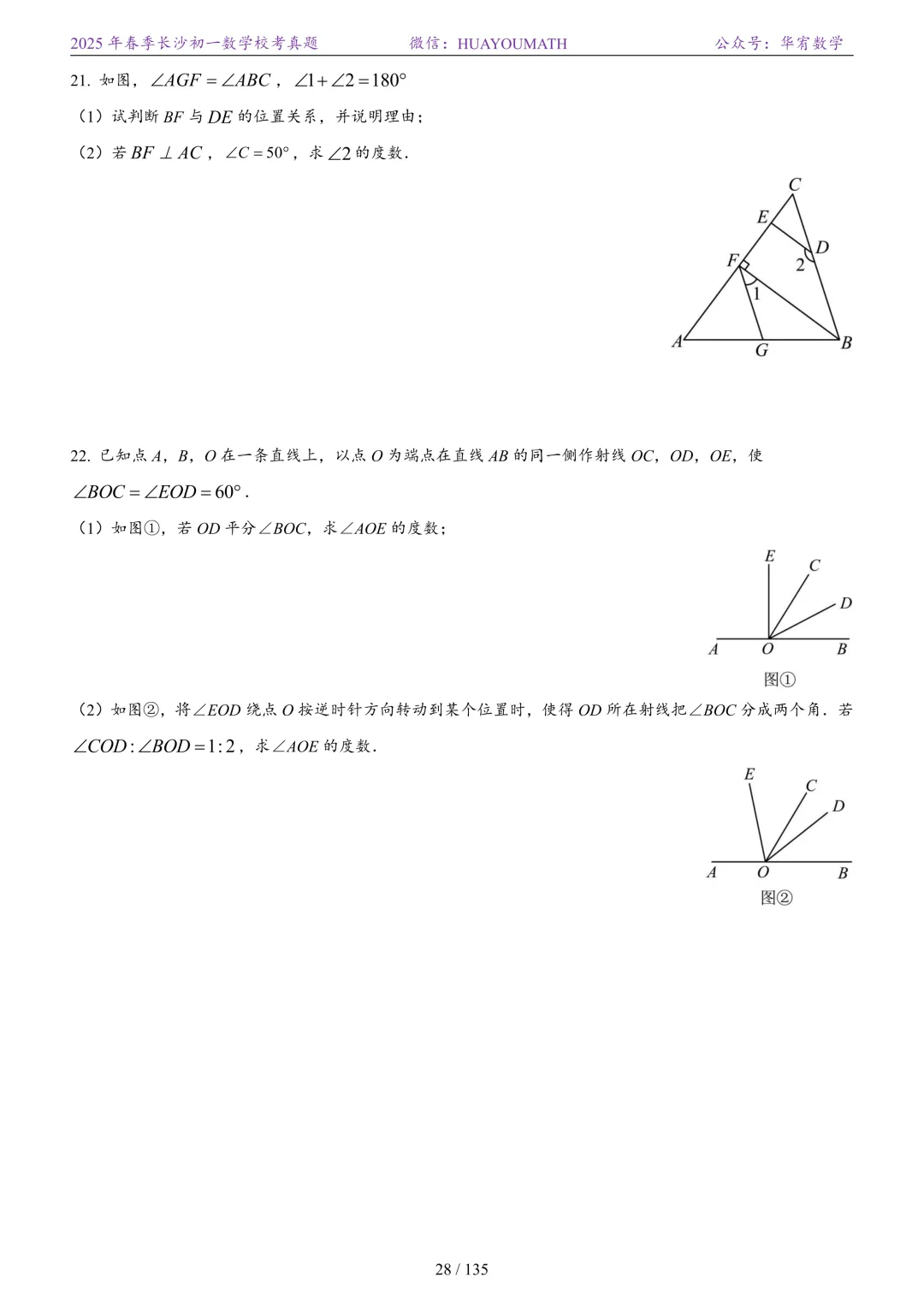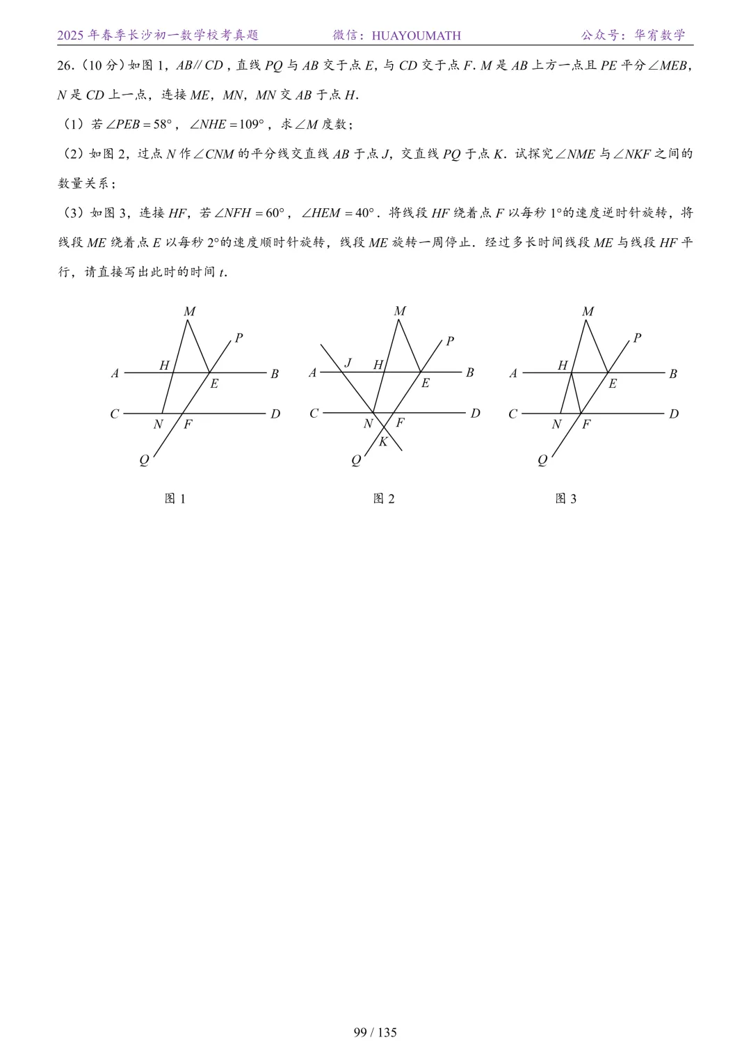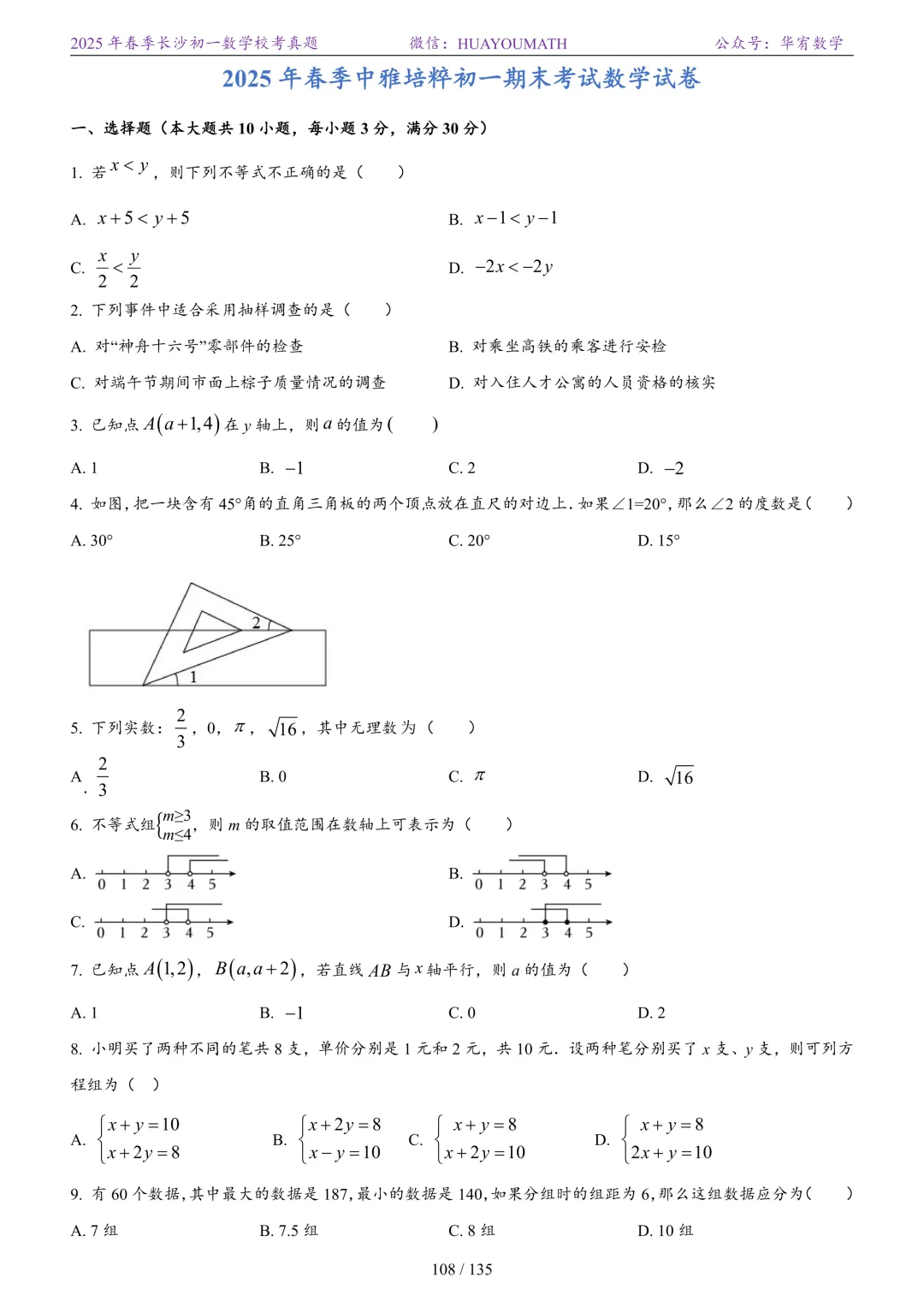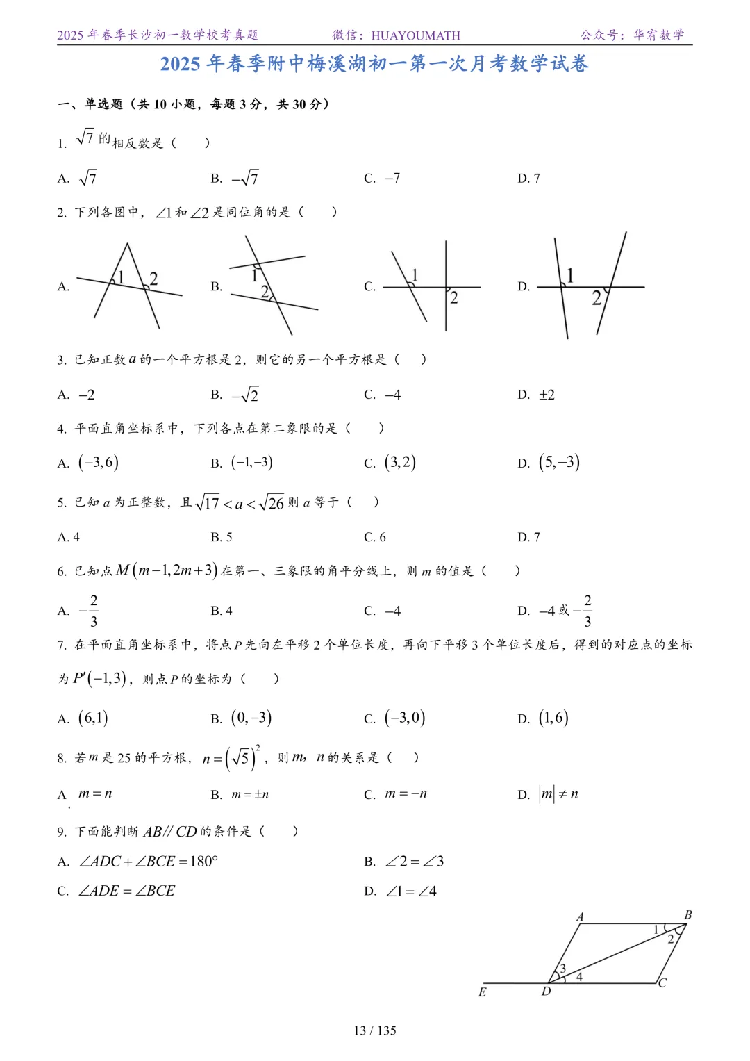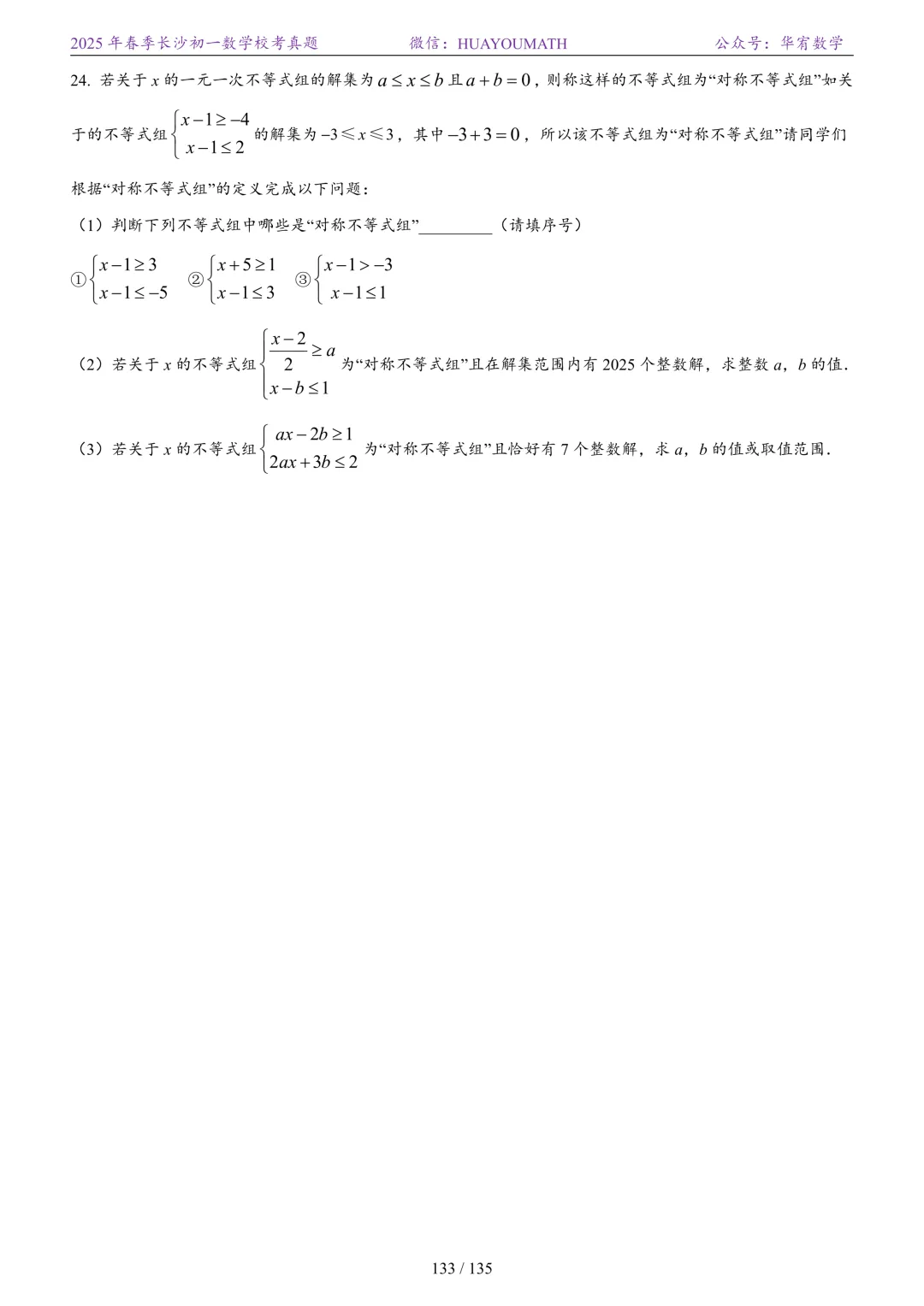 2025年春季长沙初一数学校考真题