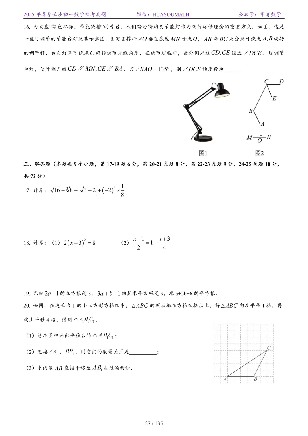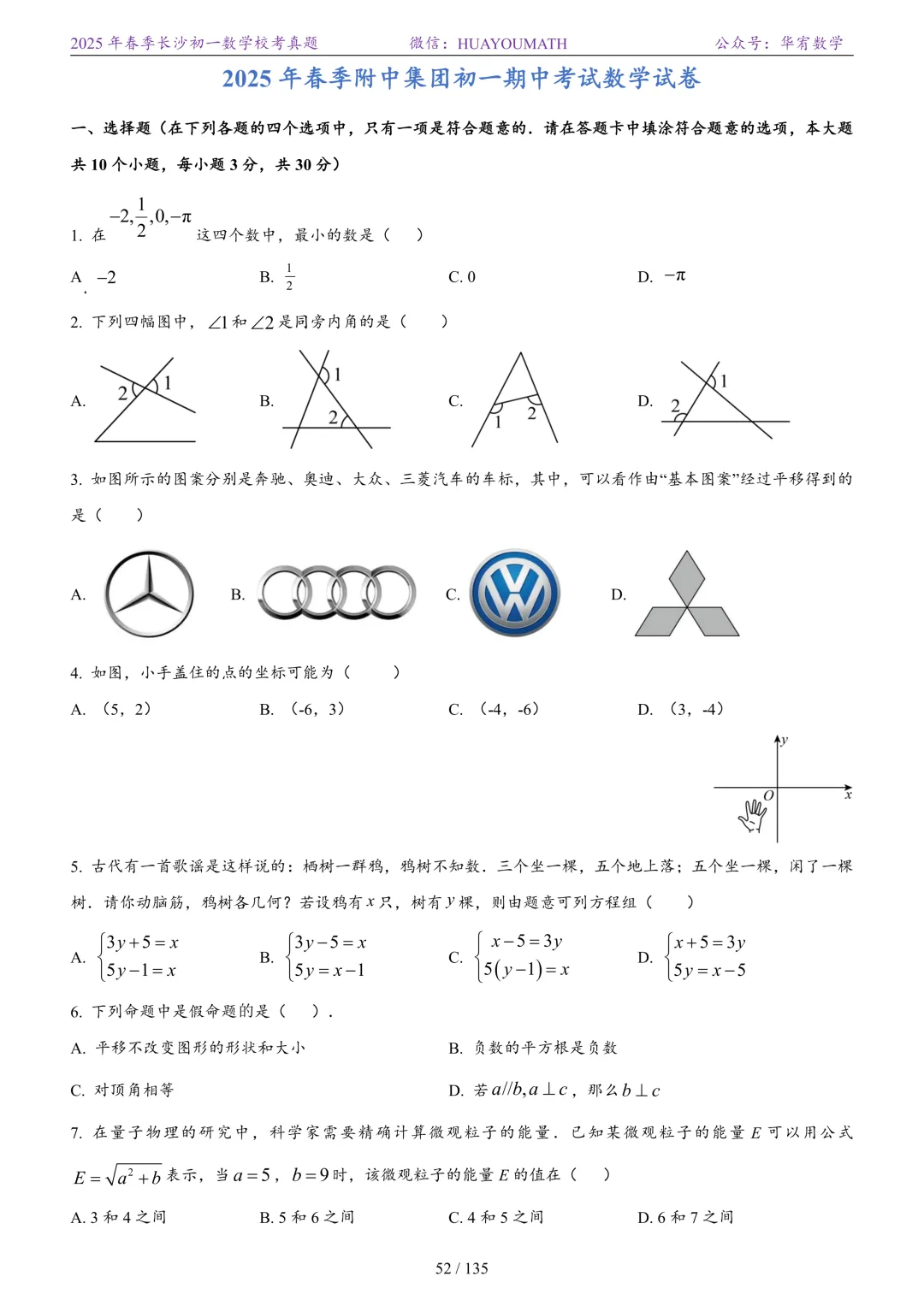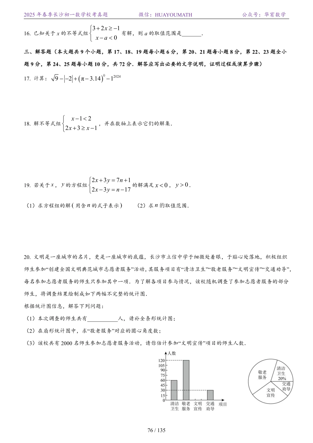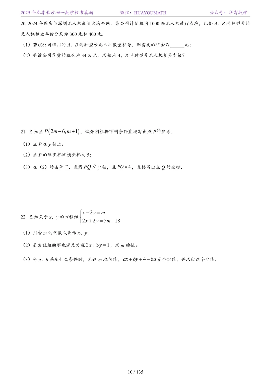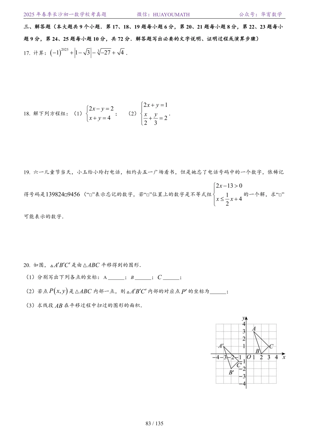 2025年春季长沙初一数学校考真题