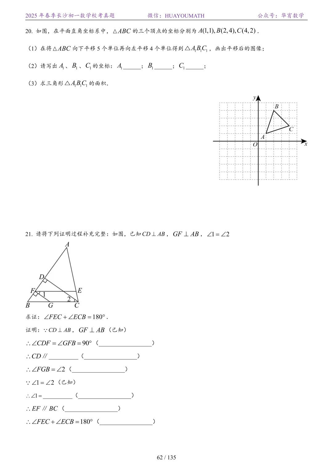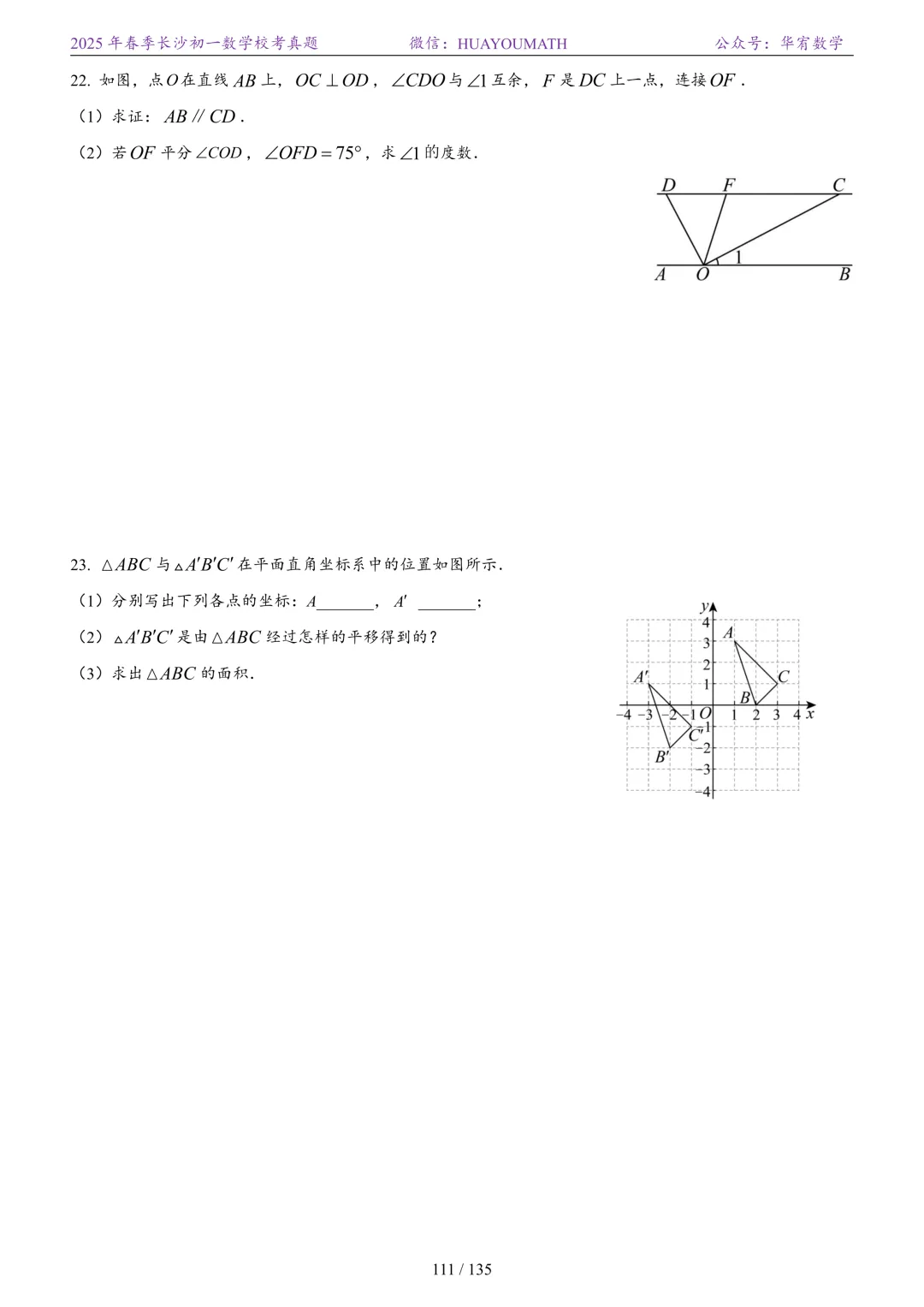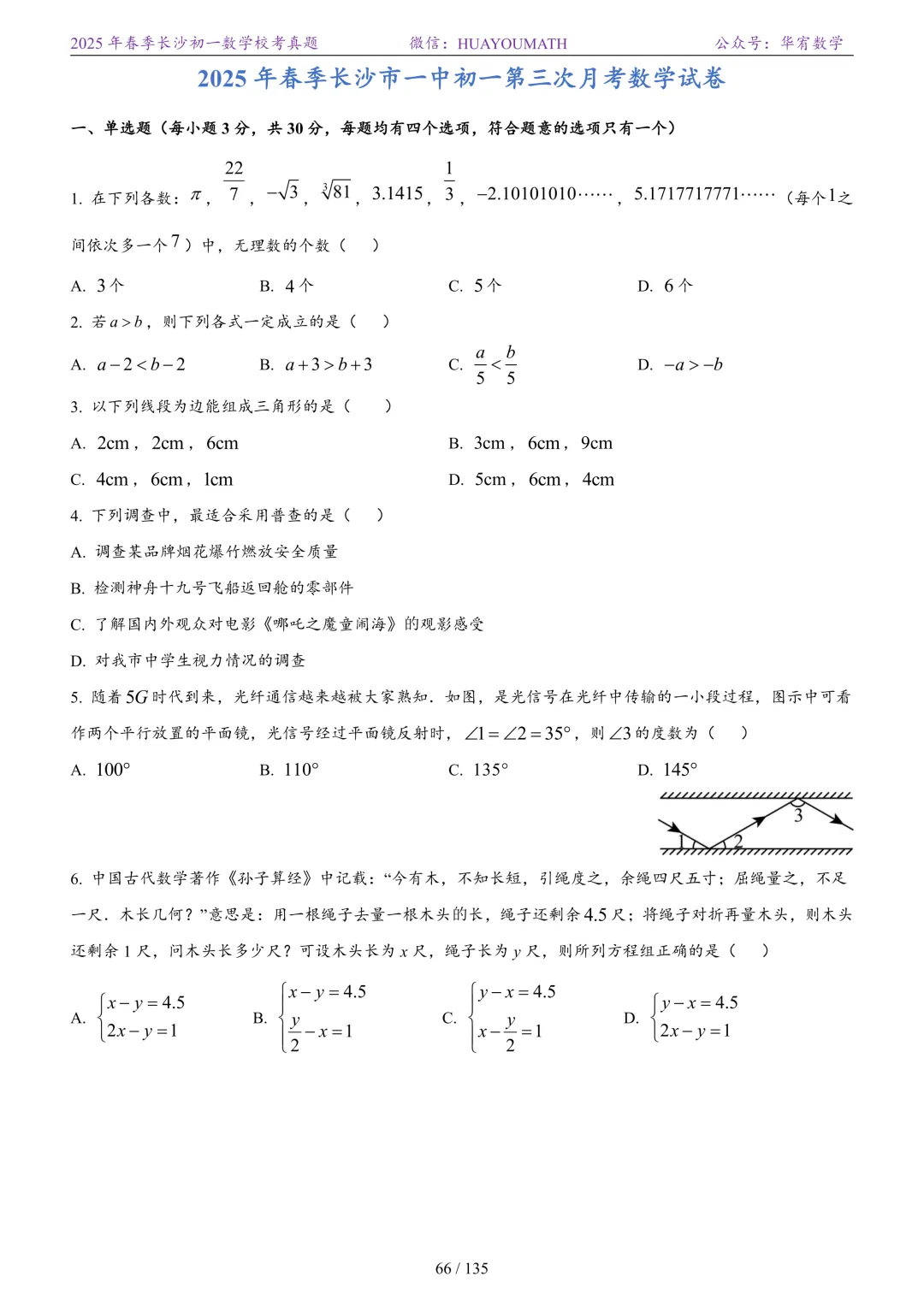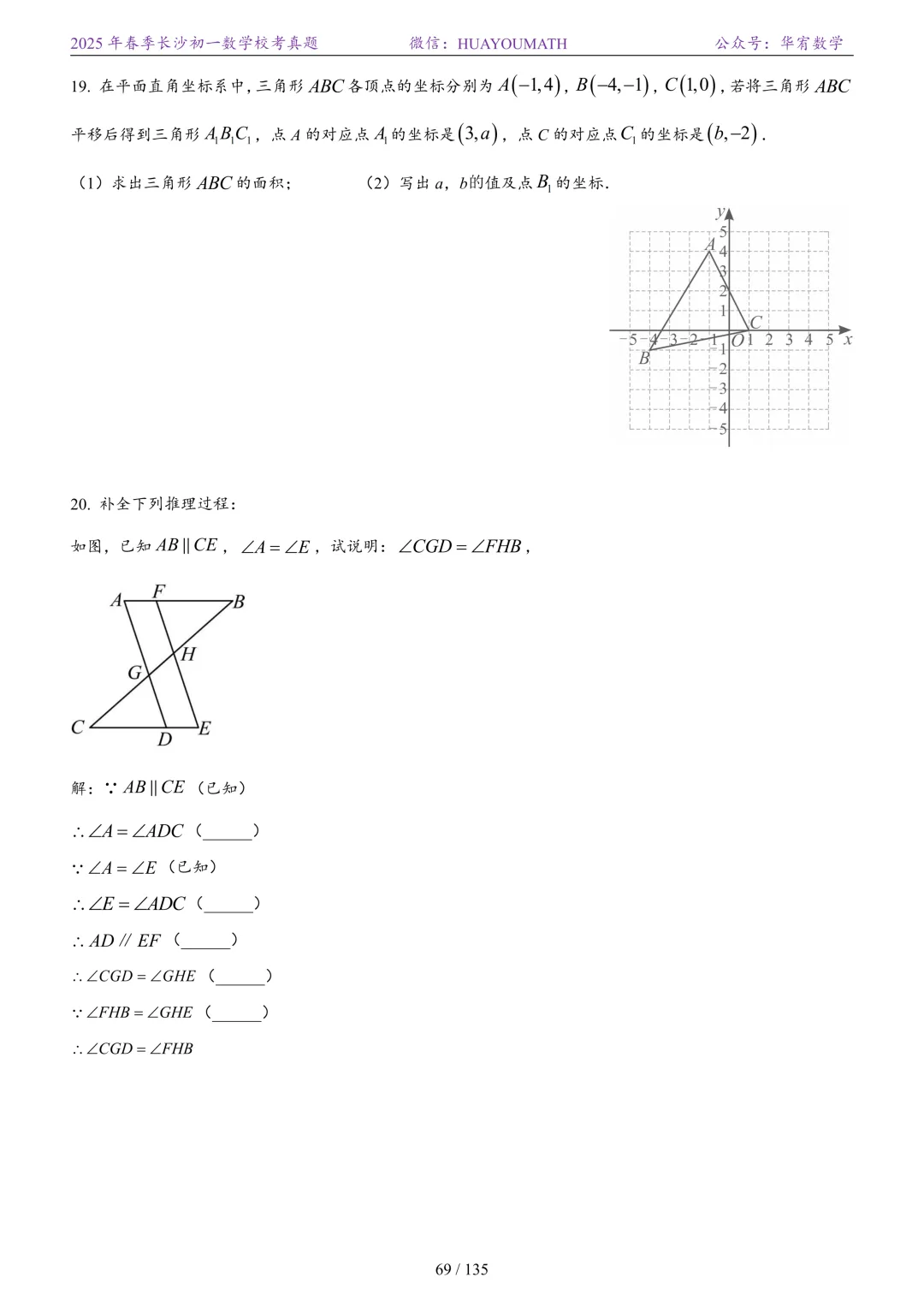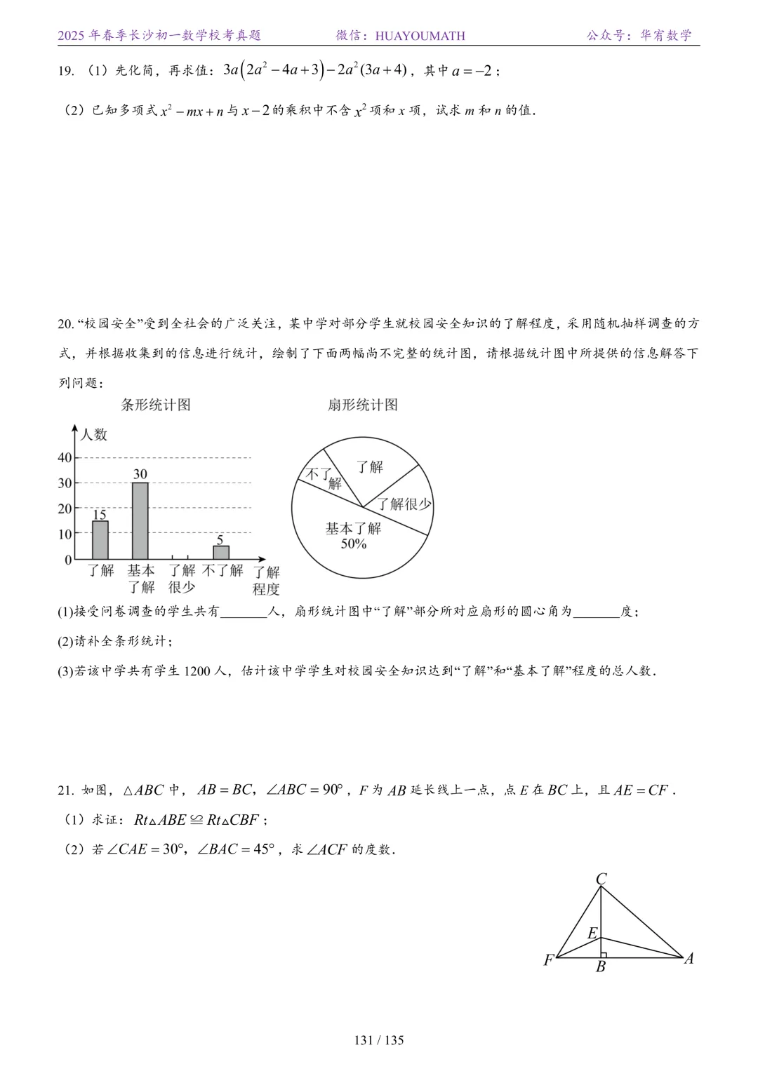 2025年春季长沙初一数学校考真题