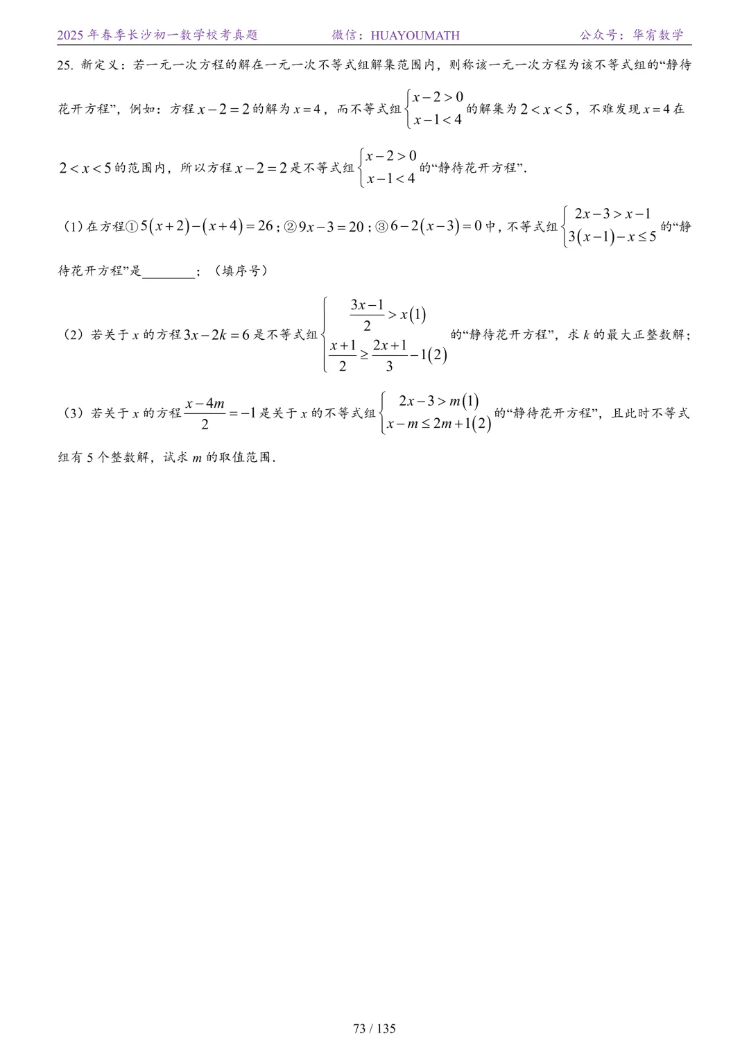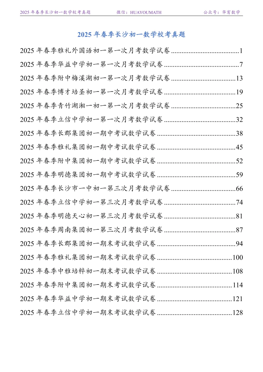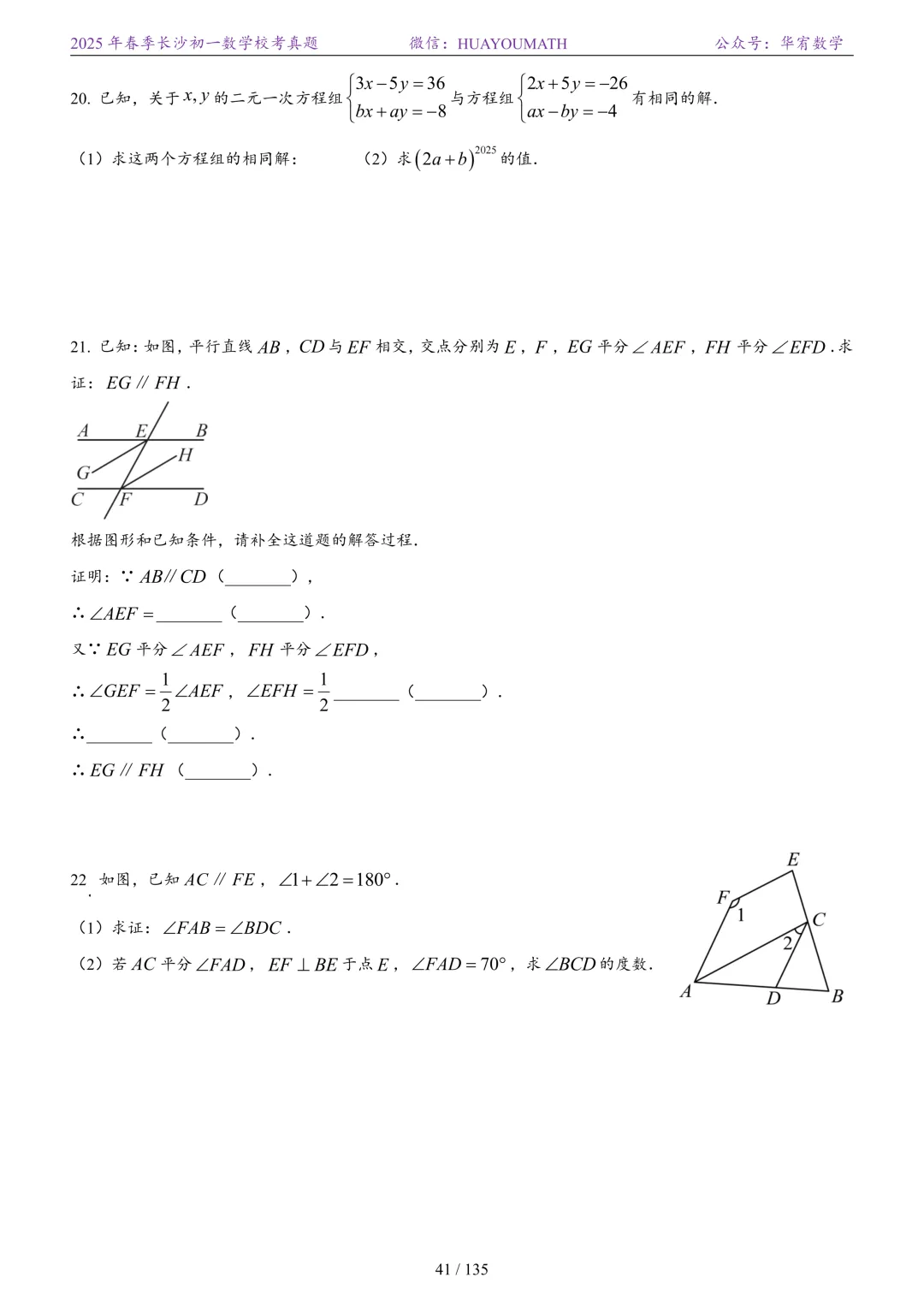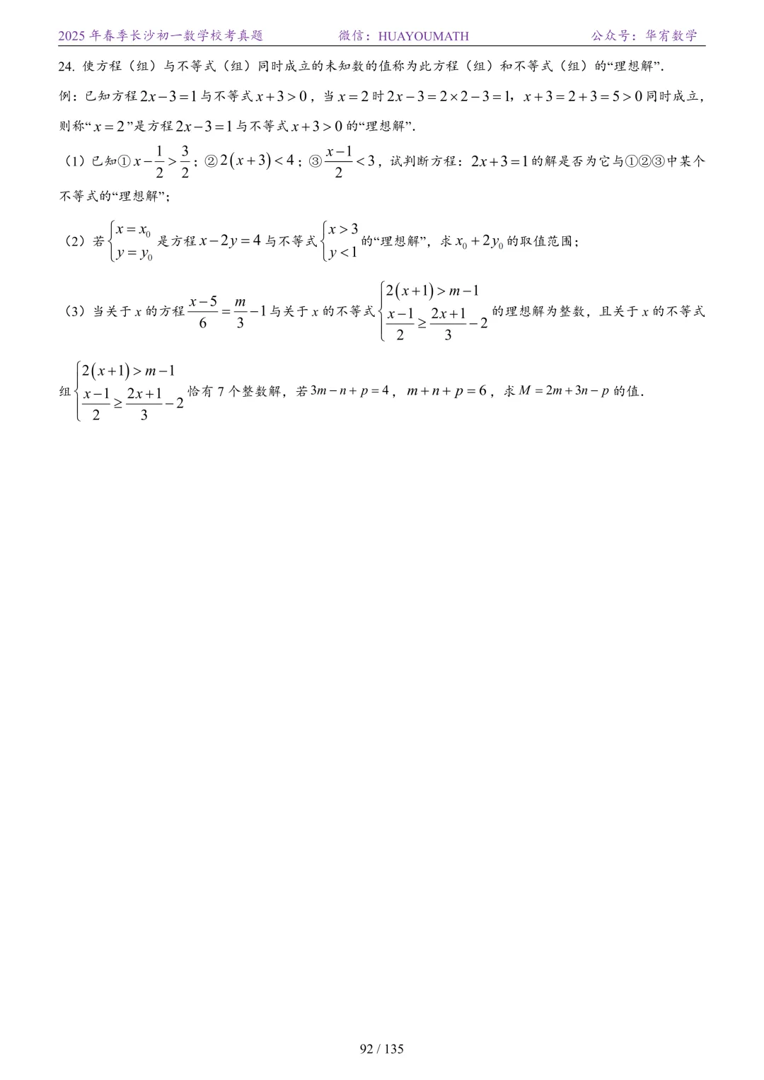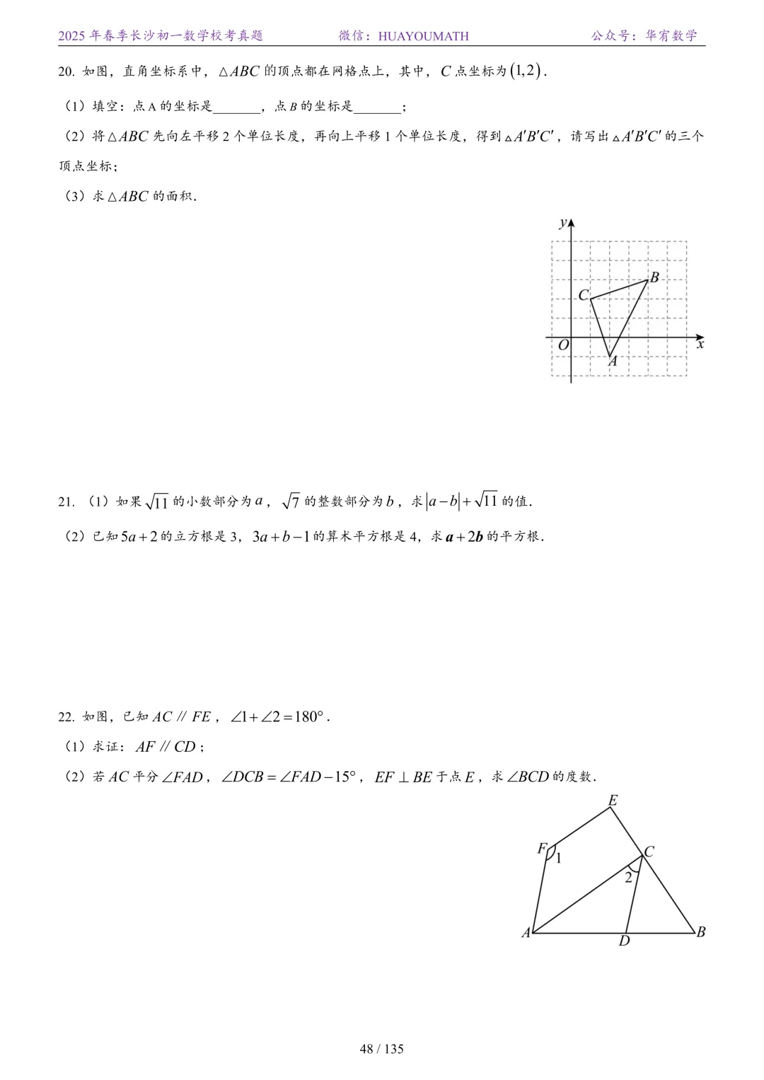2025年春季长沙初一数学校考真题
