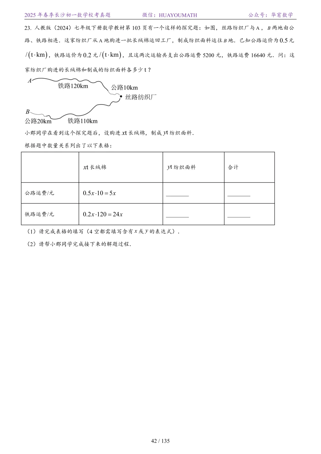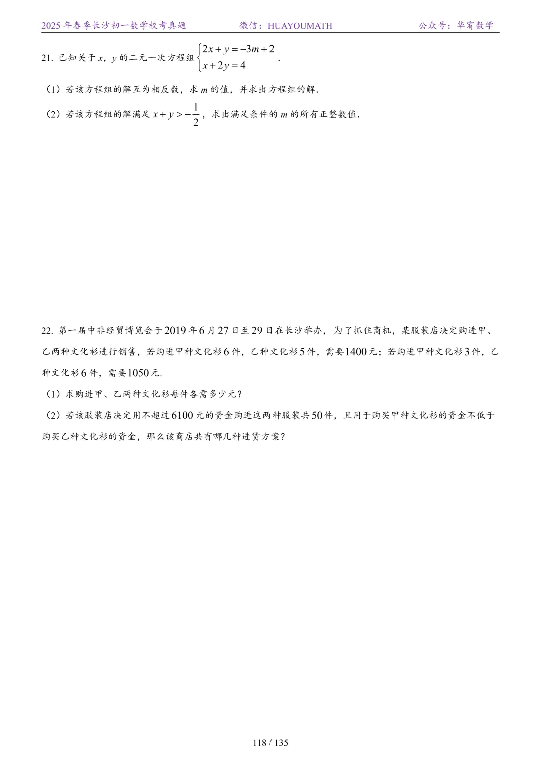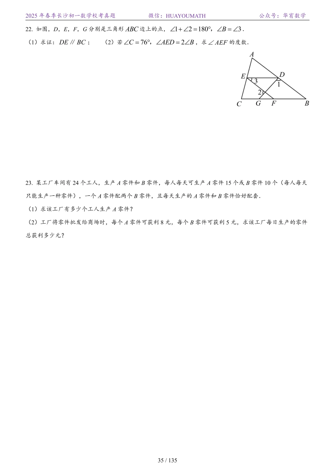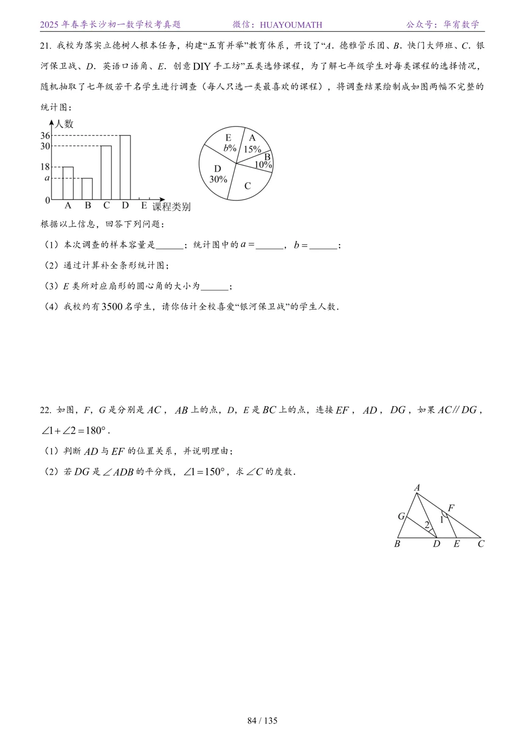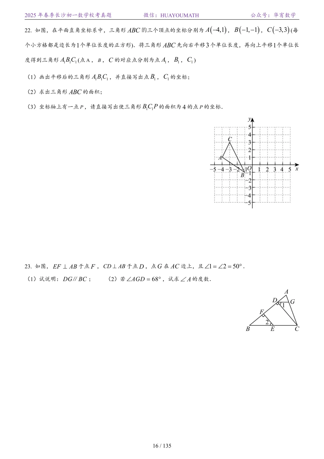 2025年春季长沙初一数学校考真题