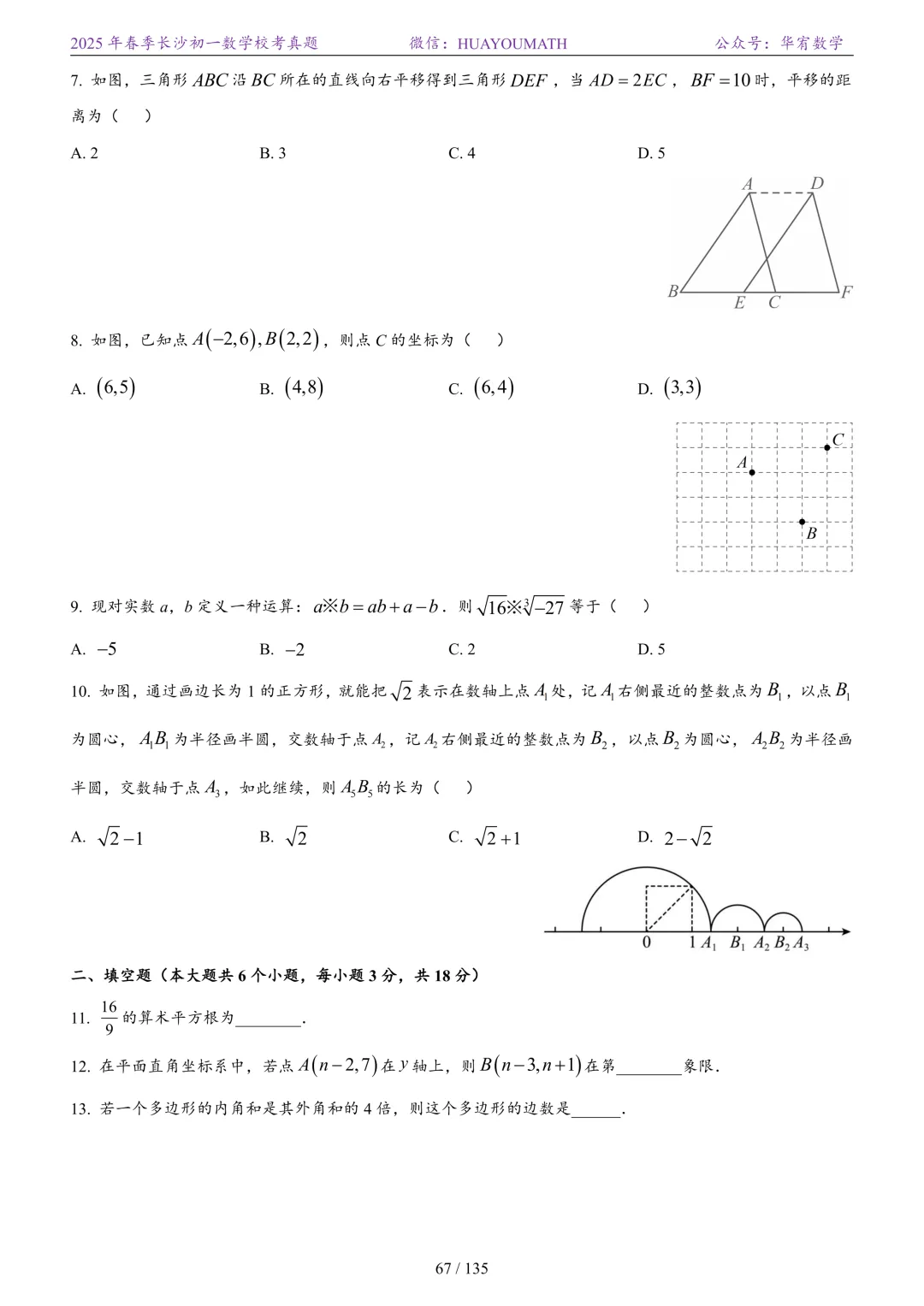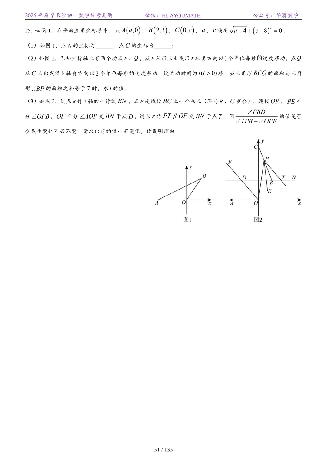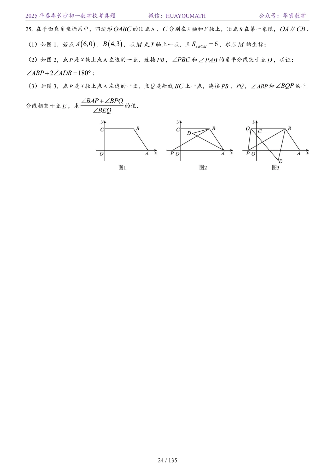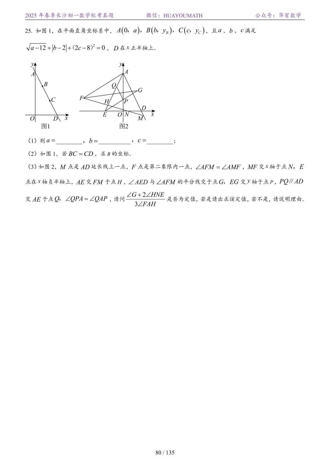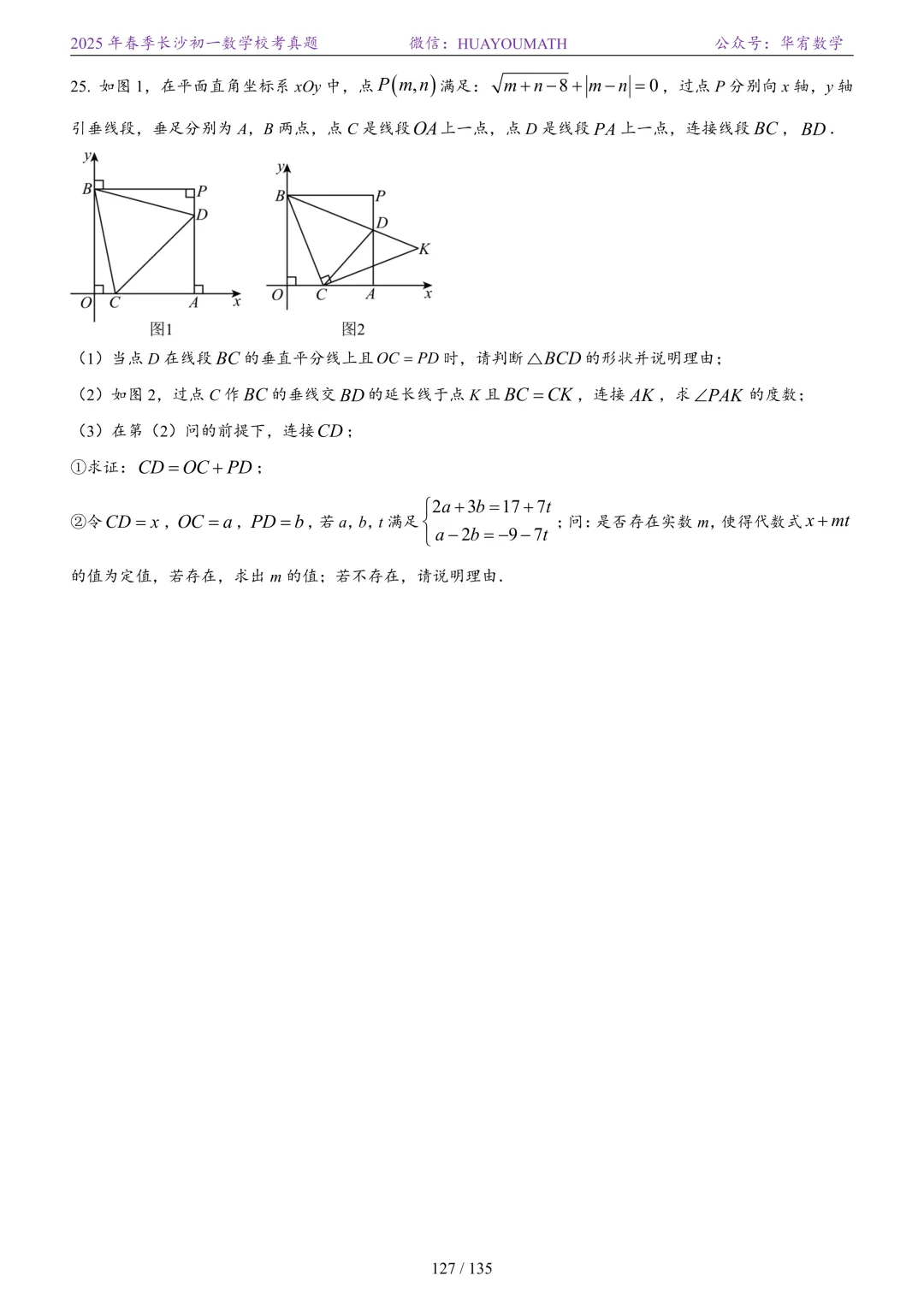 2025年春季长沙初二数学校考真题