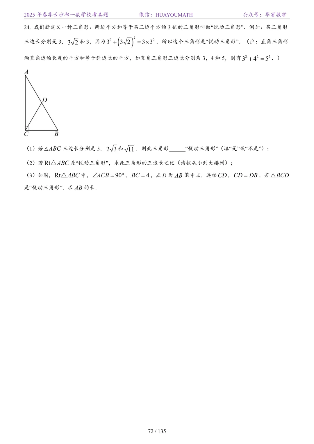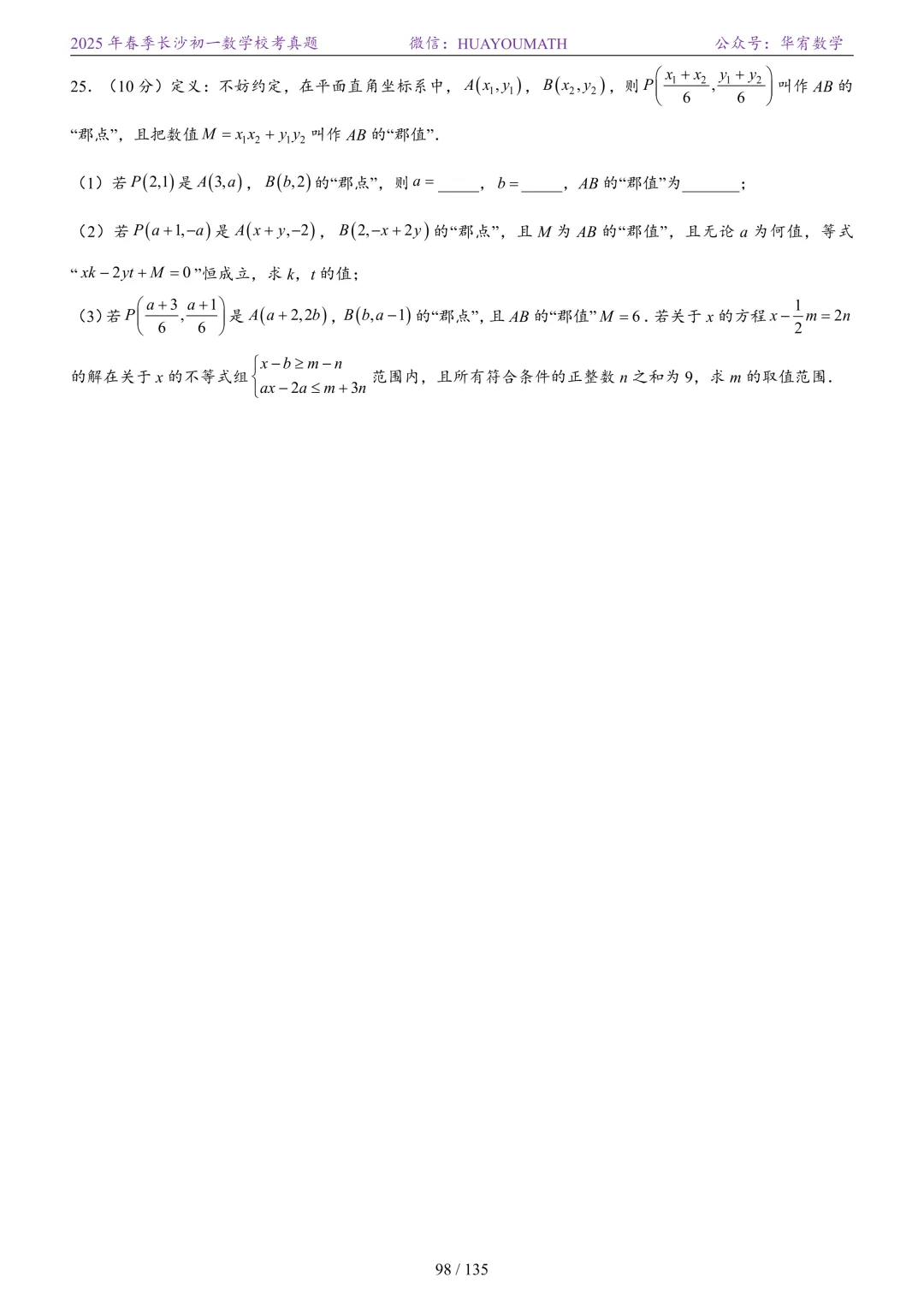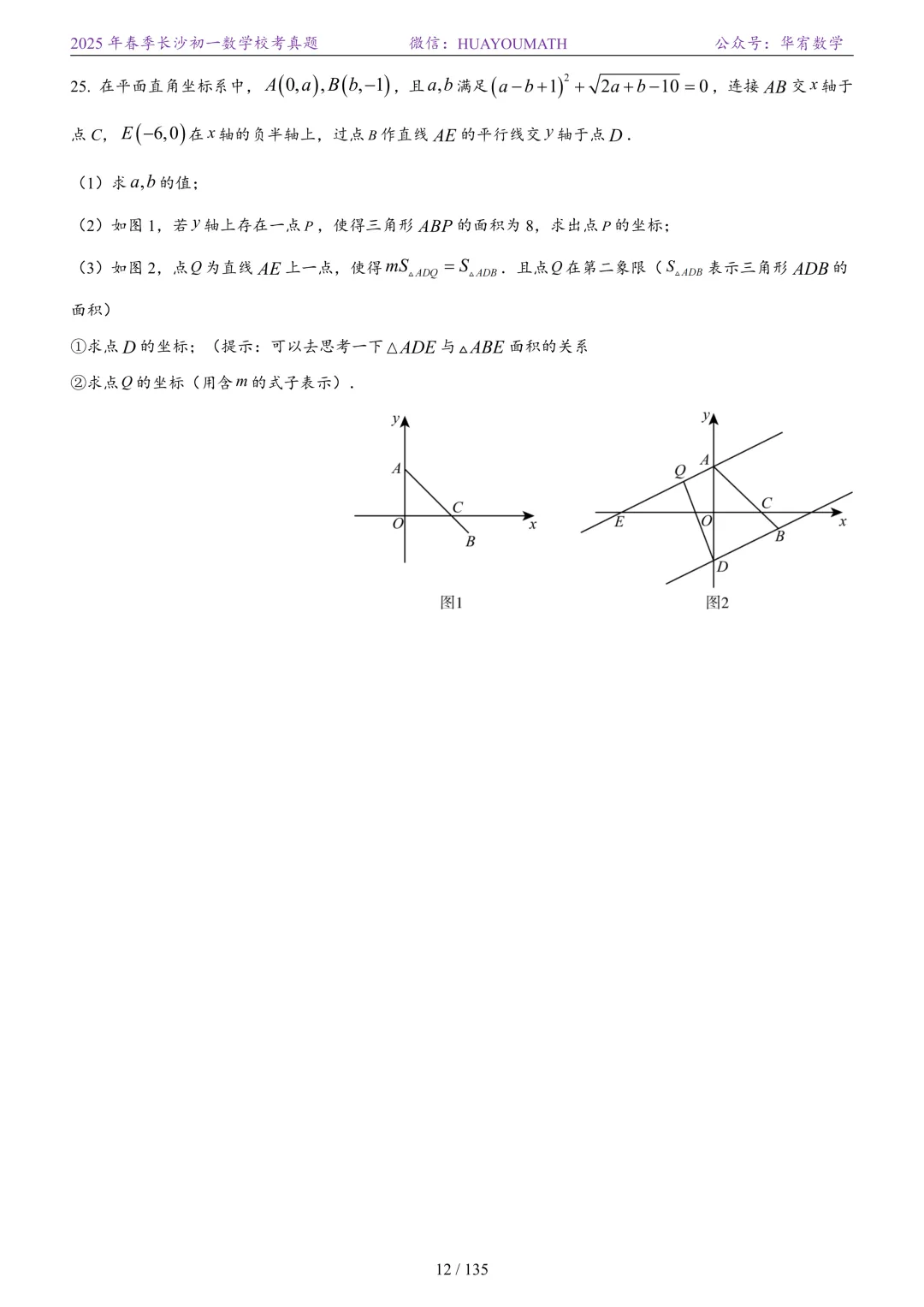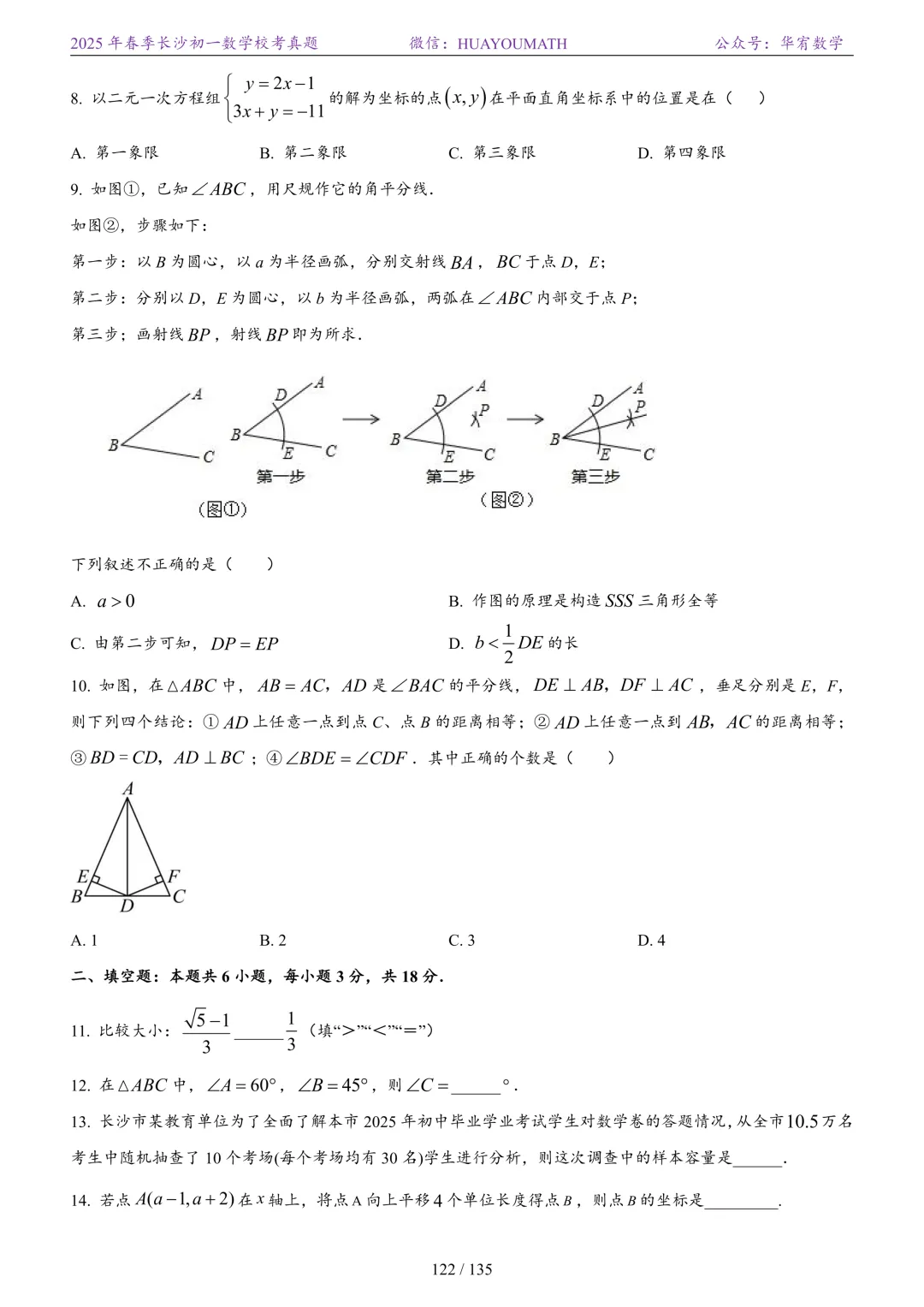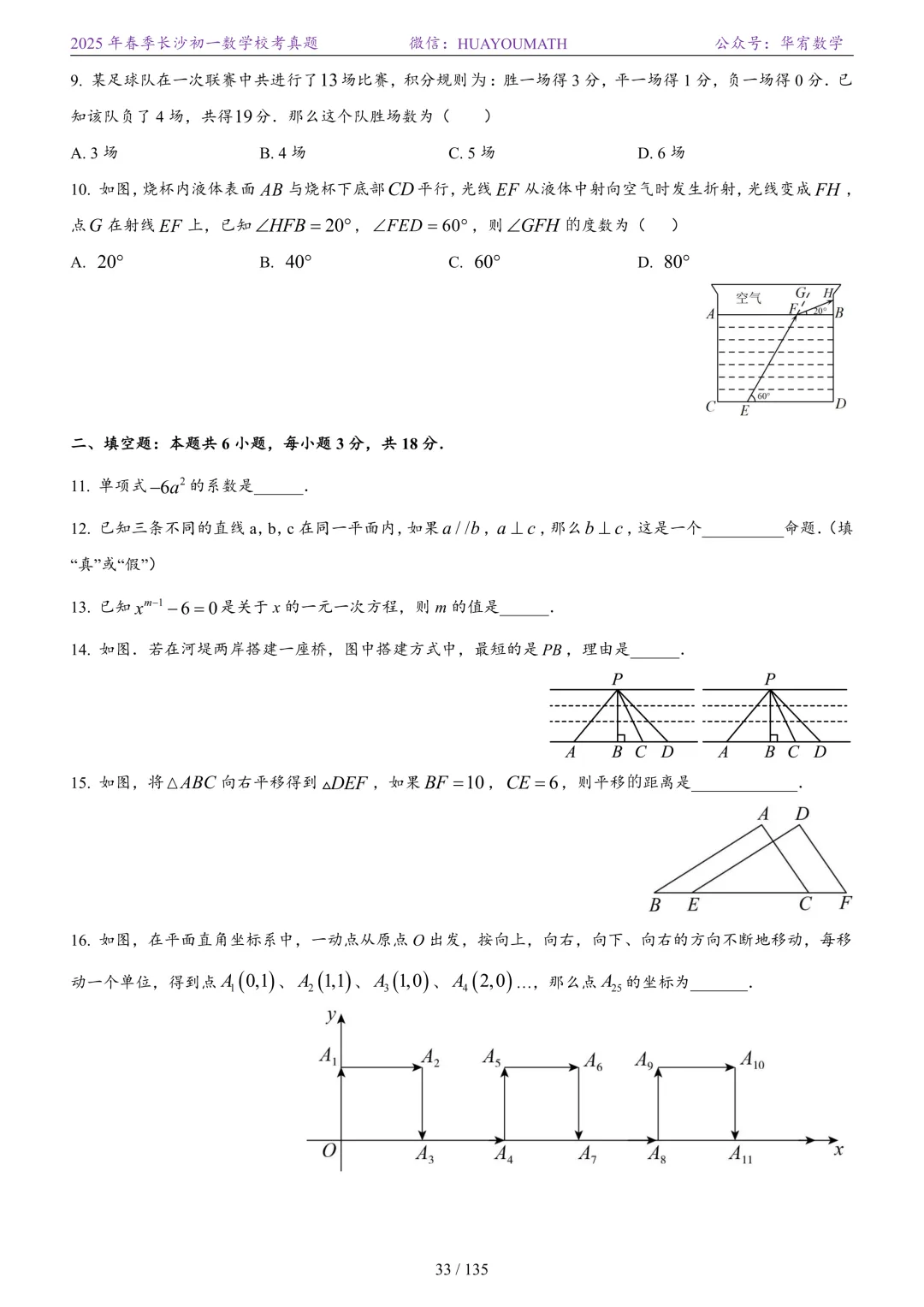 2025年春季长沙初二数学校考真题