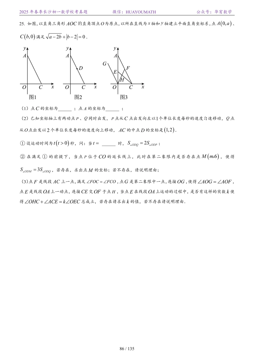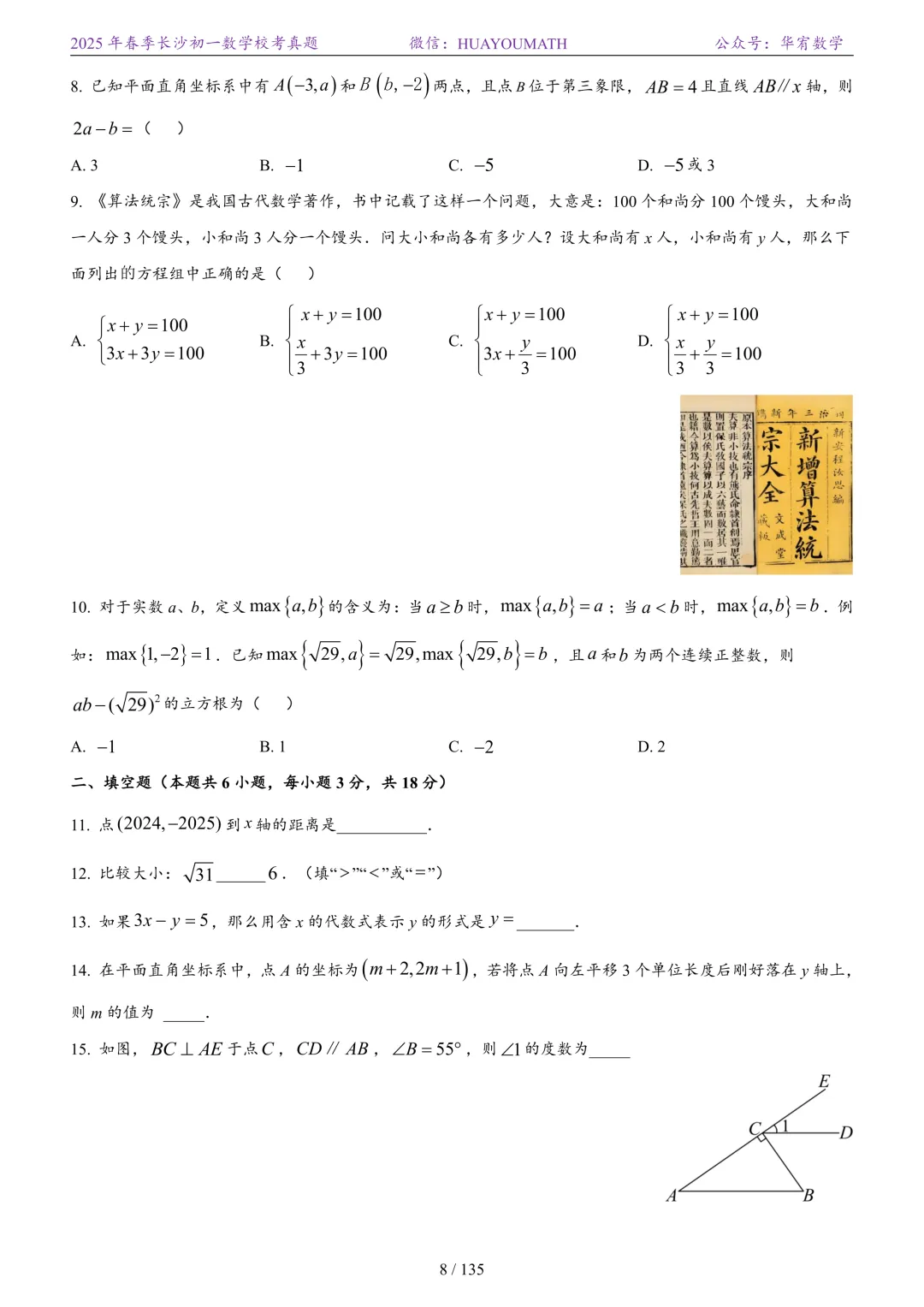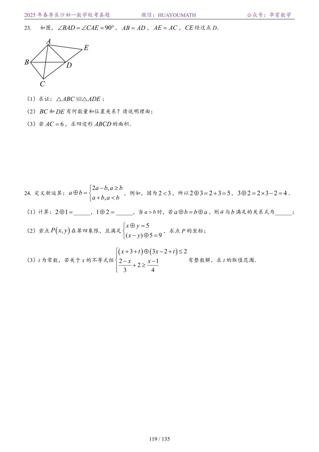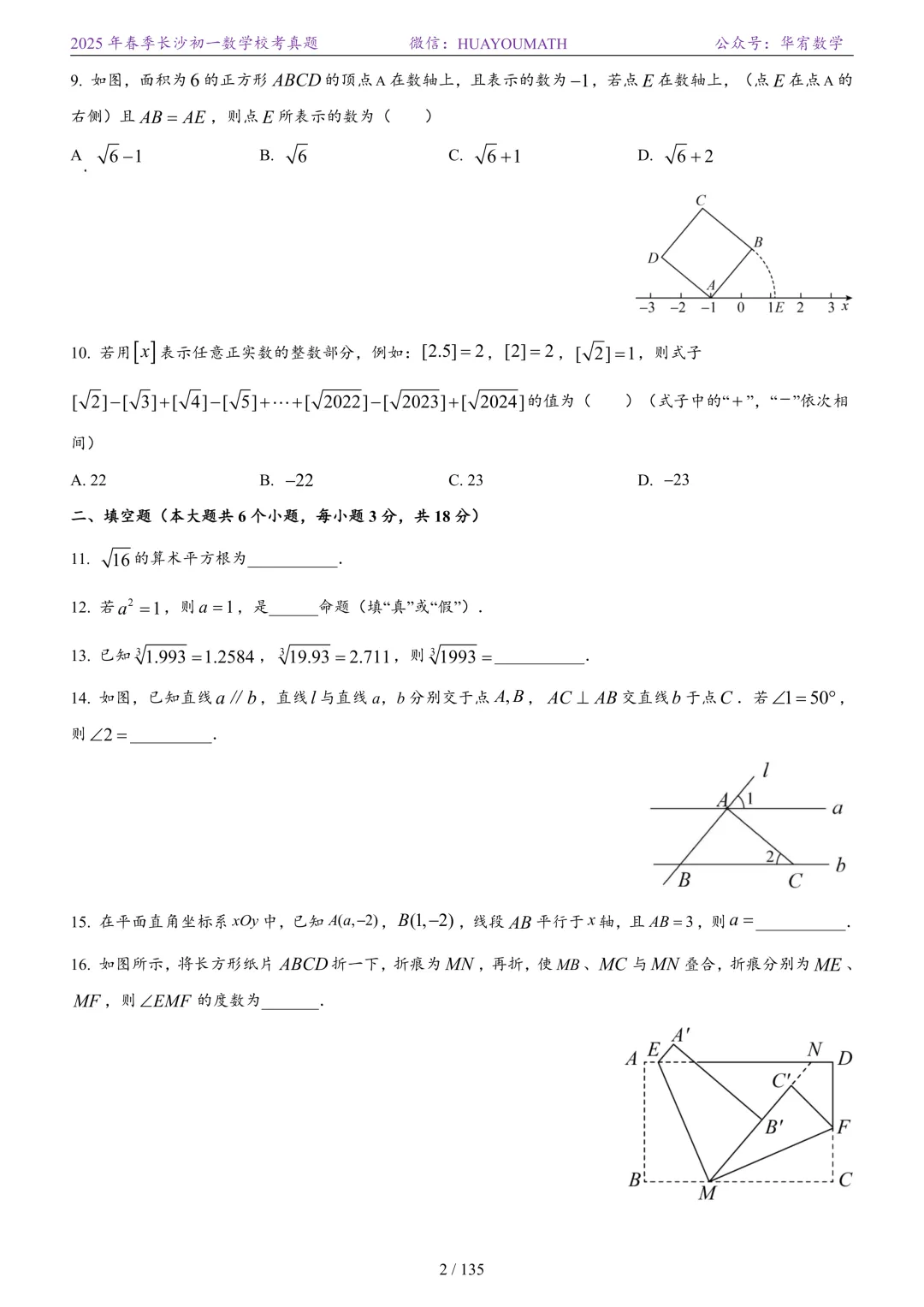 2025年春季长沙初二数学校考真题