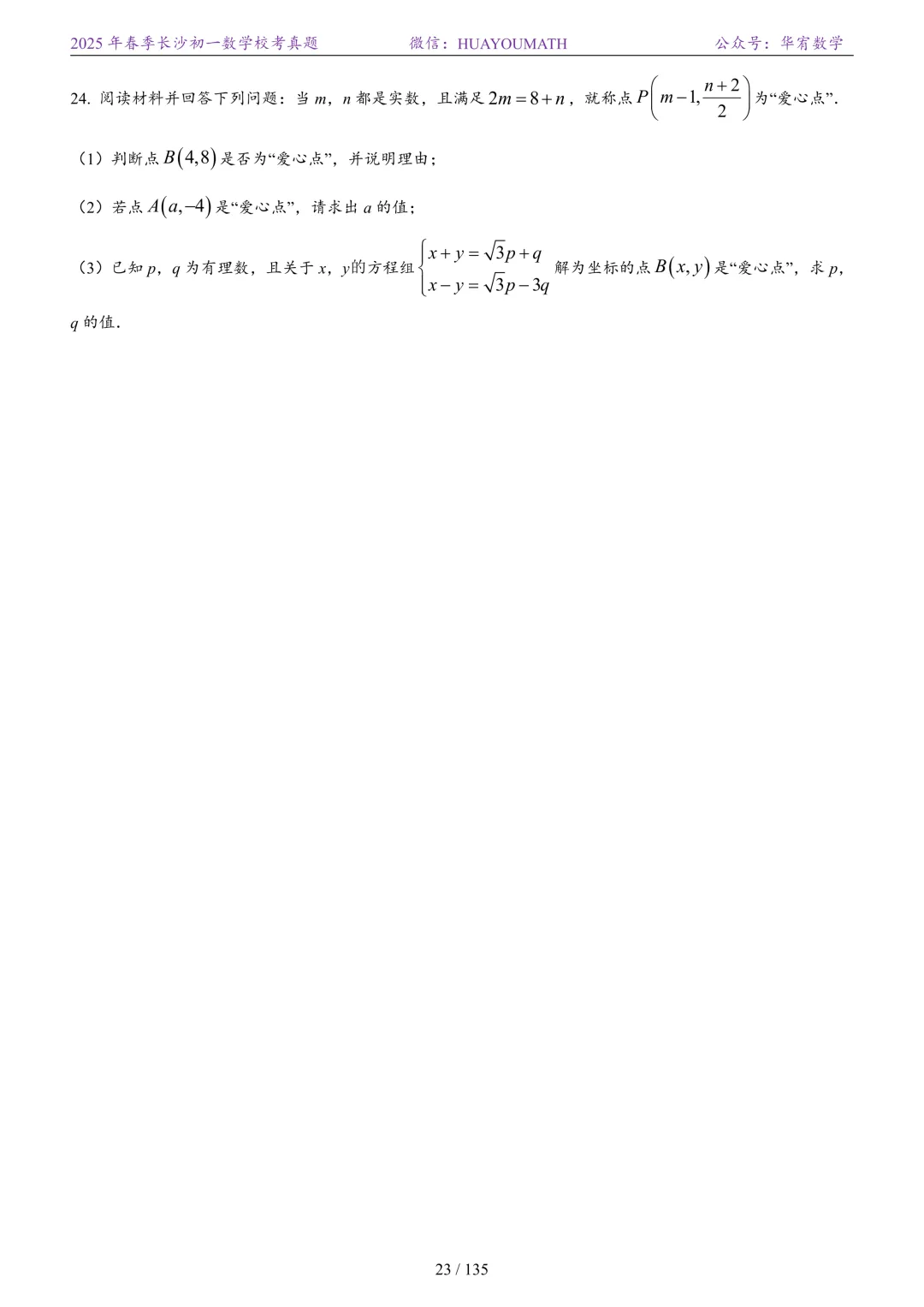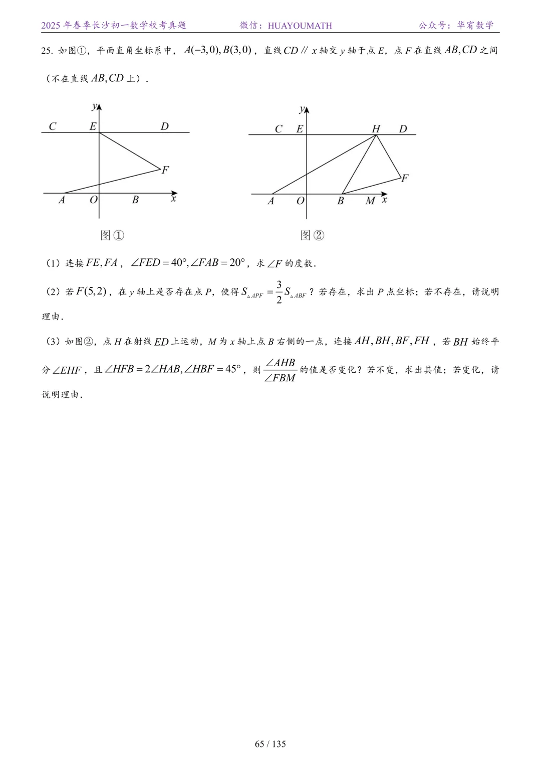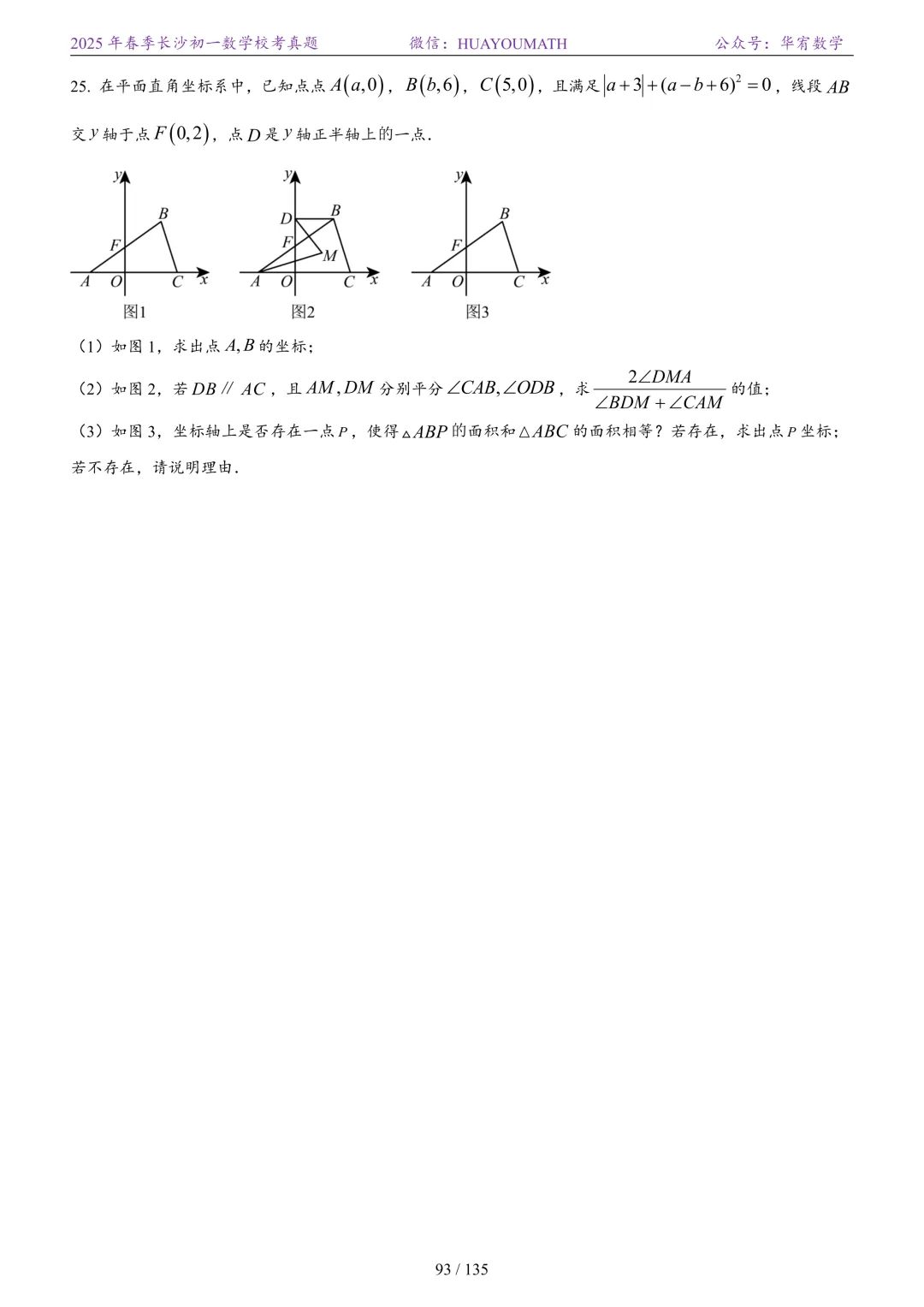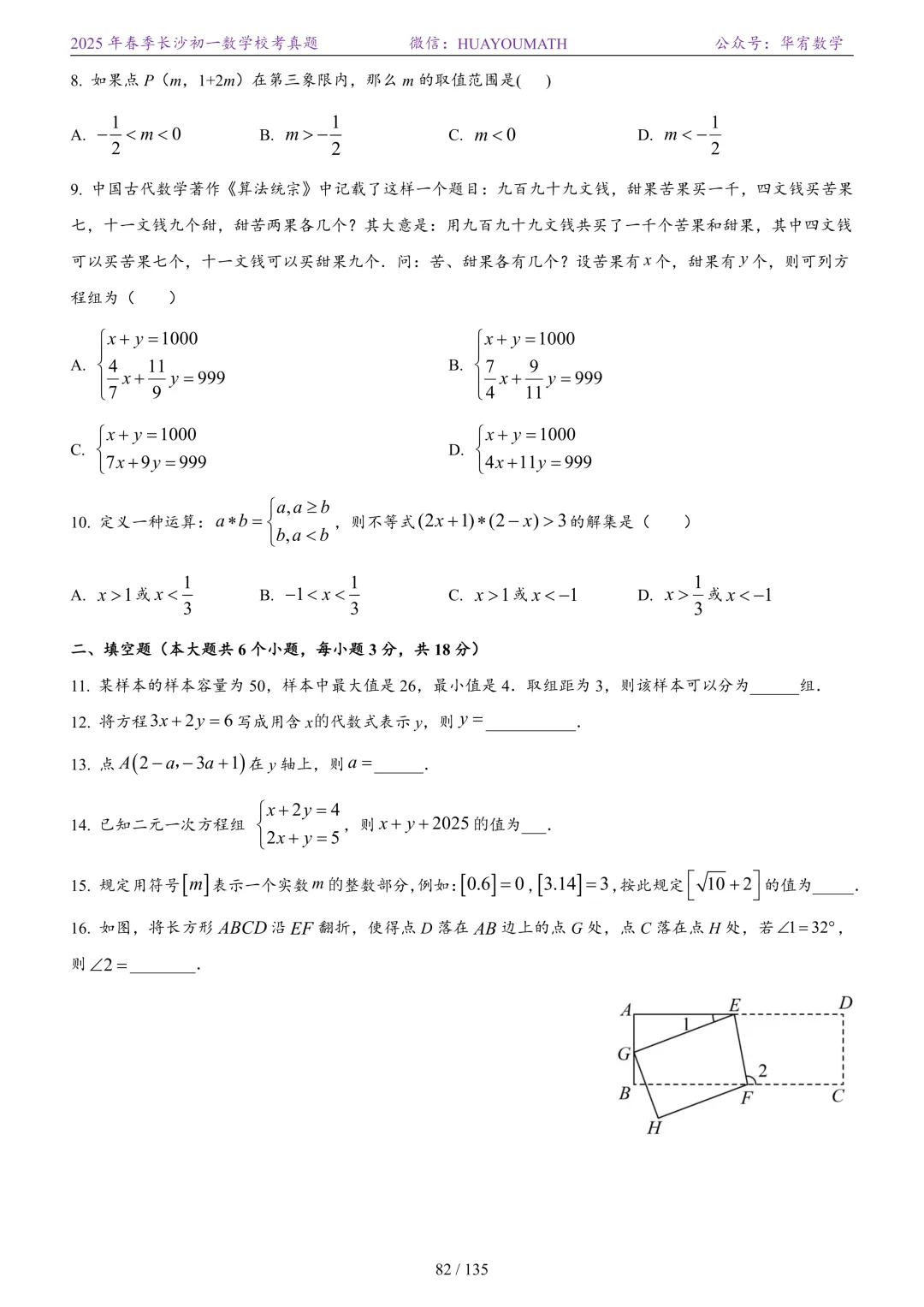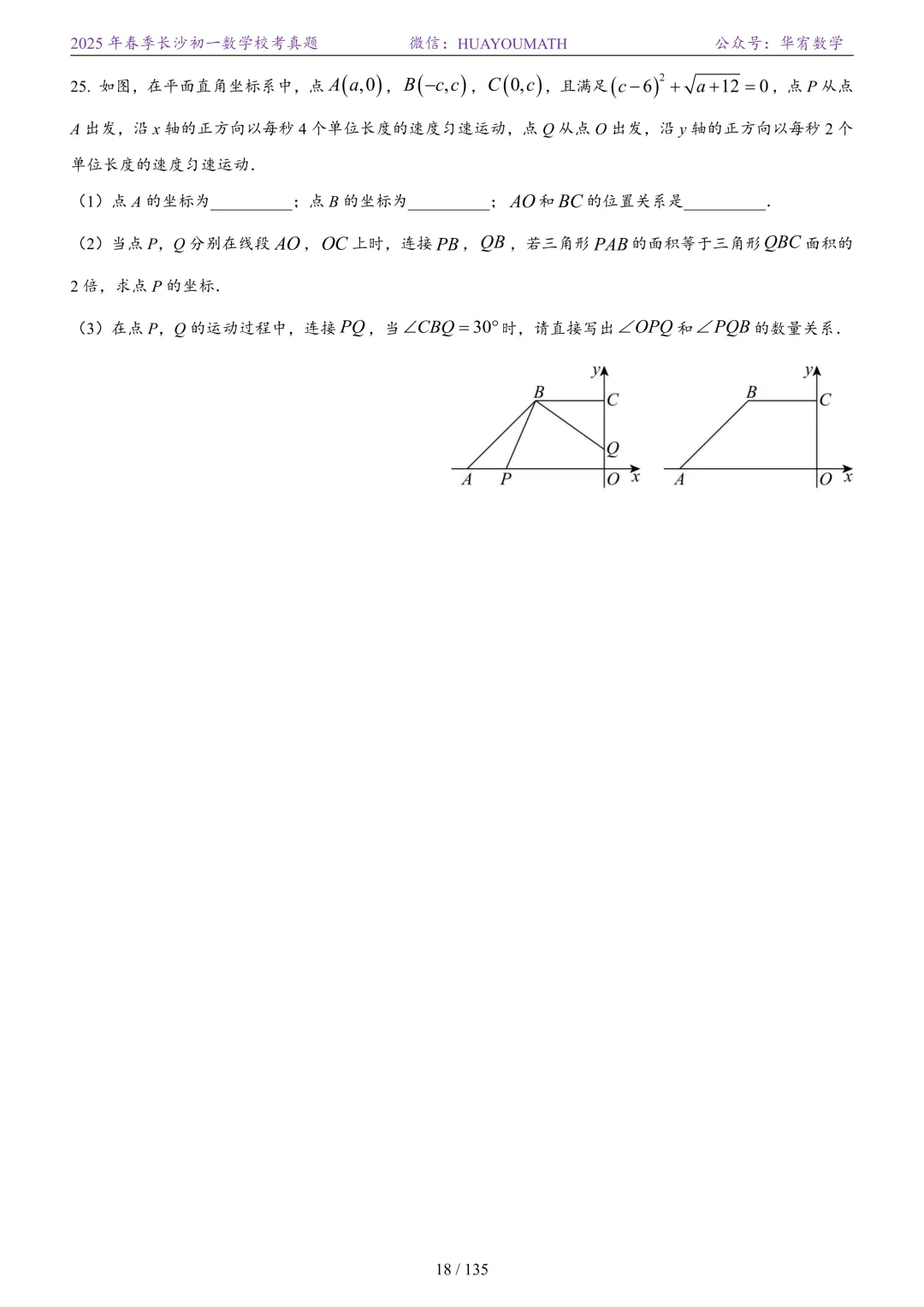 2025年春季长沙初二数学校考真题