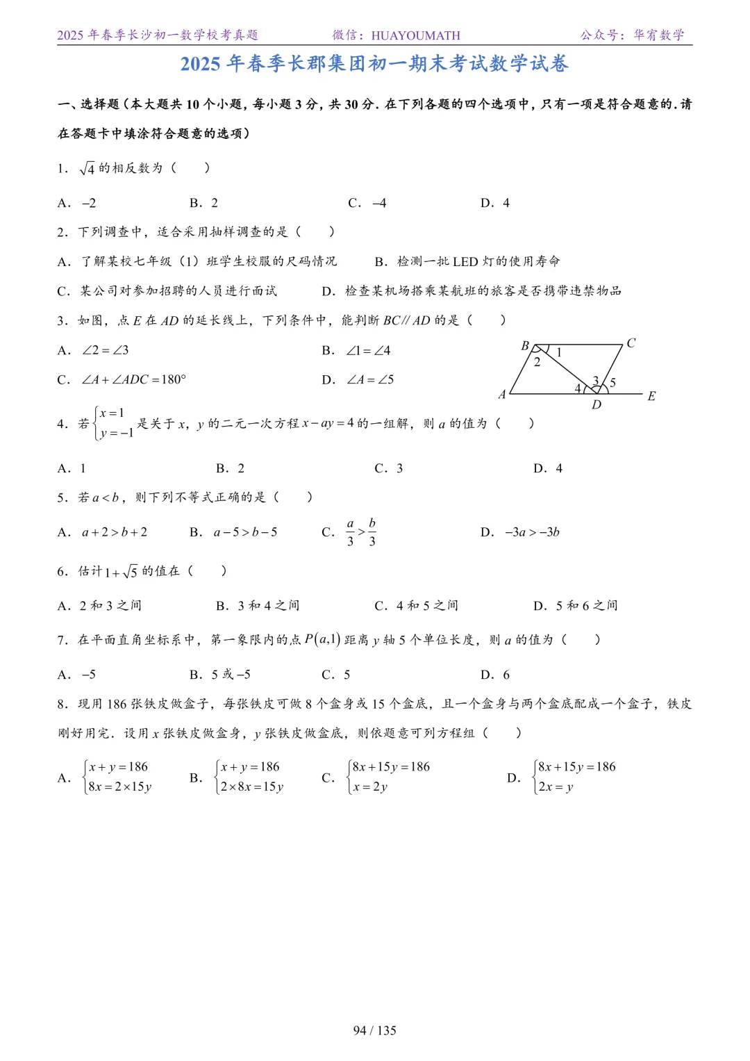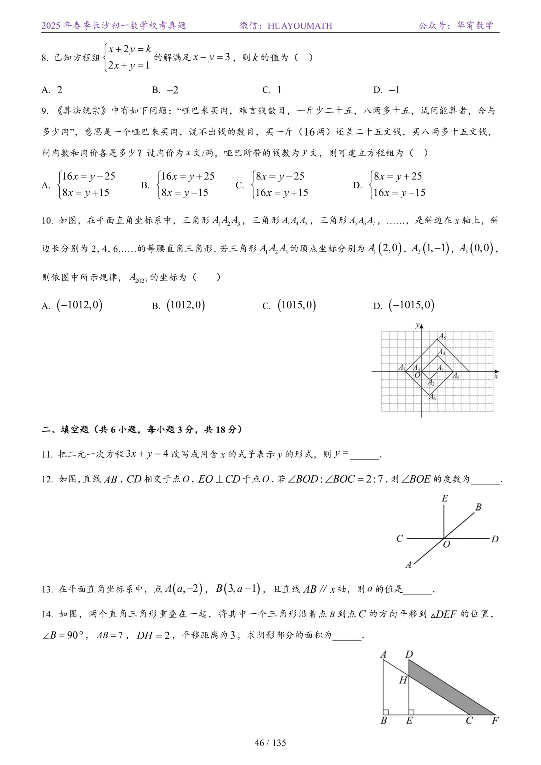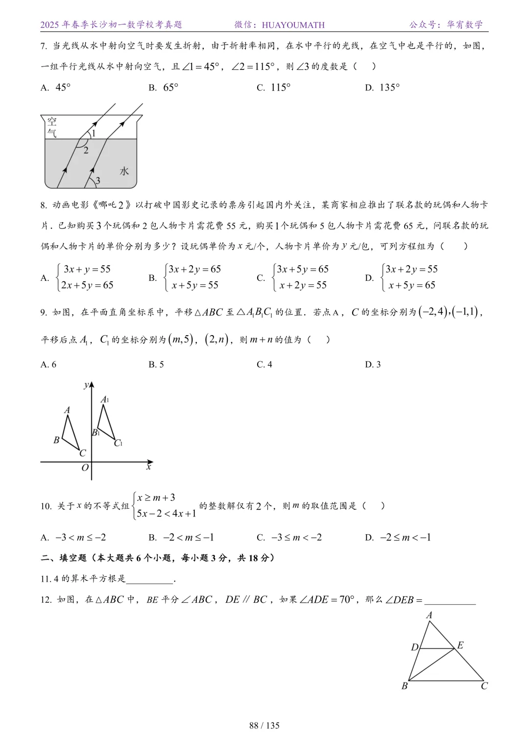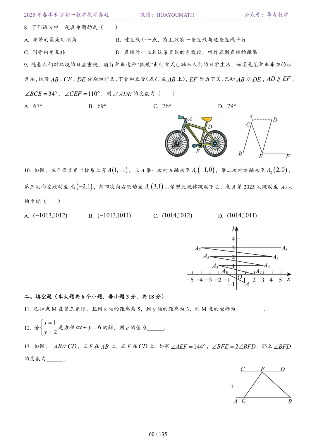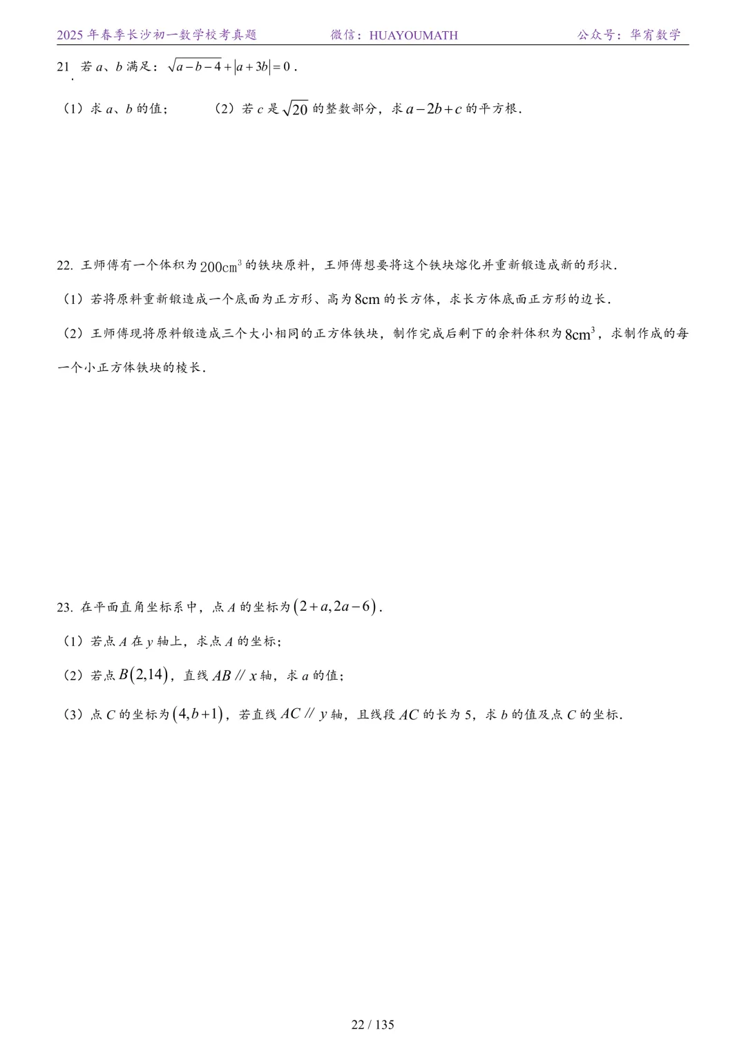 2025年春季长沙初二数学校考真题
