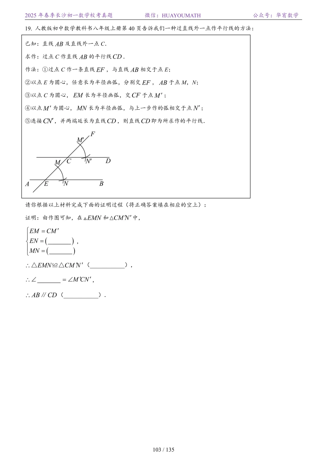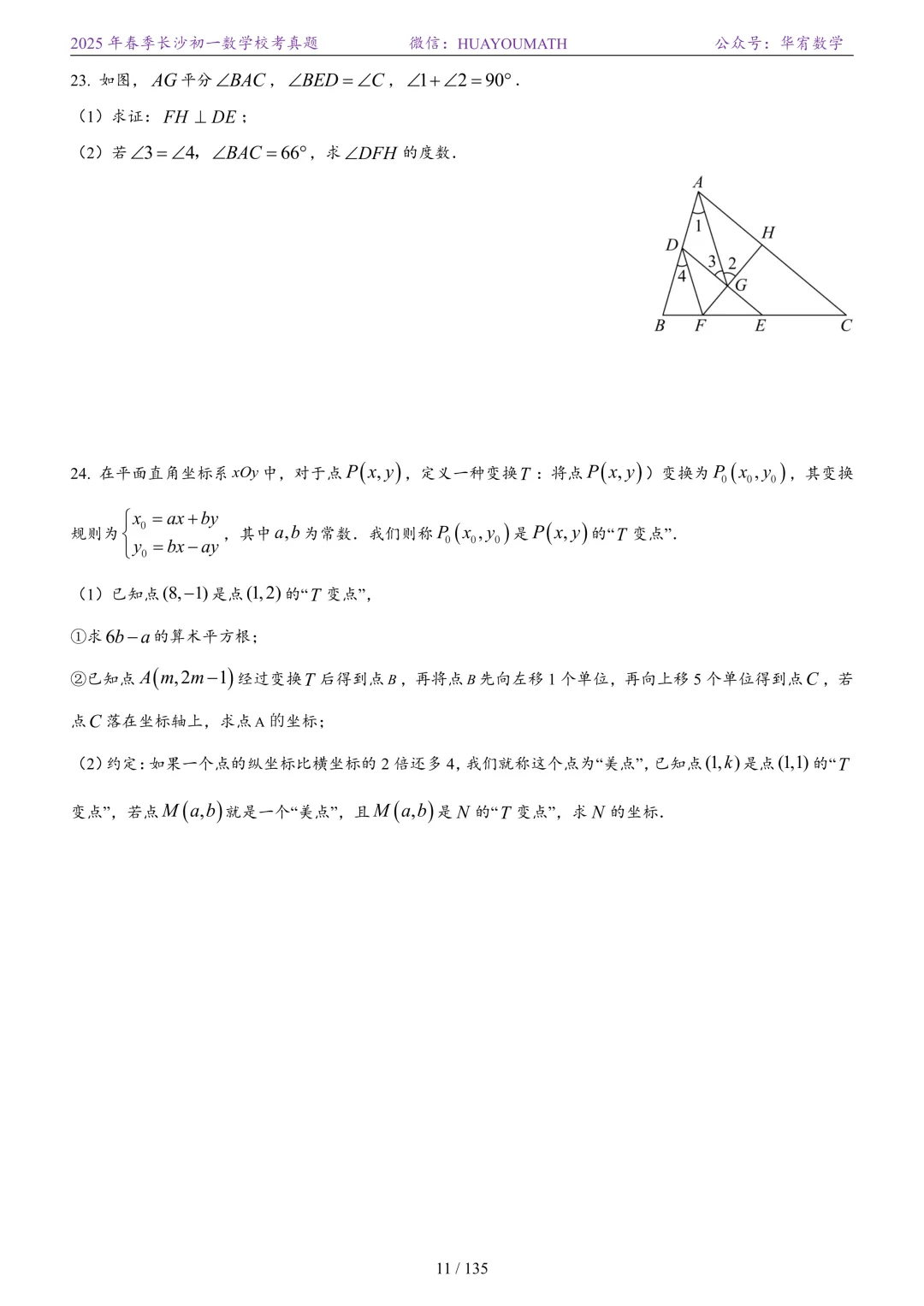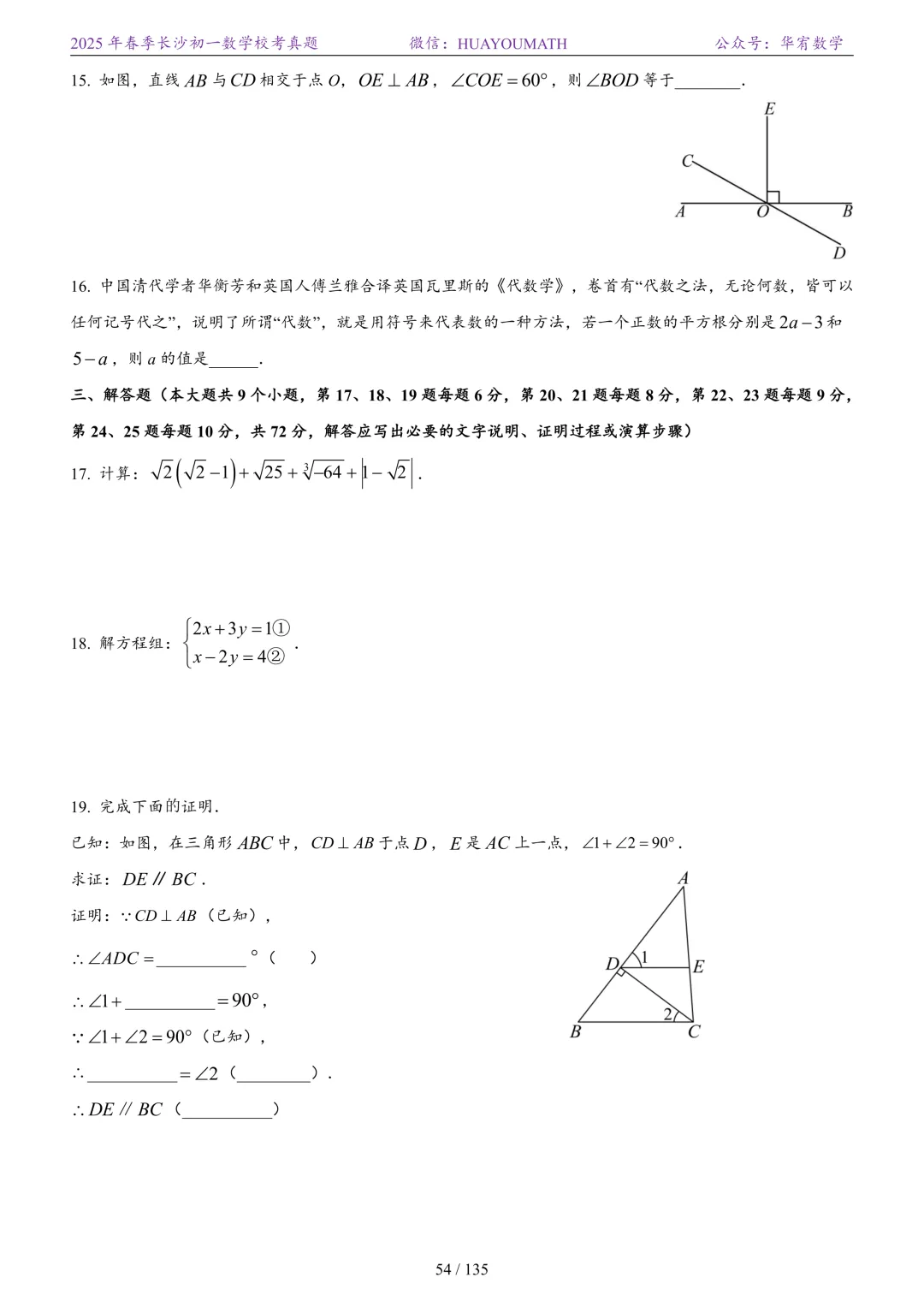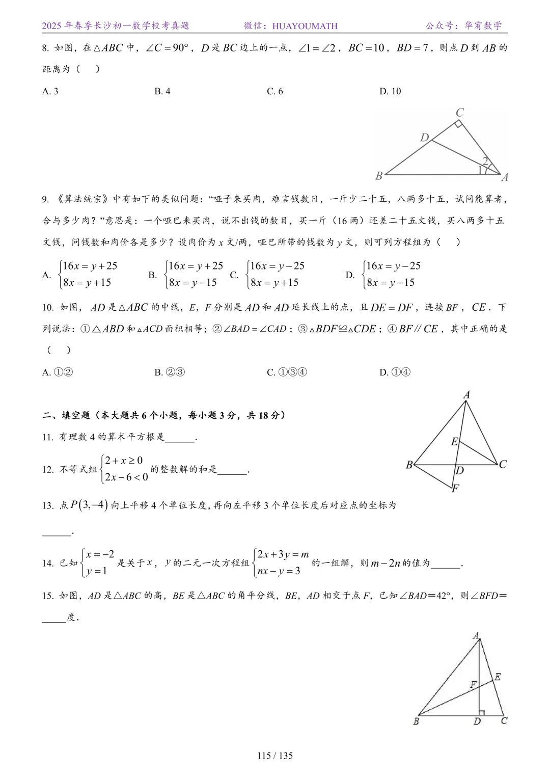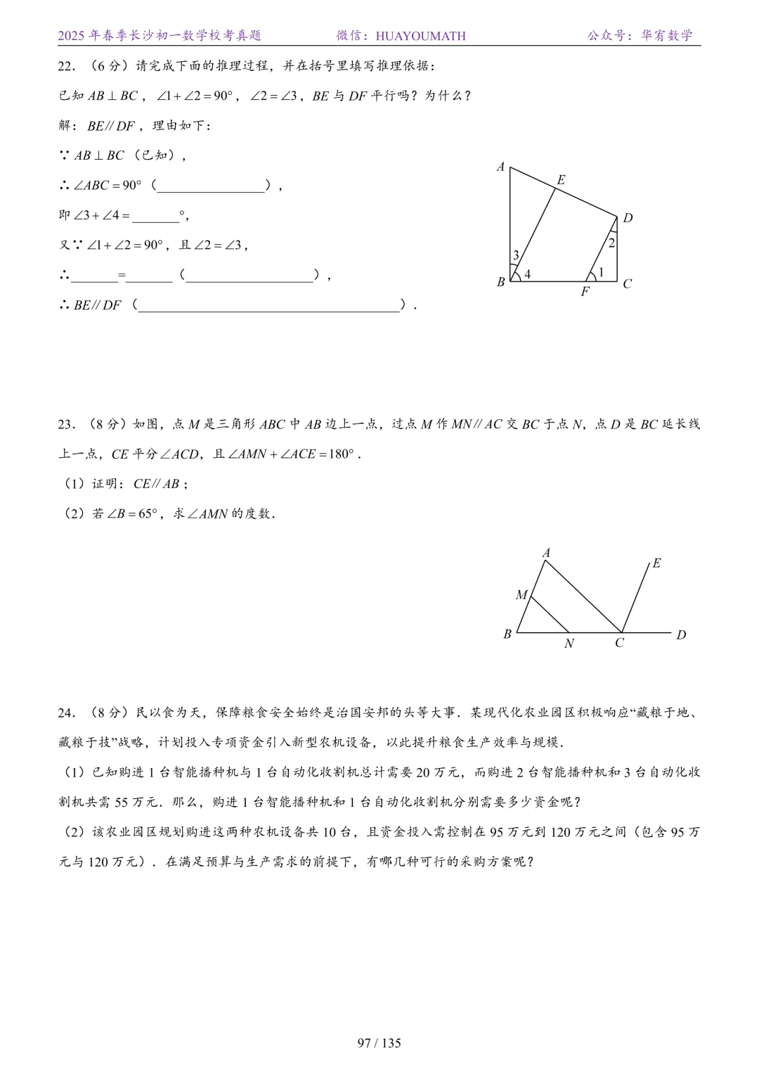 2025年春季长沙初二数学校考真题