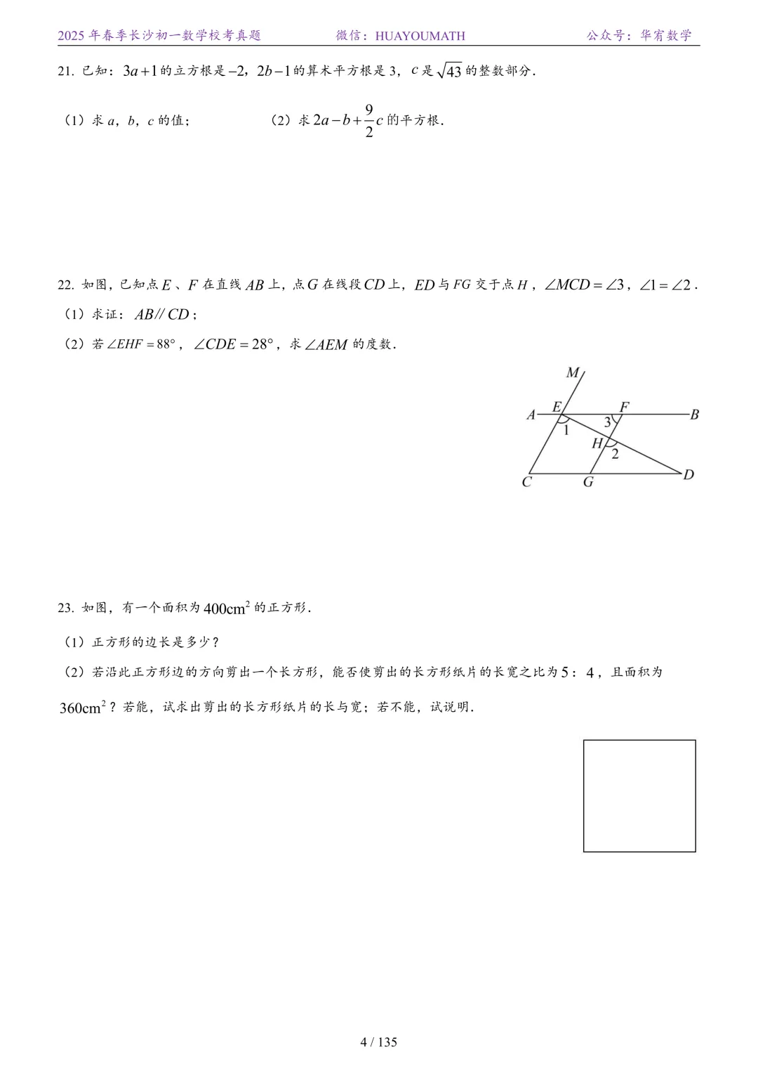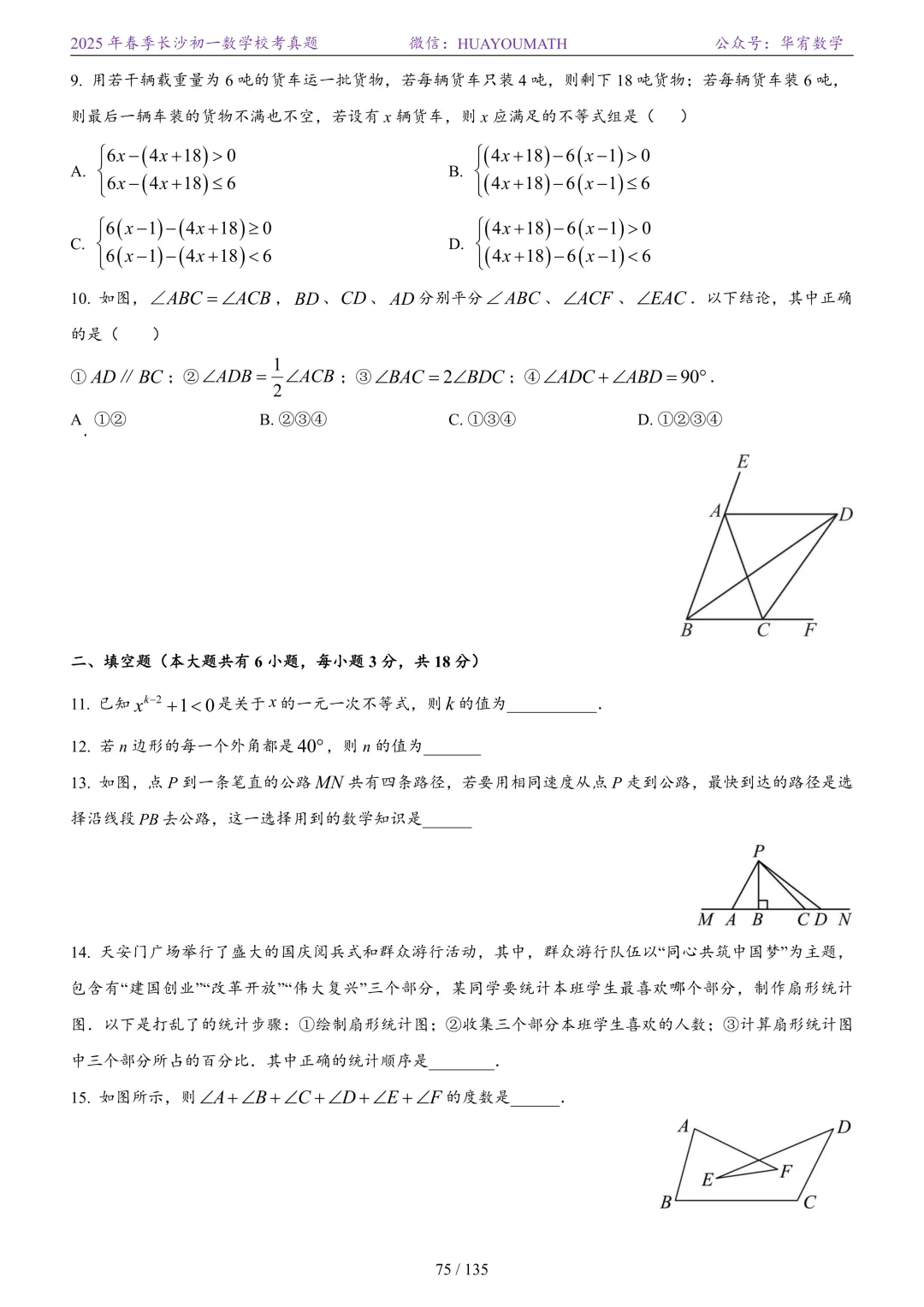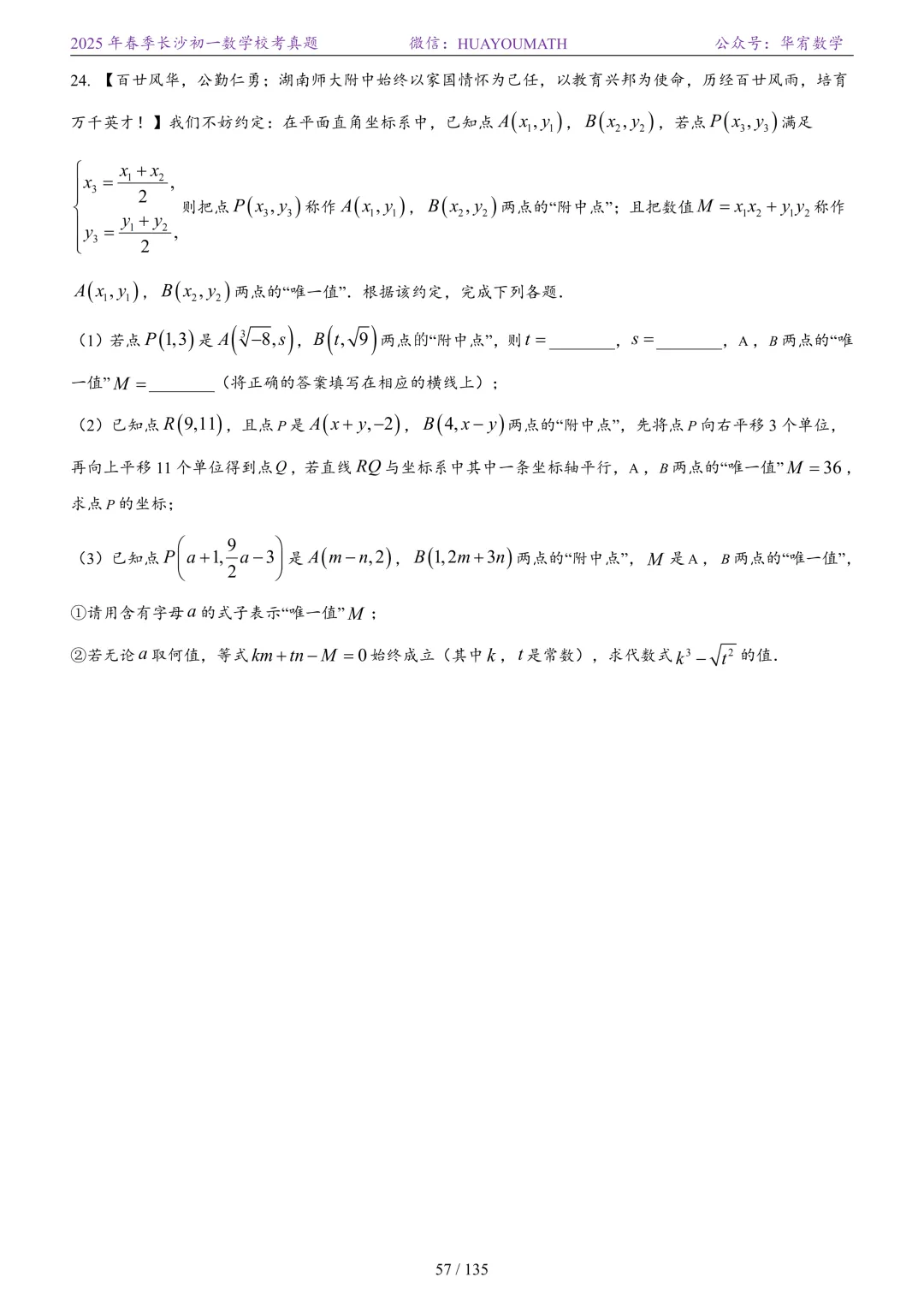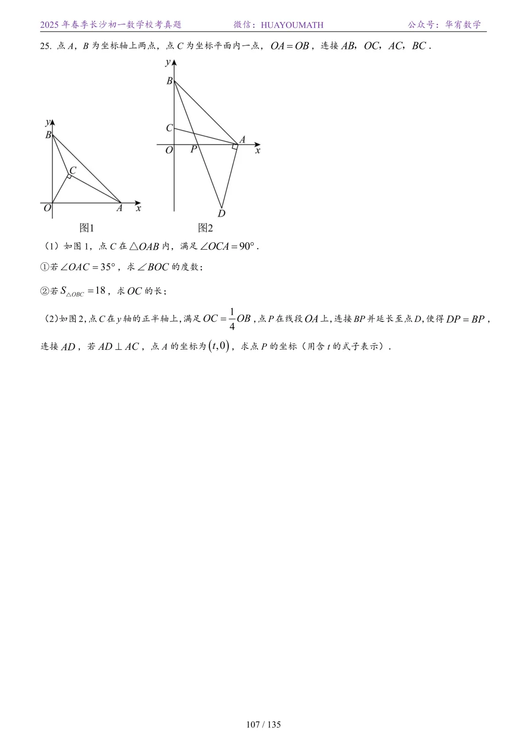 2025年春季长沙初二数学校考真题