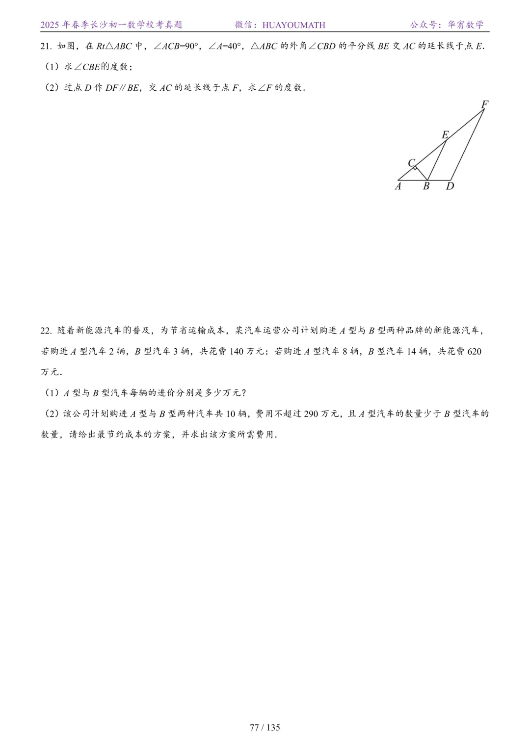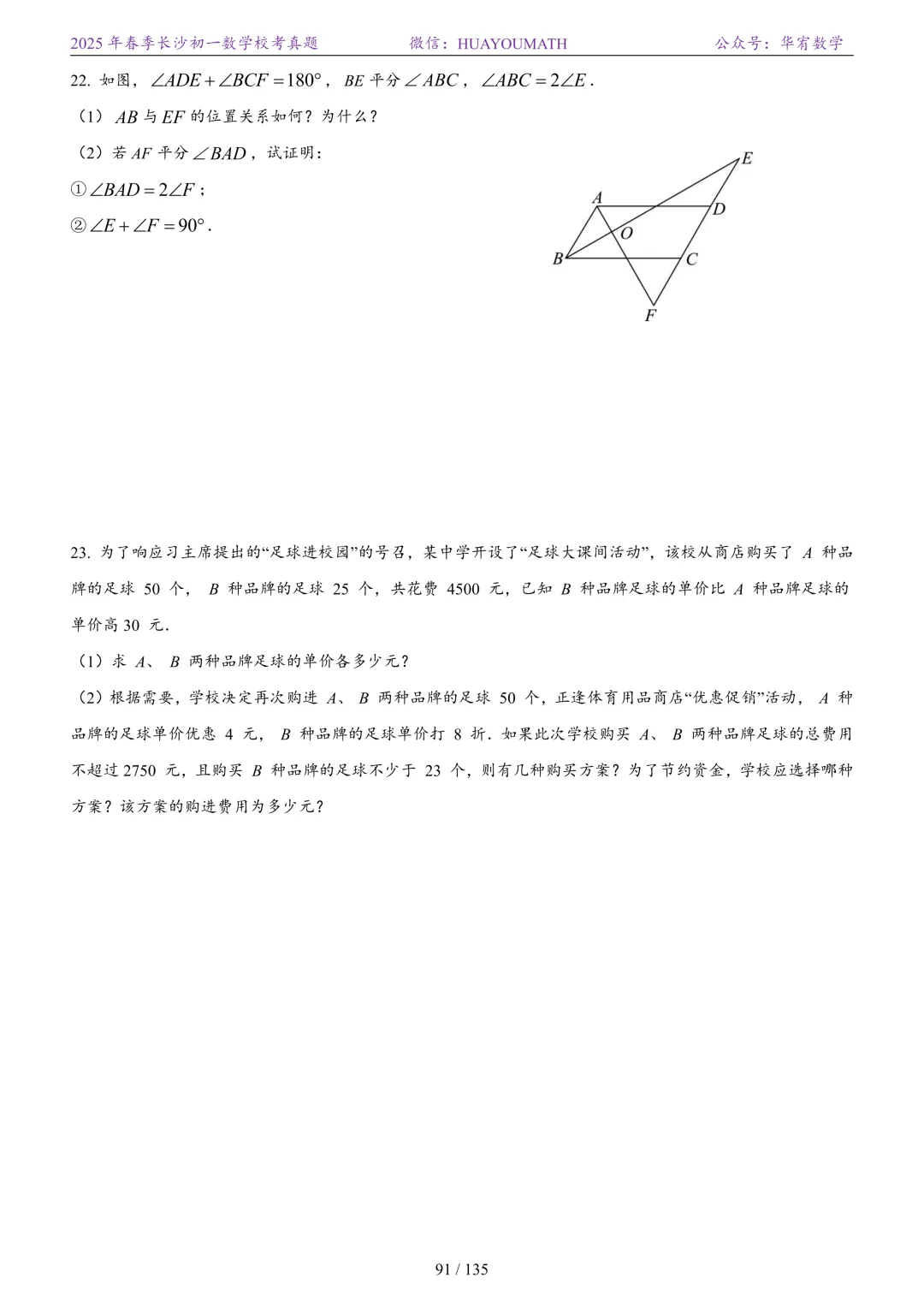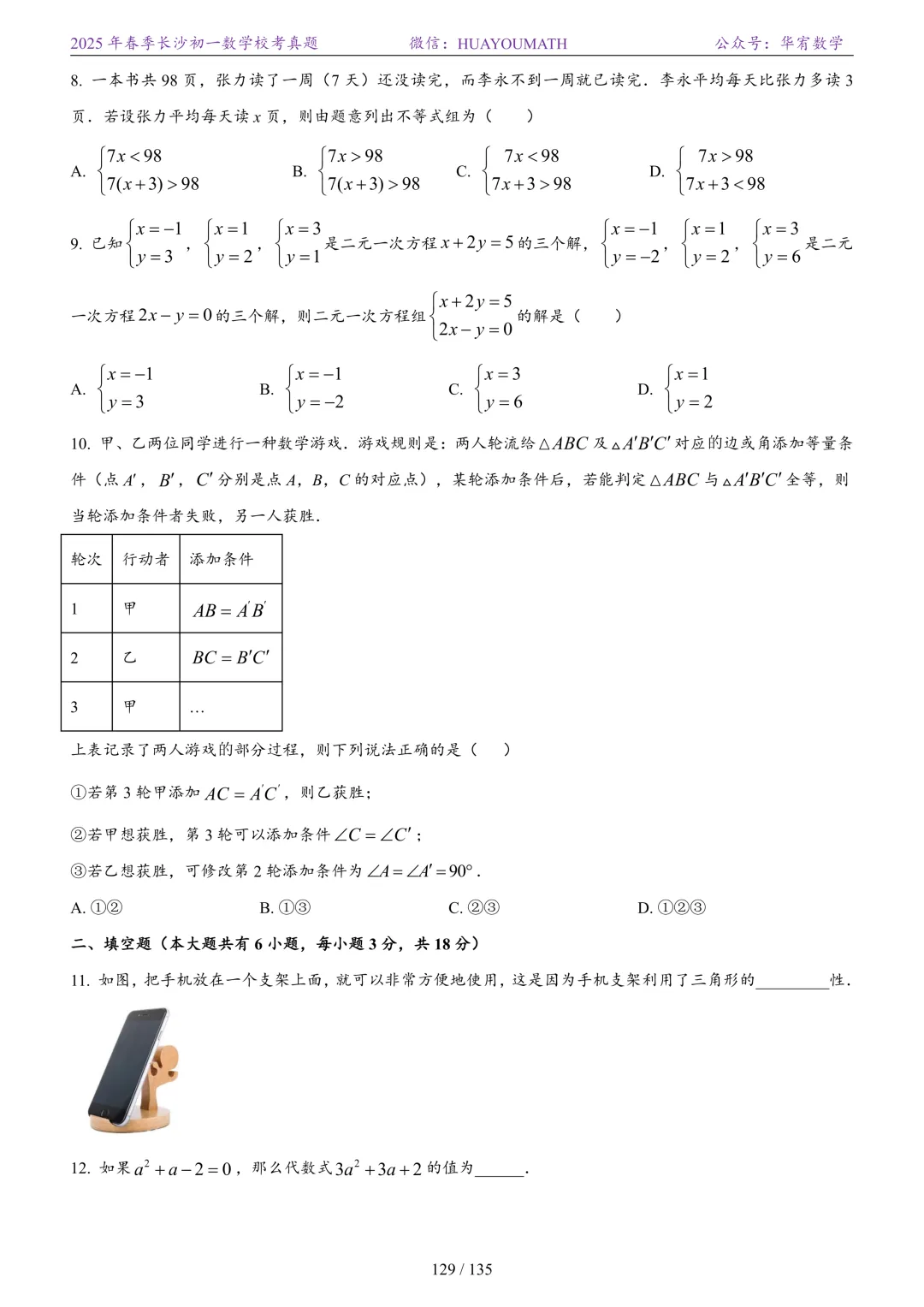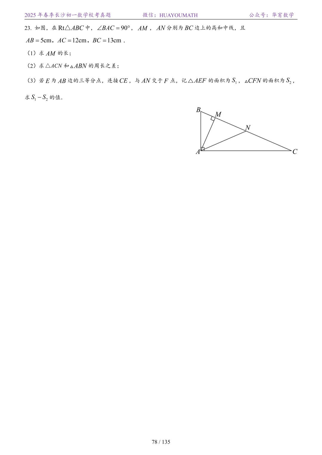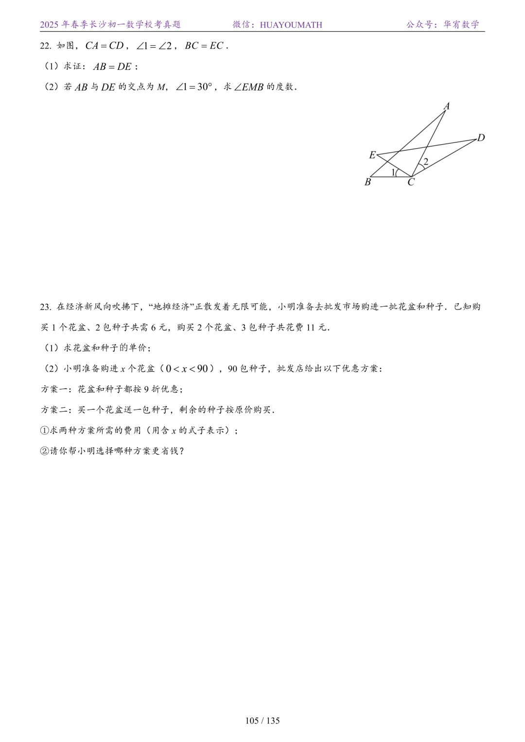 2025年春季长沙初二数学校考真题