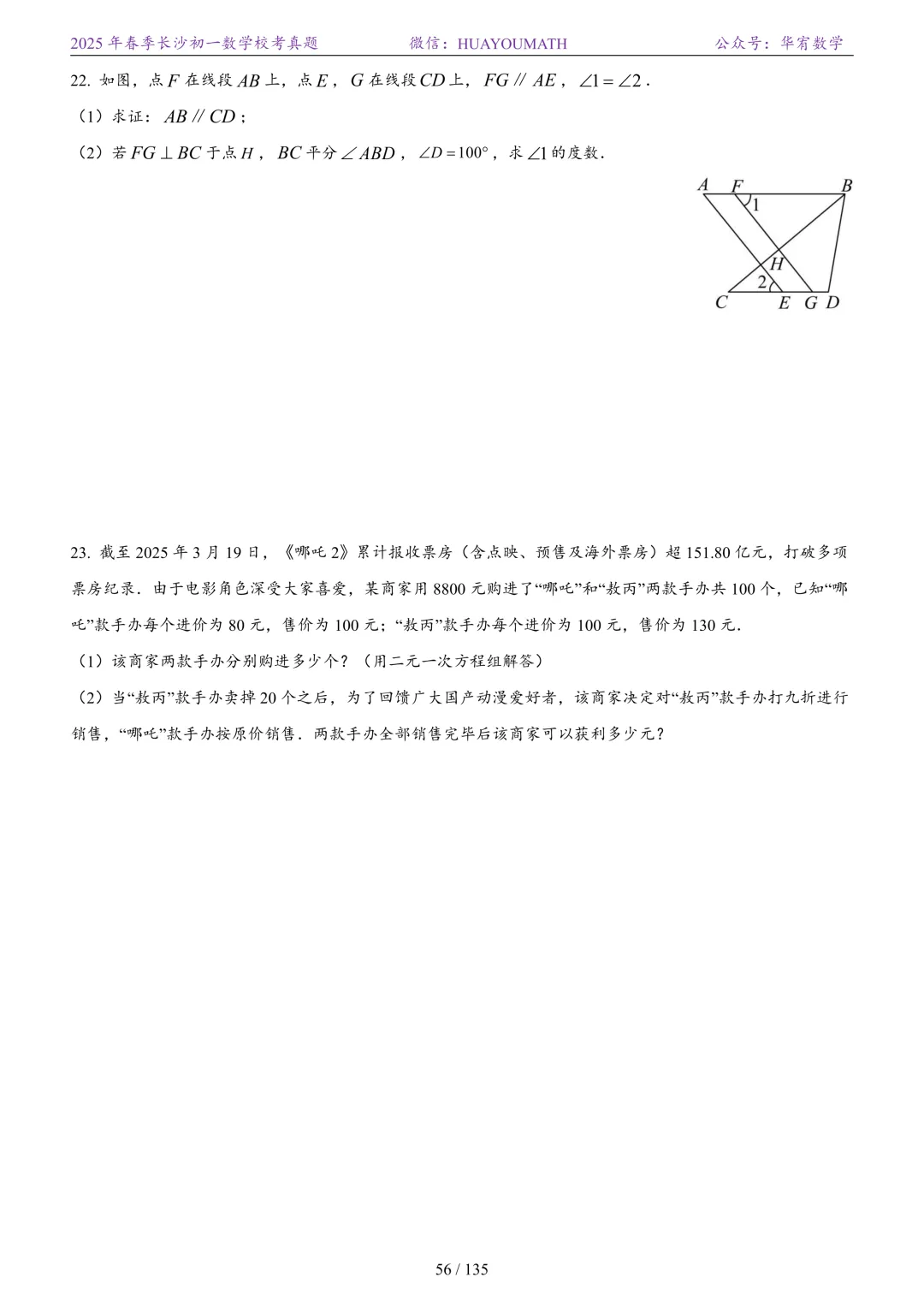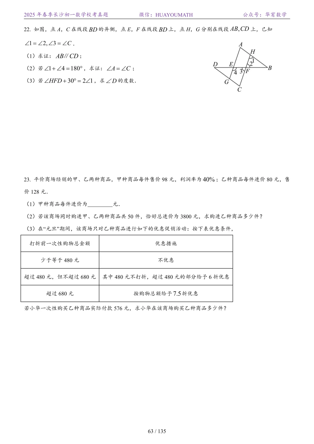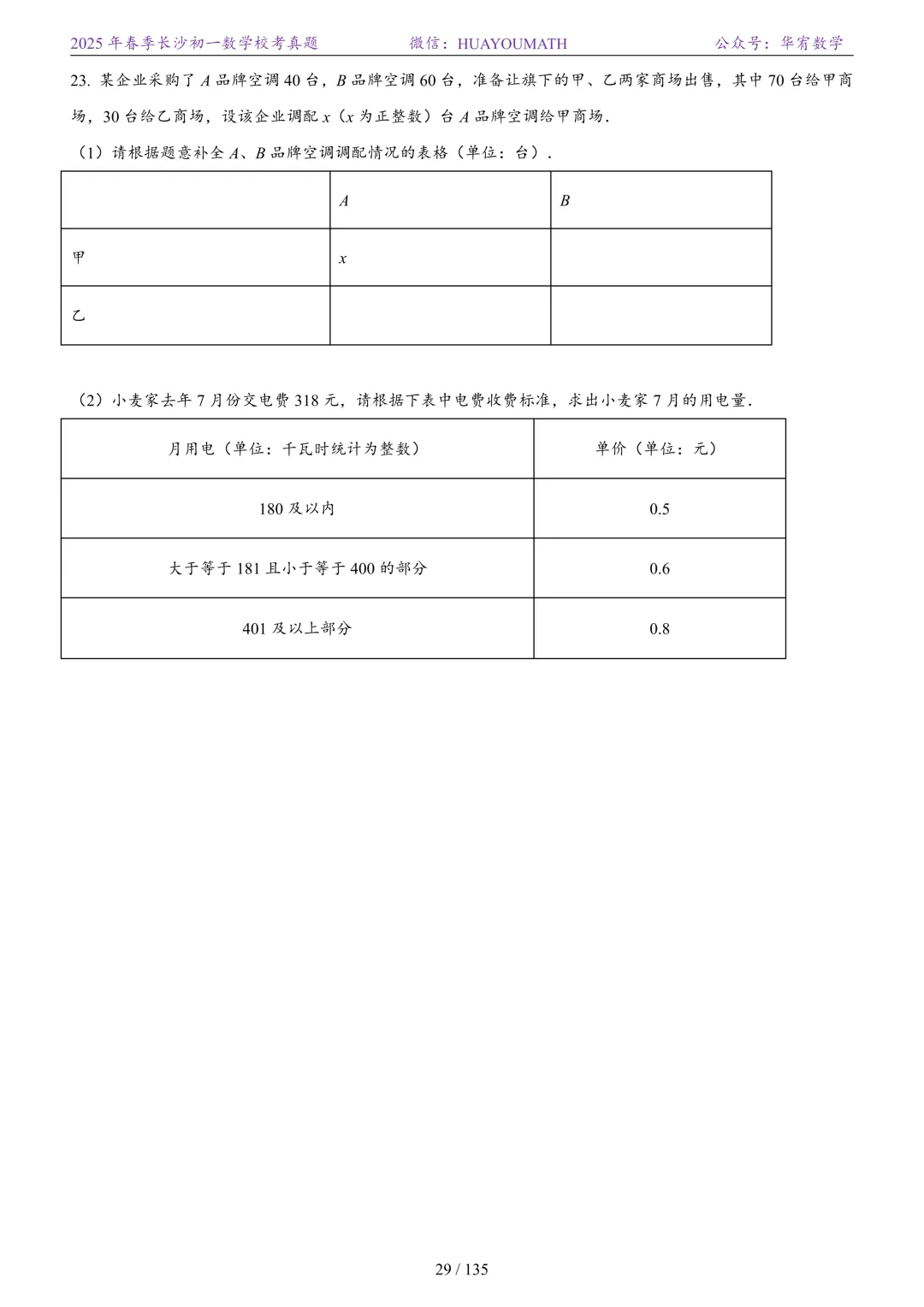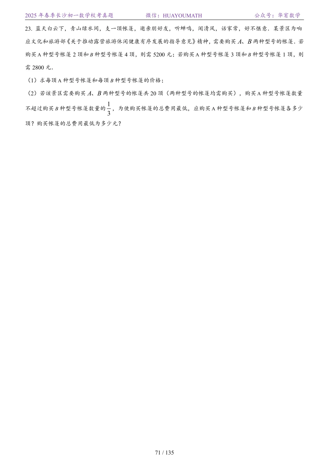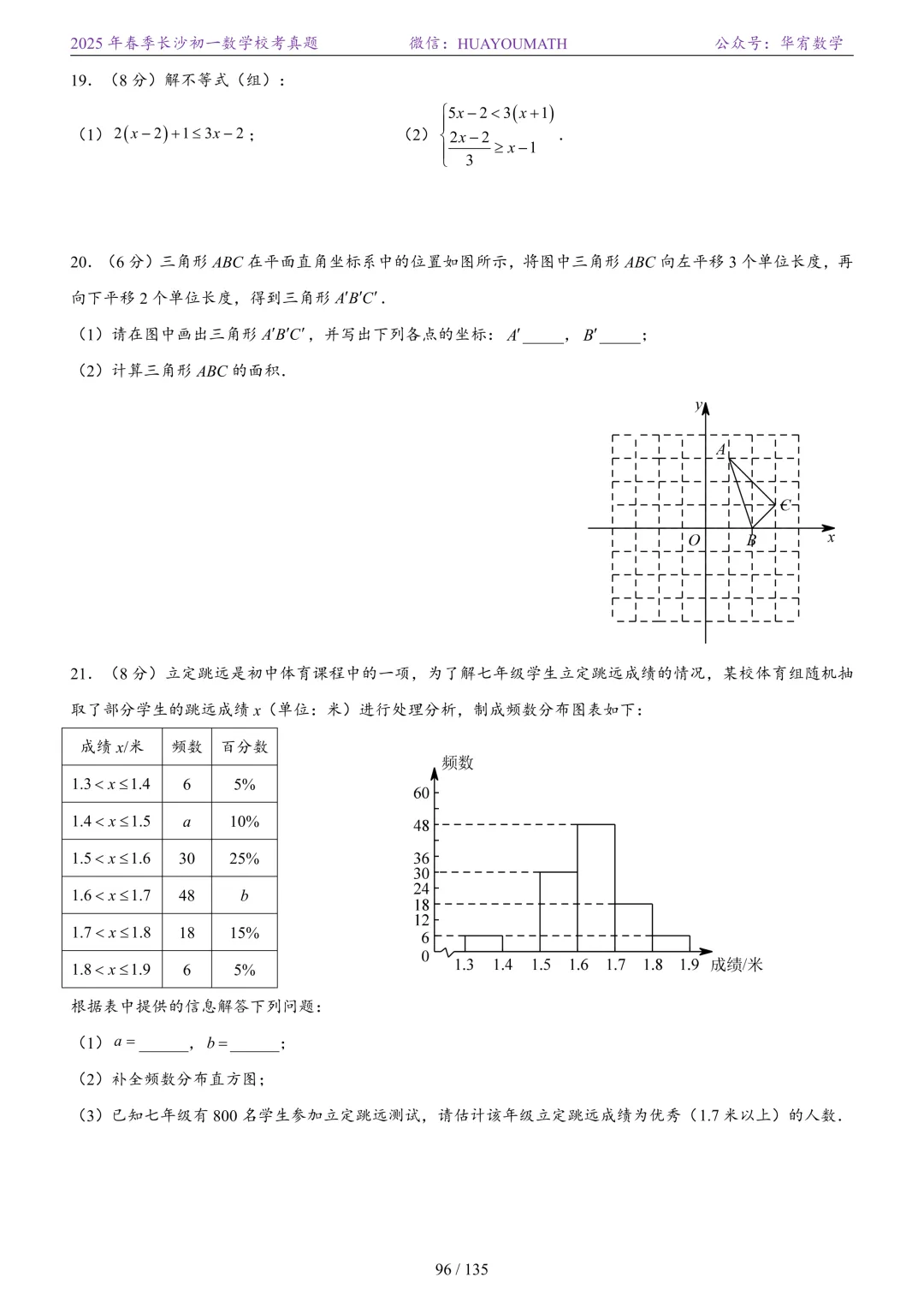 2025年春季长沙初二数学校考真题